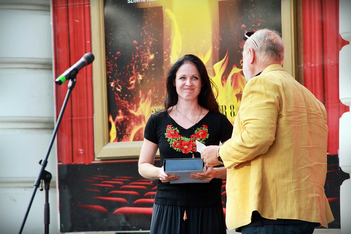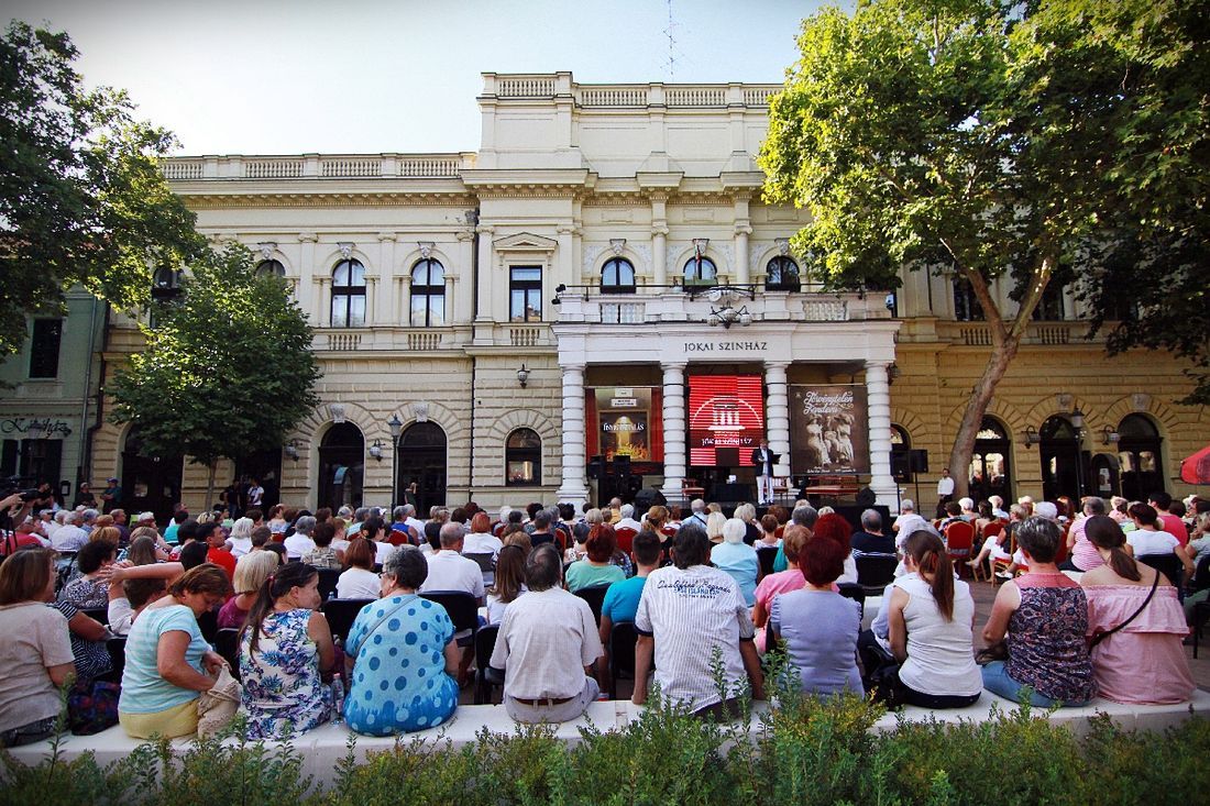 A Tamási darab hangulatát felvillantó maszkos táncrészlettel kezdődött a nyilvános évadnyitó pénteken késő délután, és a két műsorvezető, Czitor Attila és Tege Antal köszöntője után Seregi Zoltán igazgató mondott beszédet. Örömmel tájékoztatta a közönséget arról, hogy a Békéscsabai Jókai Színház a Szarvasi Vízi Színházban bemutatott magas színvonalú produkciókért Szarvas város polgármesteri különdíját kapta meg, köszönetet mondott Babák Mihály polgármesternek és a társulatnak a munkájáért, amellyel a díjat kiérdemelte.