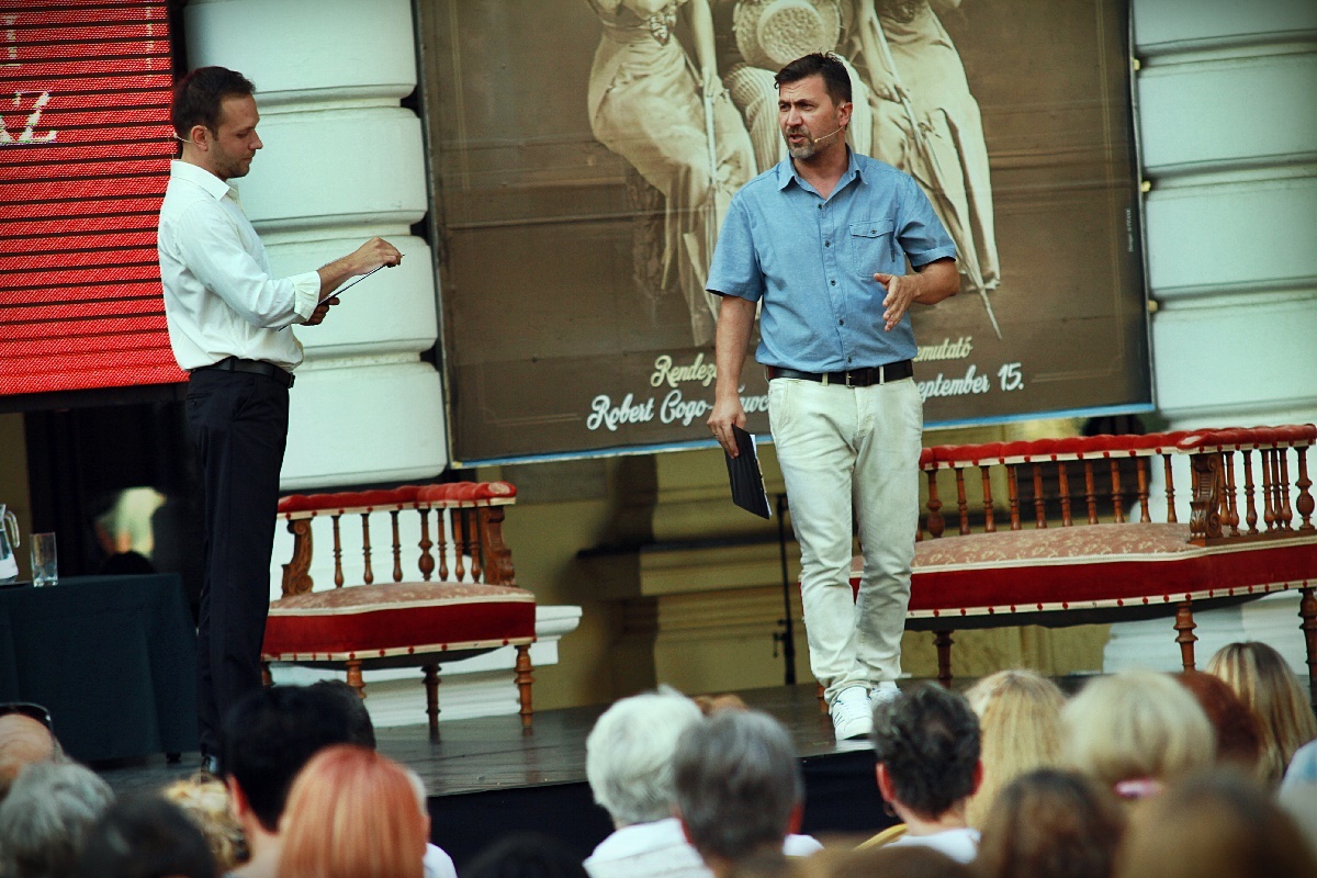 A beszéd után a műsorterv ismertetése következett. Az évad második premierjét, a Törvénytelen randevút Robert Cogo-Fawcett rendezi. Czitor Attila új szerepben mutatkozott be, amikor a vendégművésszel angolul beszélgetett. Mint megtudtuk, Maurice Hennequin – Pierre Veber komédiáját a rendező fordította franciából, vagy harminc évvel ezelőtt Manchesterben és a londoni West Enden volt a premier, hazánkban Debrecenben és a Vígszínházban játszották a darabot. Cogo-Fawcett jelentős különbségként említette, hogy míg Nagy-Britanniában jóformán nincsenek állandó társulatok, darabokra, szerepekre szerződnek a színészek, Magyarországon nagy előny rendezéskor, hogy egy-egy társulatban jól ismerik egymás erényeit és hibáit a művészek.