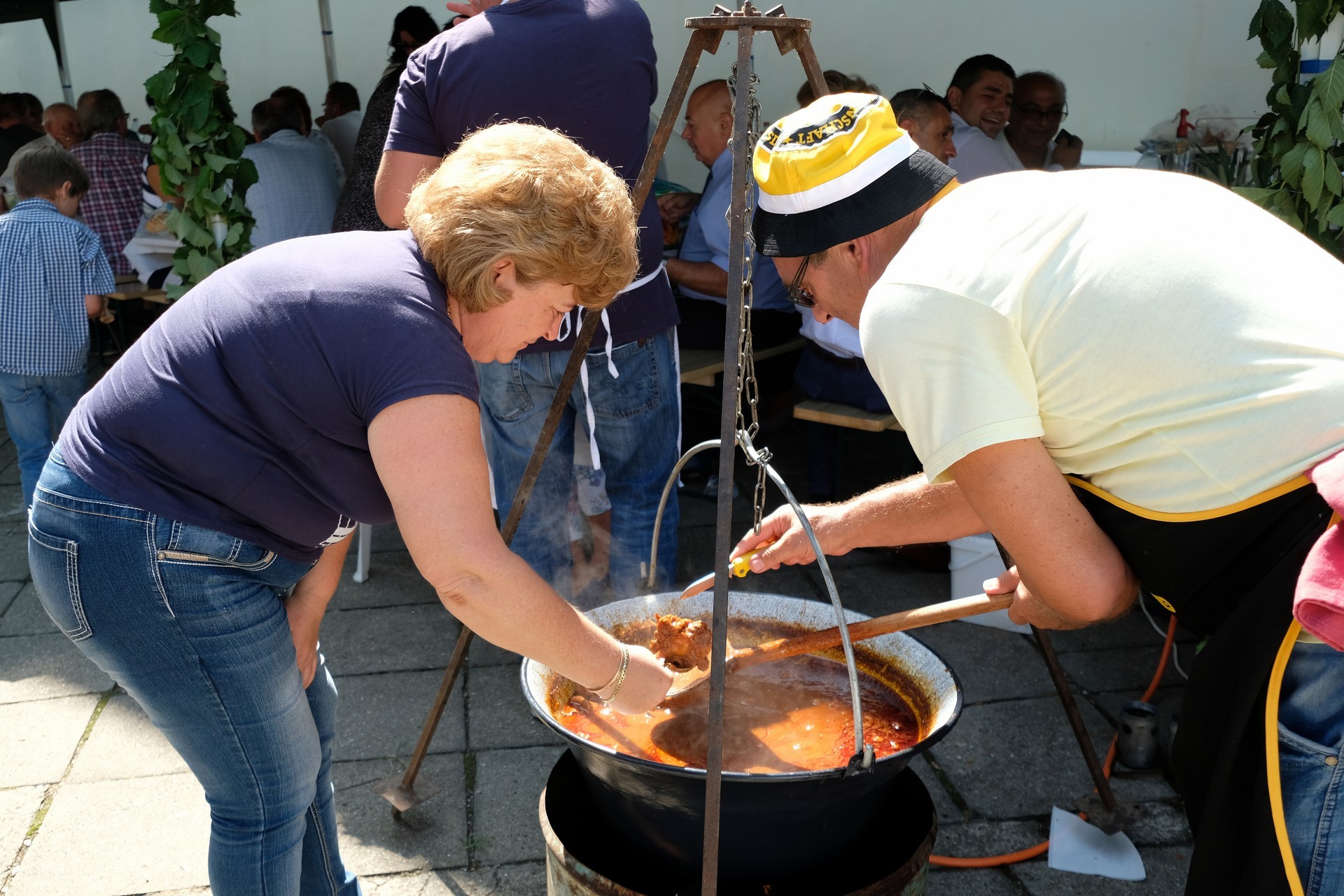 – Minden évben mást készítünk, most is rengeteg ételt hozunk, de itt is sütünk és főzünk, például lapcsánkát tárcsán, mellette olyan csorbát, ami töltött paprikával készül – emelte ki a lelkes társaság egyik tagja.