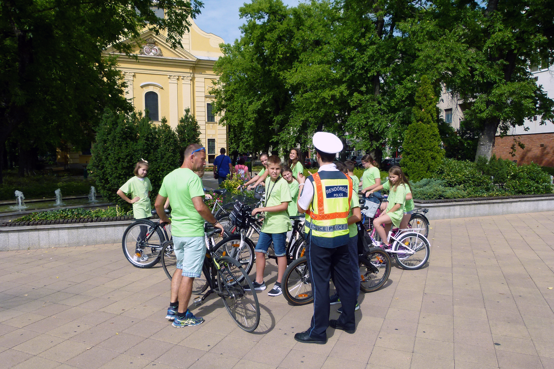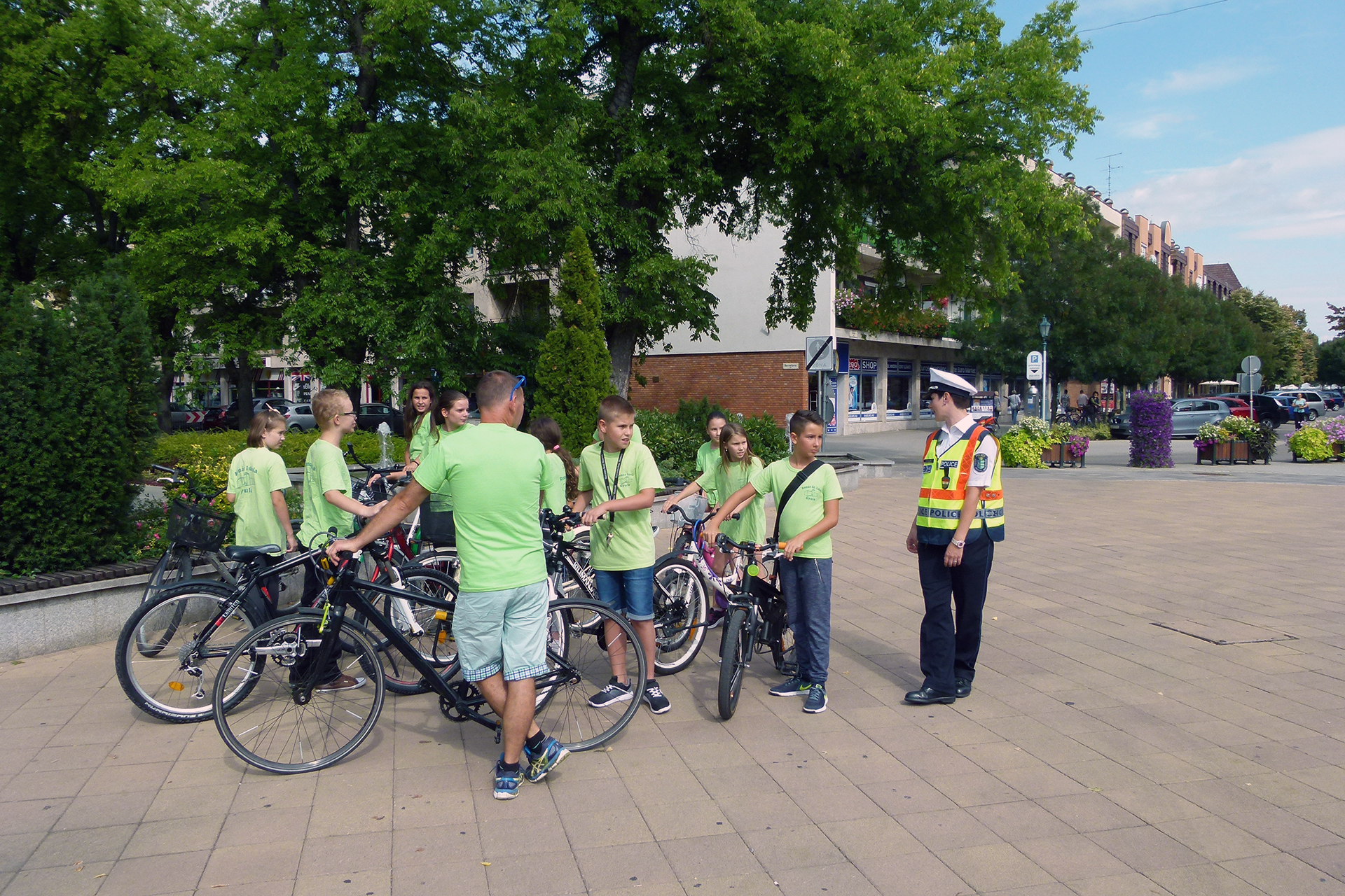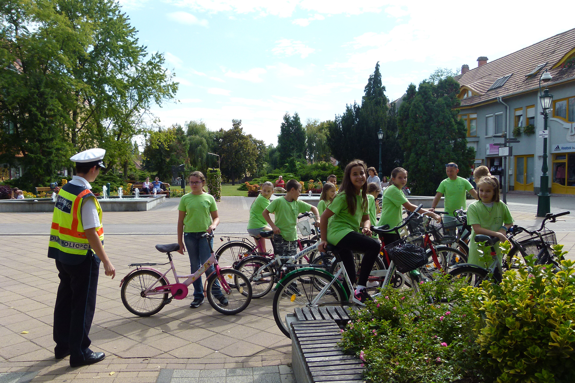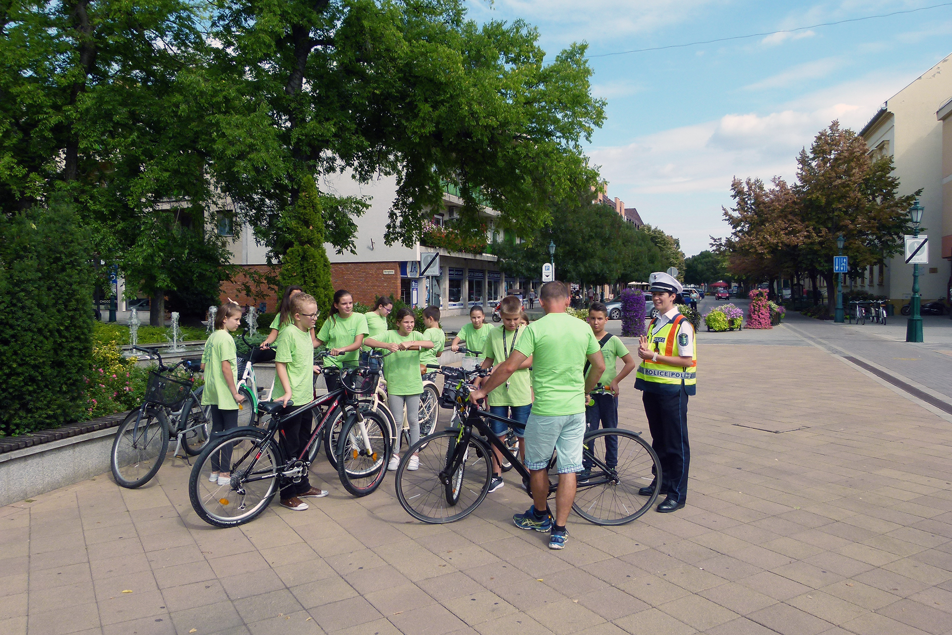 A tanulók ezek után a címzetes rendőr törzsőrmesterrel közösen kerékpároztak vissza iskolájukba.
