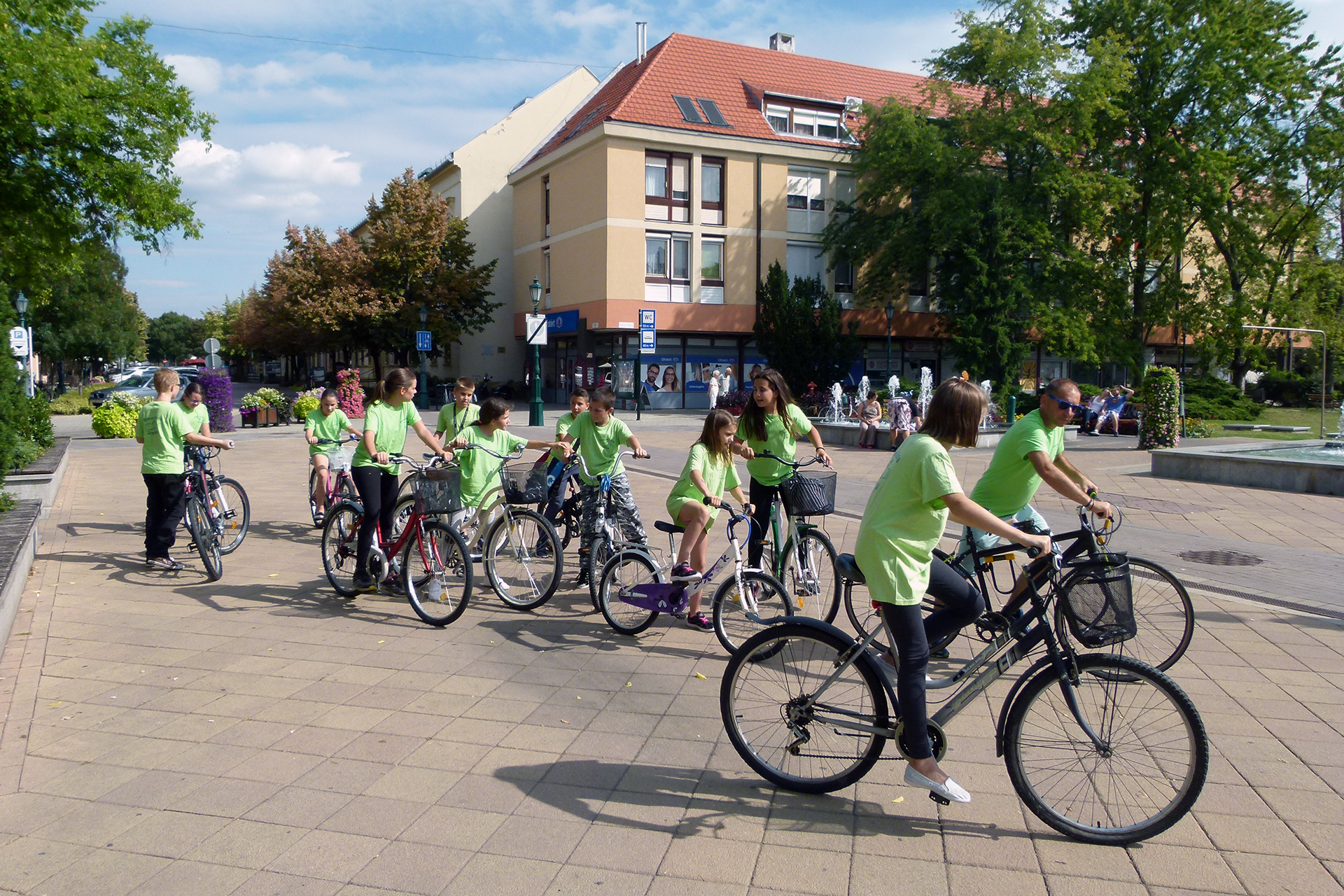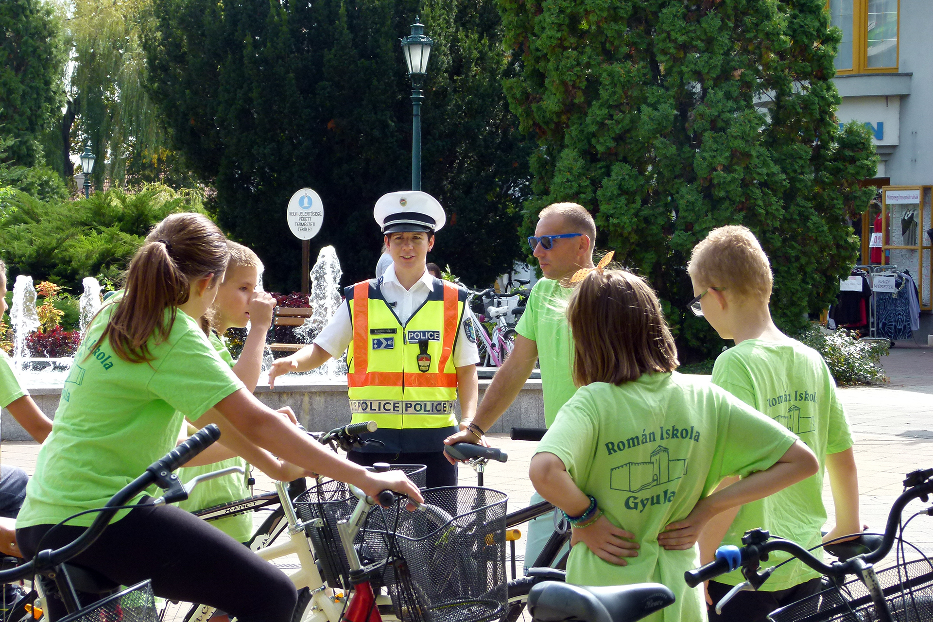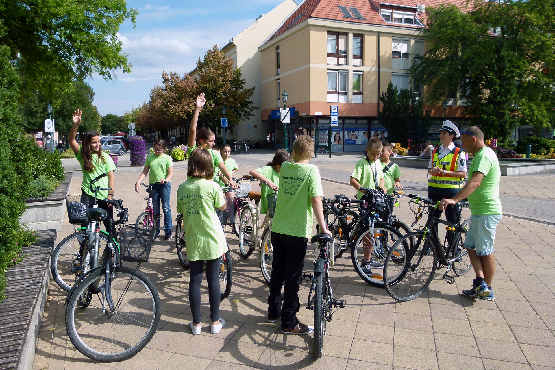 Ez alkalommal a Nicolae Balcescu Román Általános Iskola nebulói kerekeztek el Fenesiné Markovics Nórához, aki a Harruckern téren tartott ellenőrzést.