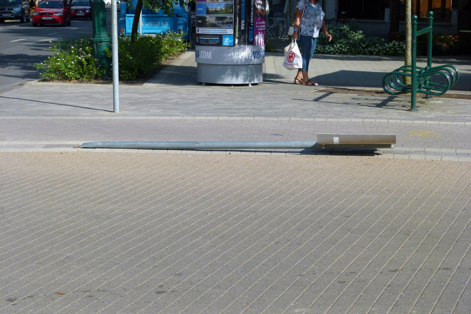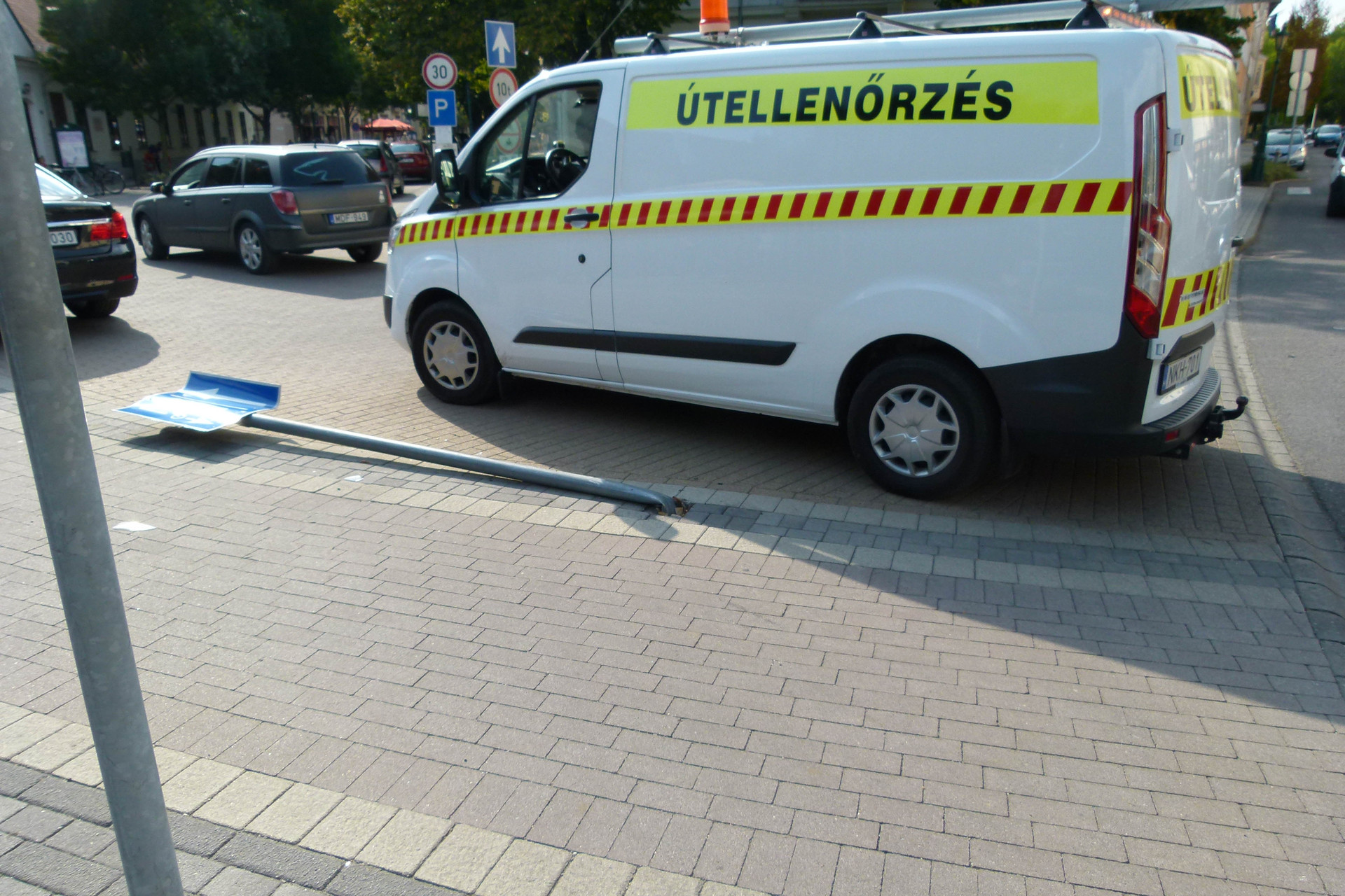 Jelzőtáblát döntött ki egy autós szeptember 6-án a Városház utca elején.