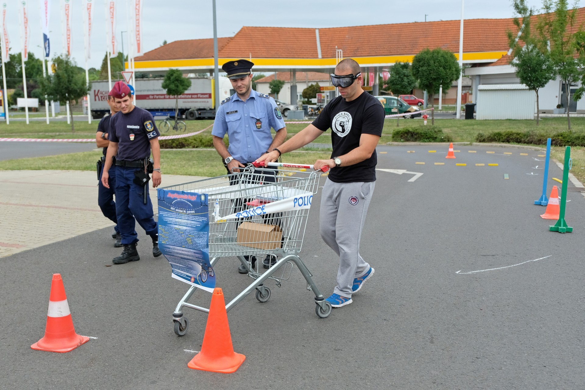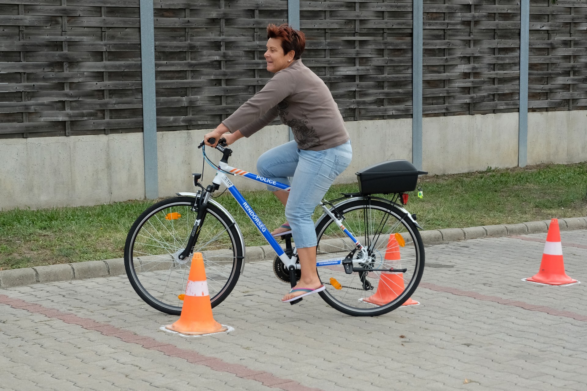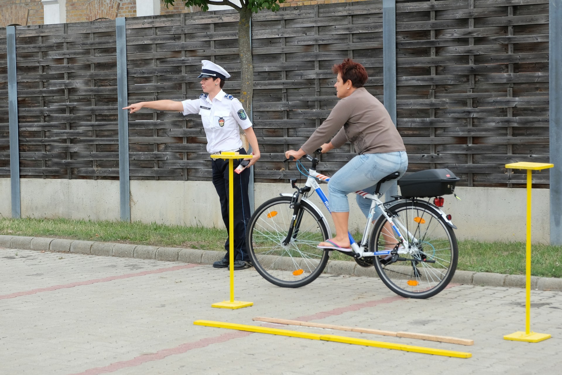 A gyulai egyenruhások két akadálypályát is felépítettek az alkalomra. Az első terepen a kétkerekűek próbálhatták ki ügyességüket, ahol fordulókkal, kanyarodásokkal megspékelt útvonal várta őket.
