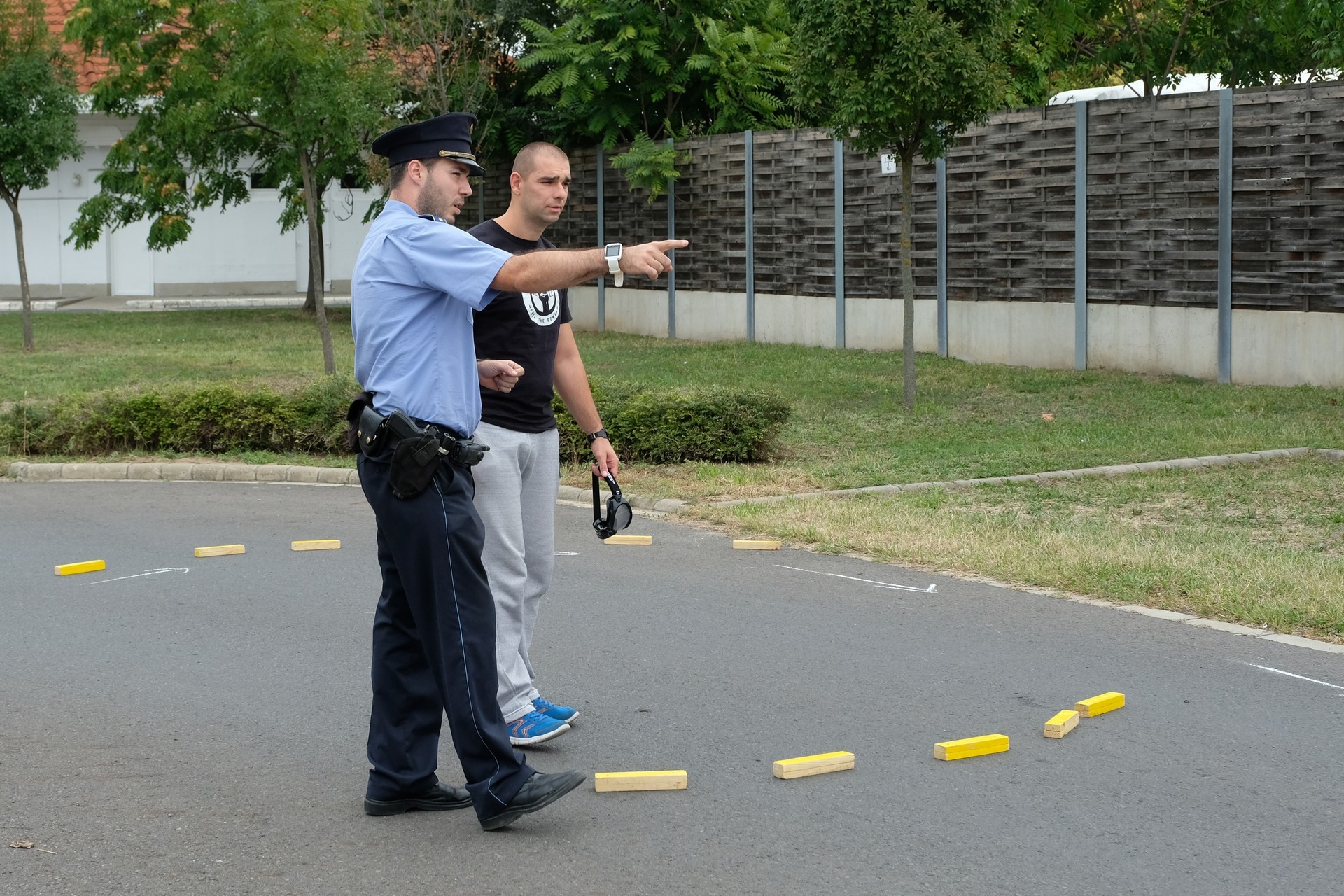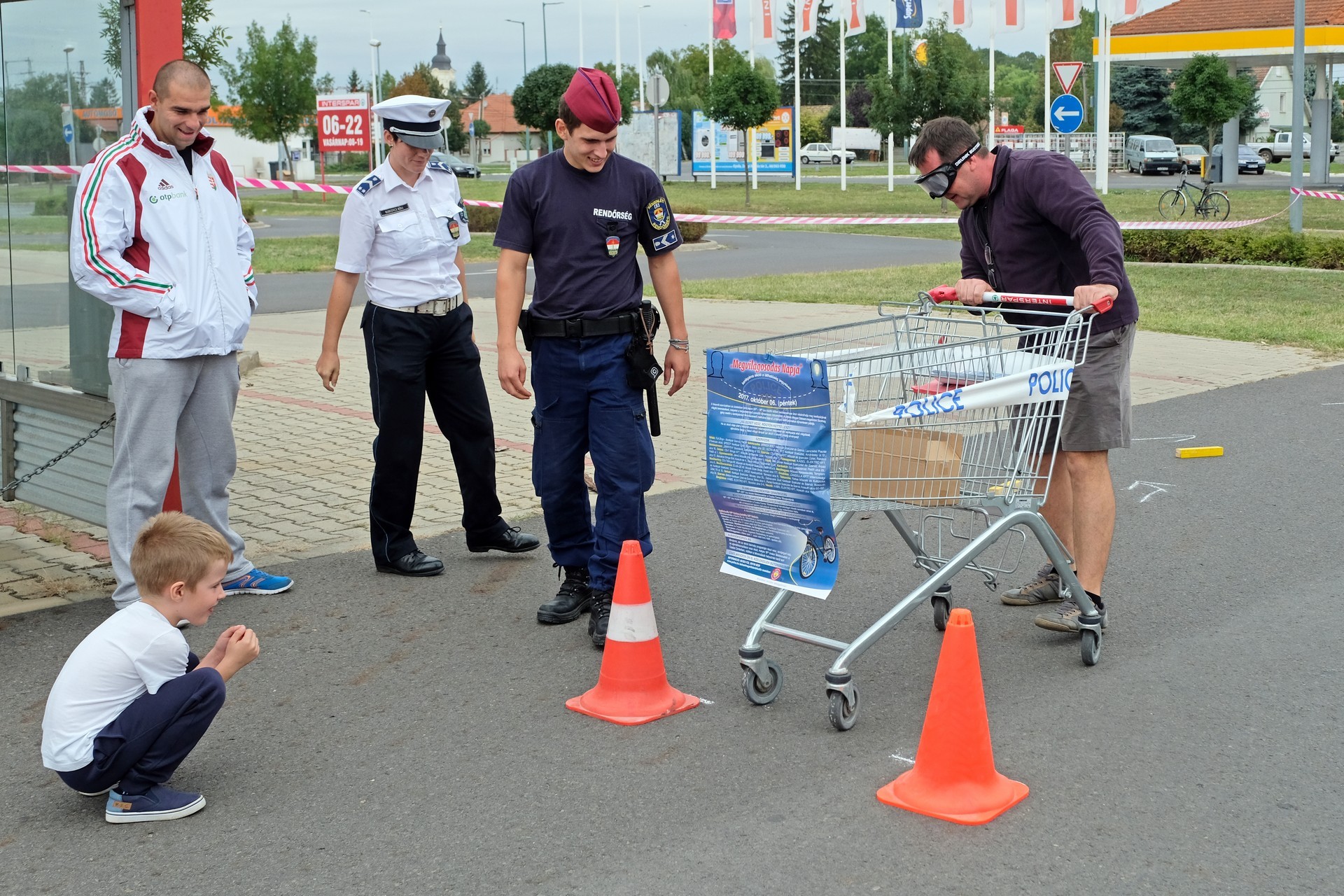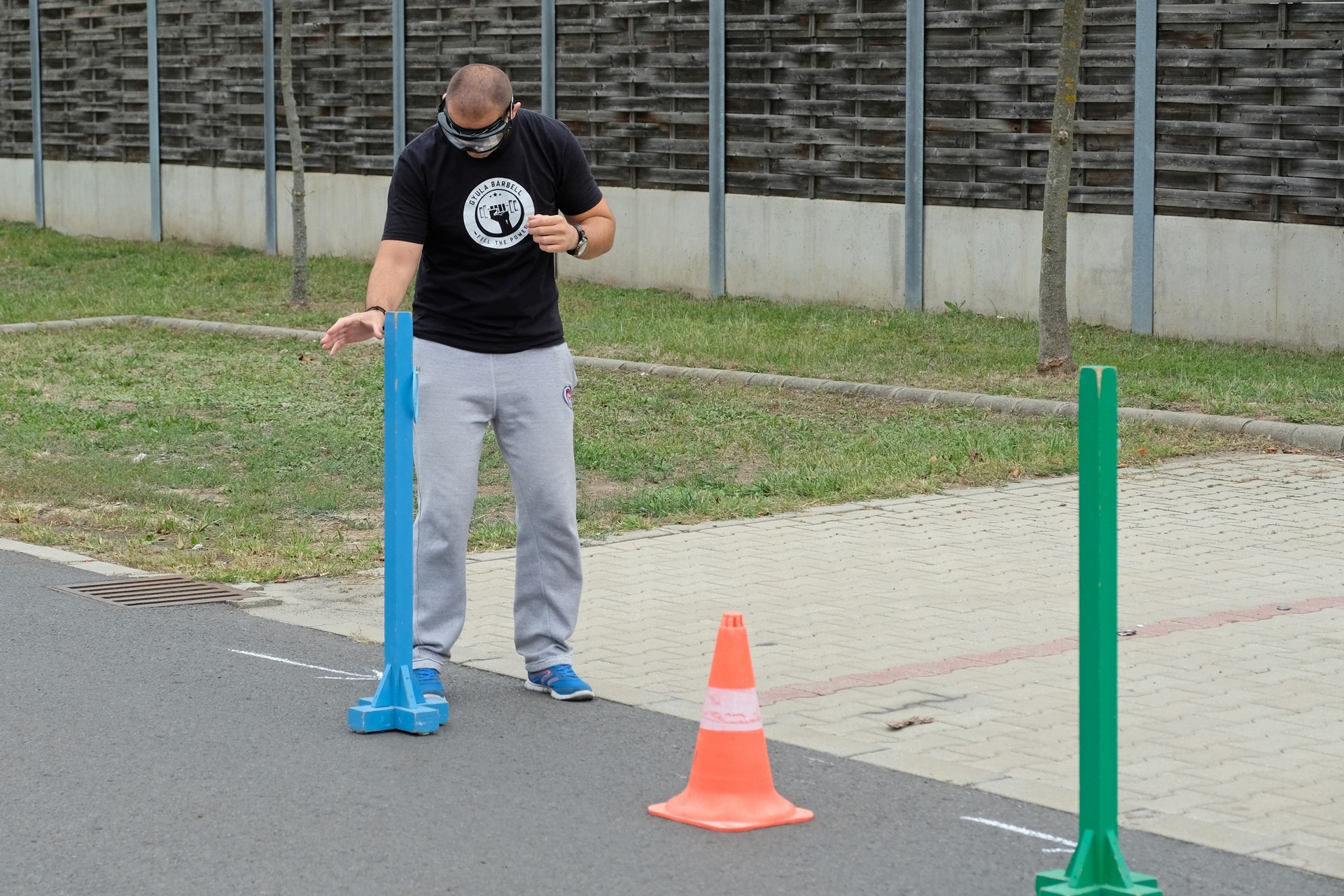A gyulai egyenruhások két akadálypályát is felépítettek az alkalomra. Az első terepen a kétkerekűek próbálhatták ki ügyességüket, ahol fordulókkal, kanyarodásokkal megspékelt útvonal várta őket.