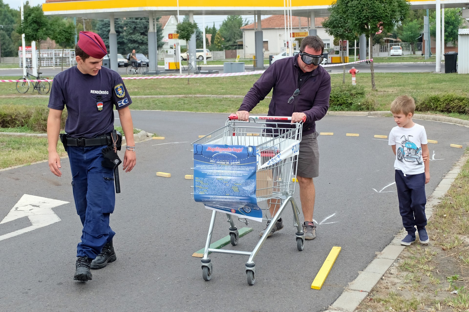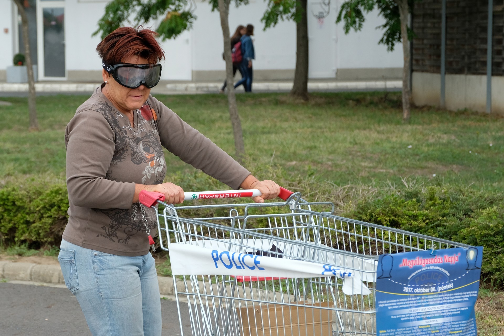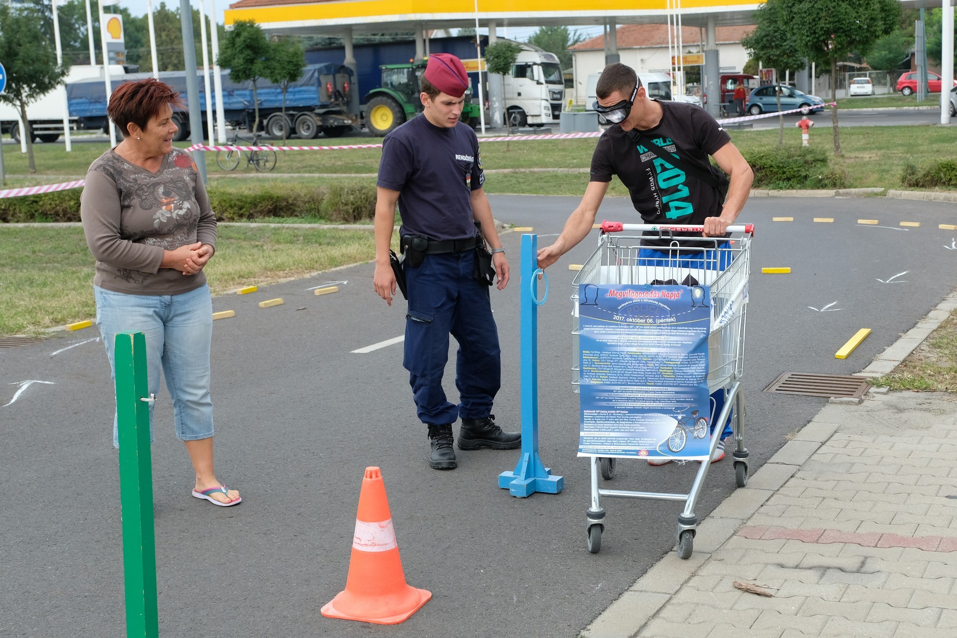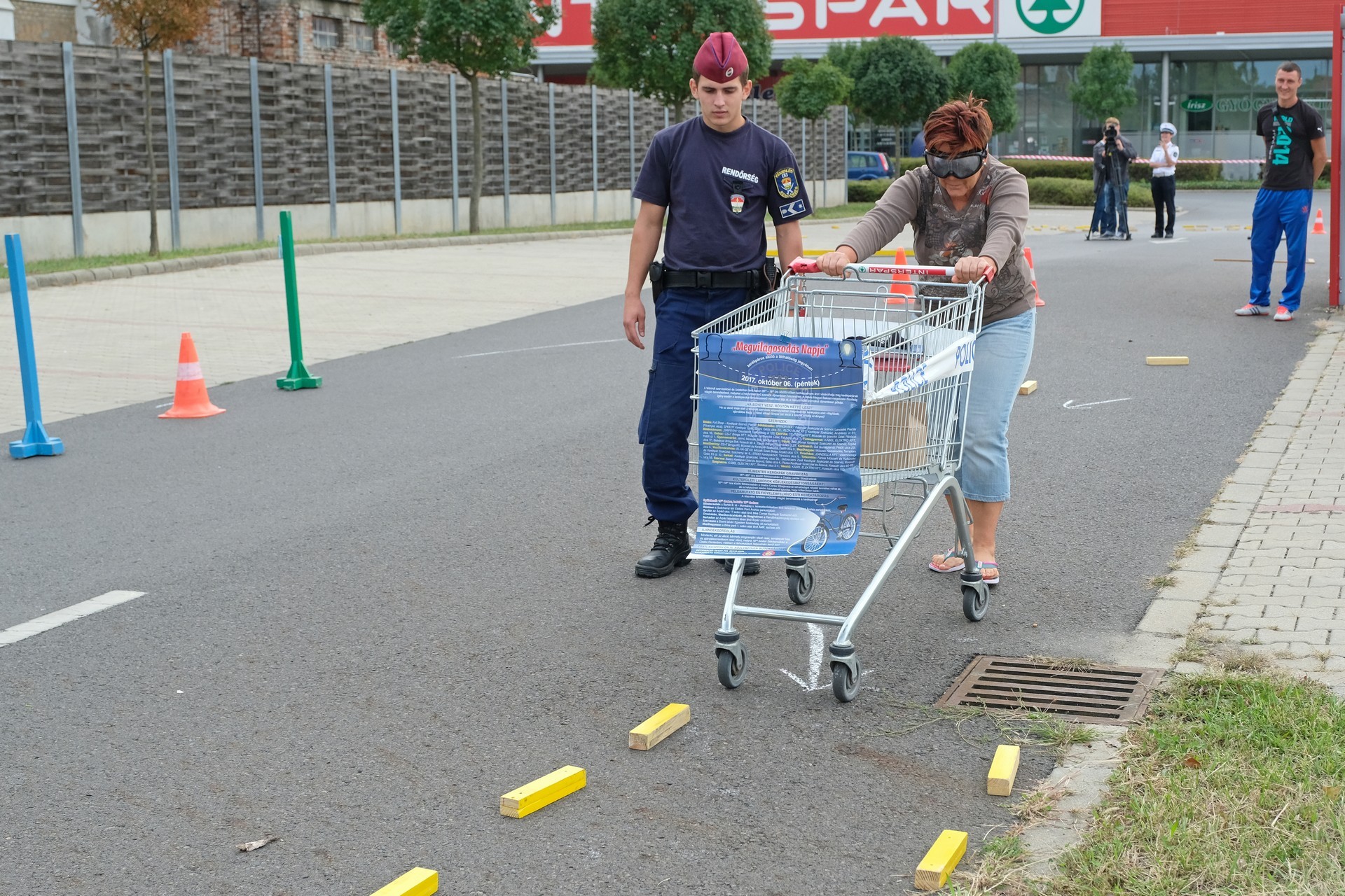 A második helyszínen bárki kipróbálta a részeg szemüveget, ennek viselése közben kellett egy bevásárlókocsival „közlekedni”. A speciális szemüveg egy erős ittassági állapotot szimulált, az eszközzel – tapasztalatból mondjuk – igencsak nehéz bármilyen manőver végrehajtása.