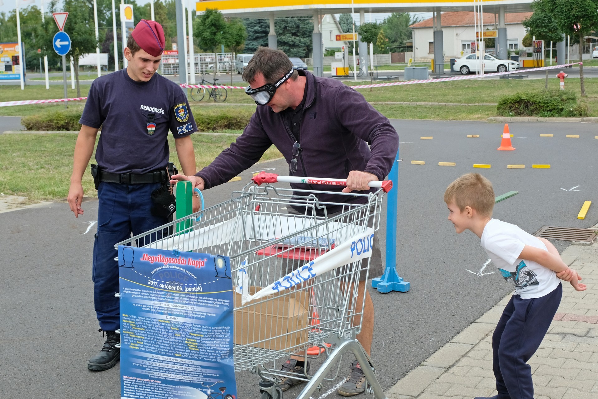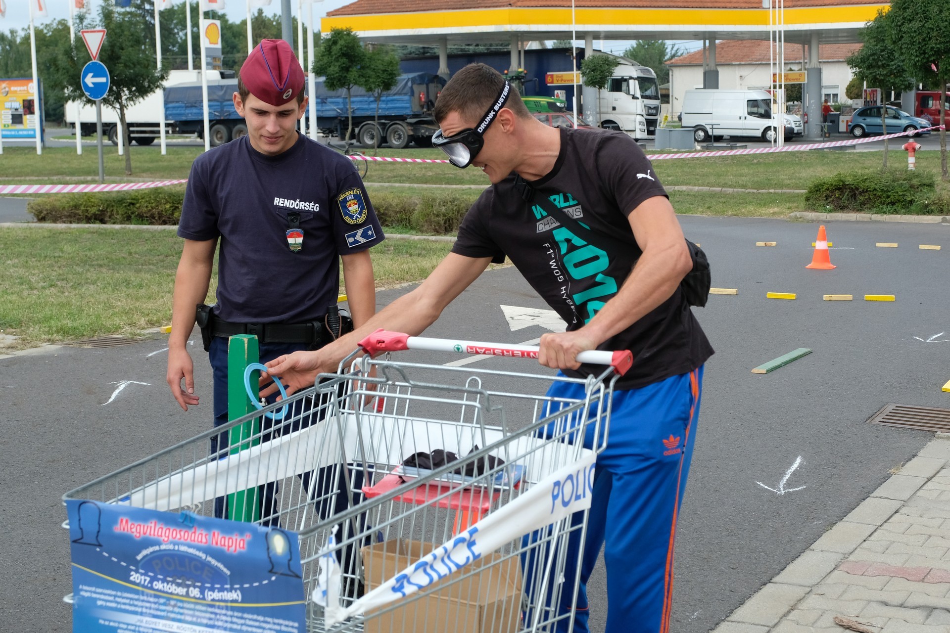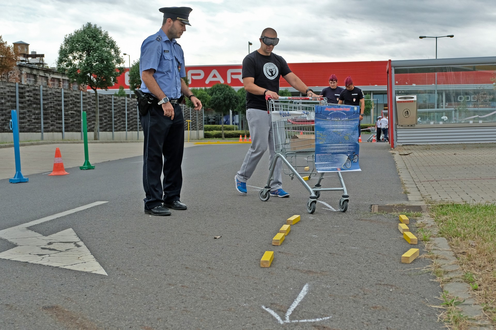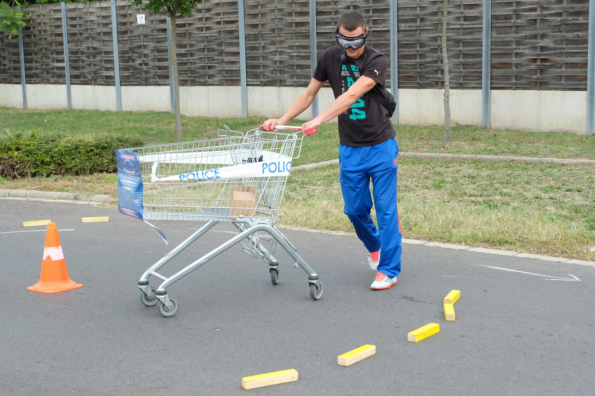 A második helyszínen bárki kipróbálta a részeg szemüveget, ennek viselése közben kellett egy bevásárlókocsival „közlekedni”. A speciális szemüveg egy erős ittassági állapotot szimulált, az eszközzel – tapasztalatból mondjuk – igencsak nehéz bármilyen manőver végrehajtása.