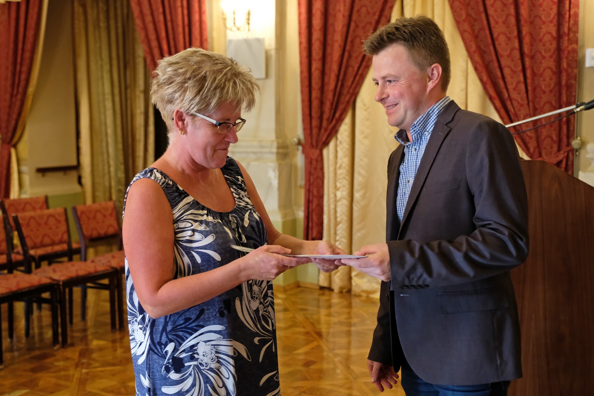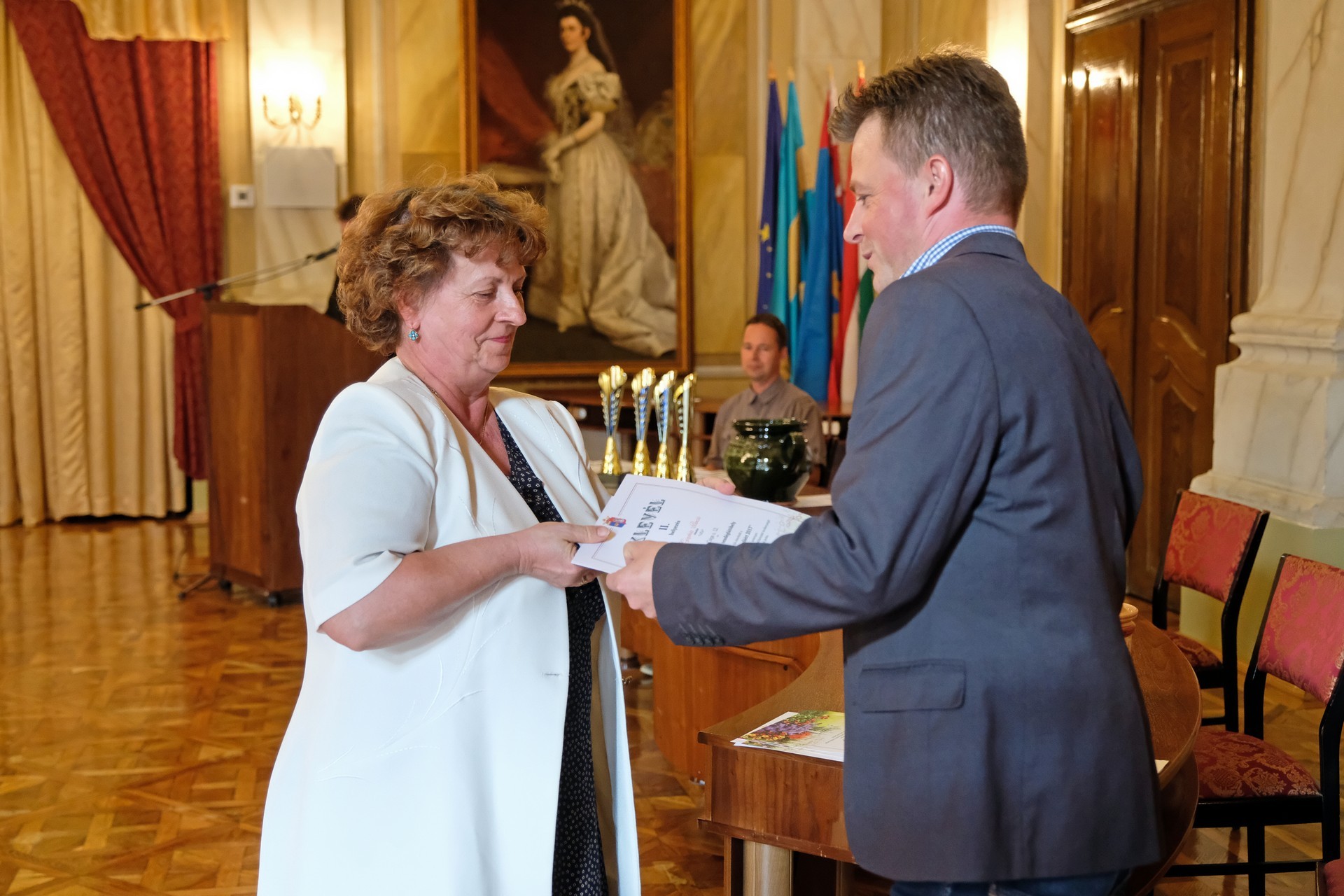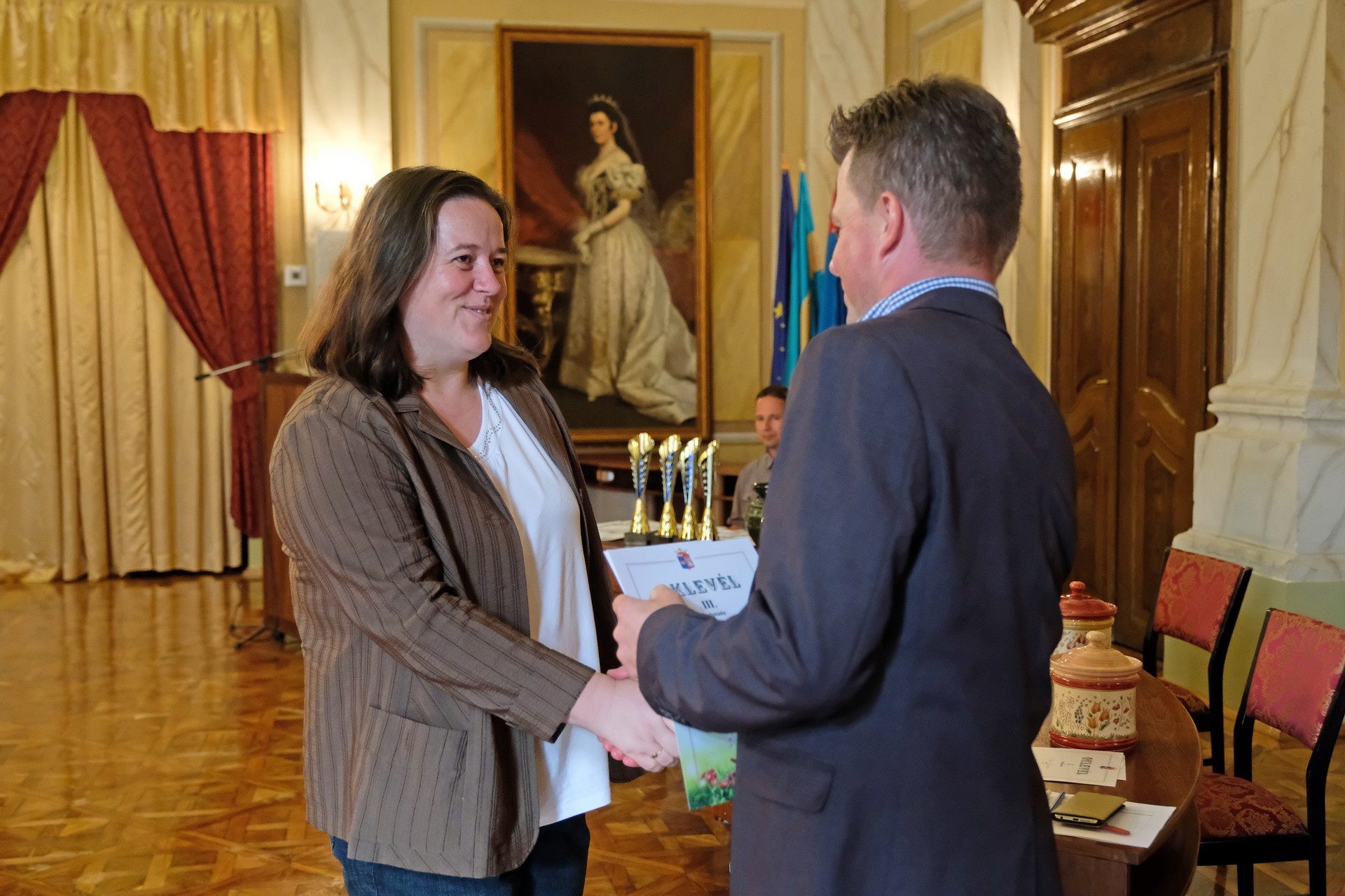 A virágos intézmény kategória első helyezettje a máriafalvai óvoda lett. A díjat Makráné Gombkötő Zita tagintézmény-vezető vette át