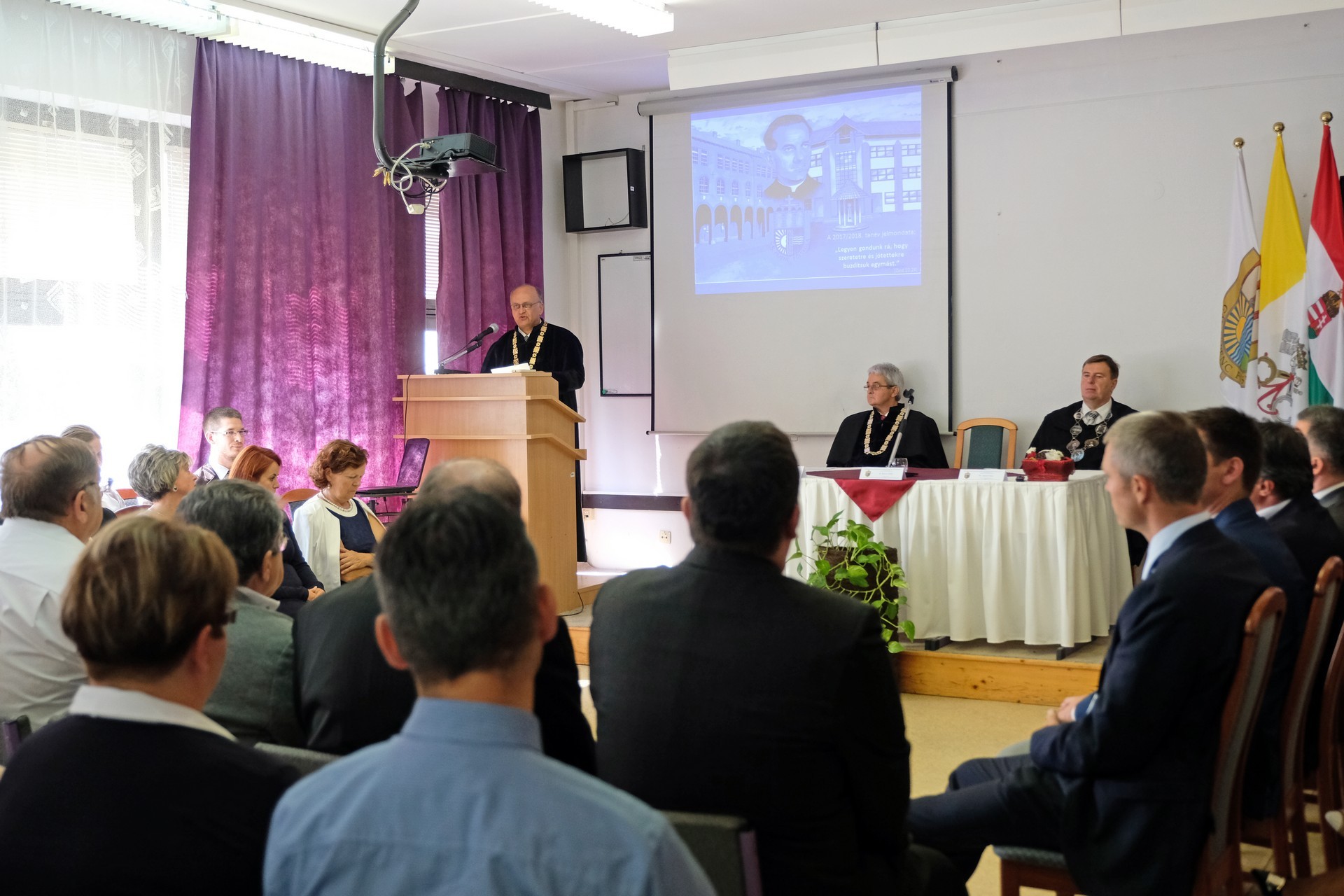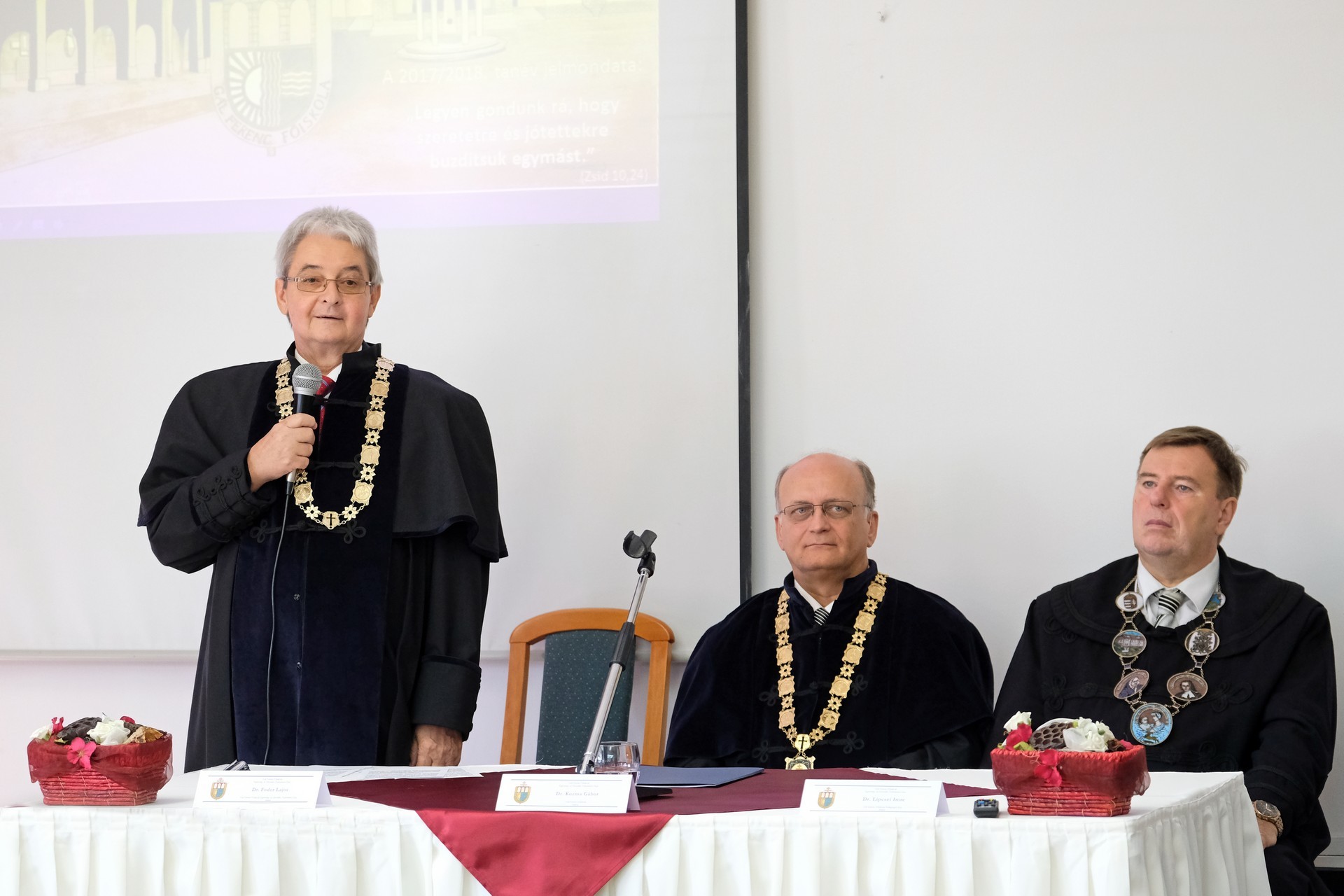 A megnyitón elhangzott, 1993. szeptember elsején fontos esemény színhelye volt a gyulai főiskola épülete: ekkor tartották a gyulai felsőoktatás diplomás ápoló szakának első tanévnyitóját. Ez közel negyed százada történt. Dr. Fodor Lajos professzor, intézetigazgató egyetemi tanár ezzel, és az idei eseménnyel összefüggésben kijelentette, remélik, hogy ebben a formában utoljára rendeznek 2017-ben évnyitót. Bíznak abban, hogy az Intézmény intézetük infrastrukturálisan megújul, bővül, amiként abban is, hogy az építkezések hamarosan megkezdődnek. A tervekből egy szép, modern kutatási centrum képe bontakozik ki, fogalmazott az Egészség- és Szociális Tudományi Kar dékánja.