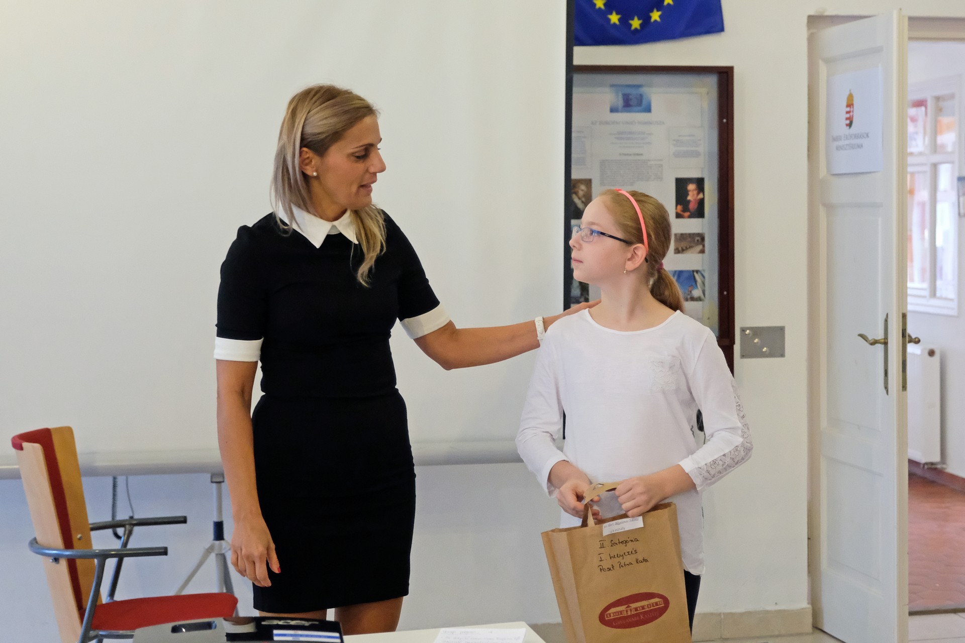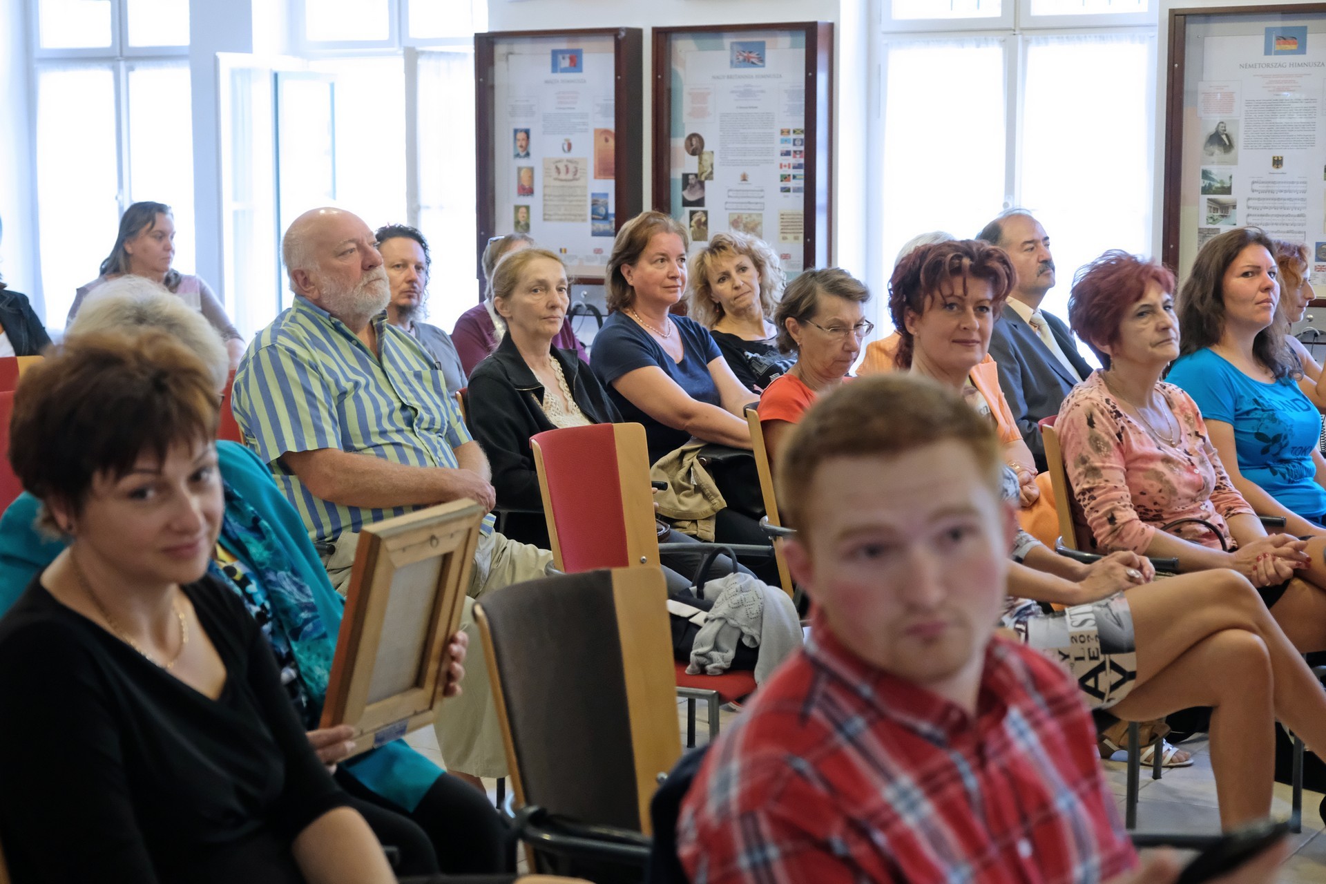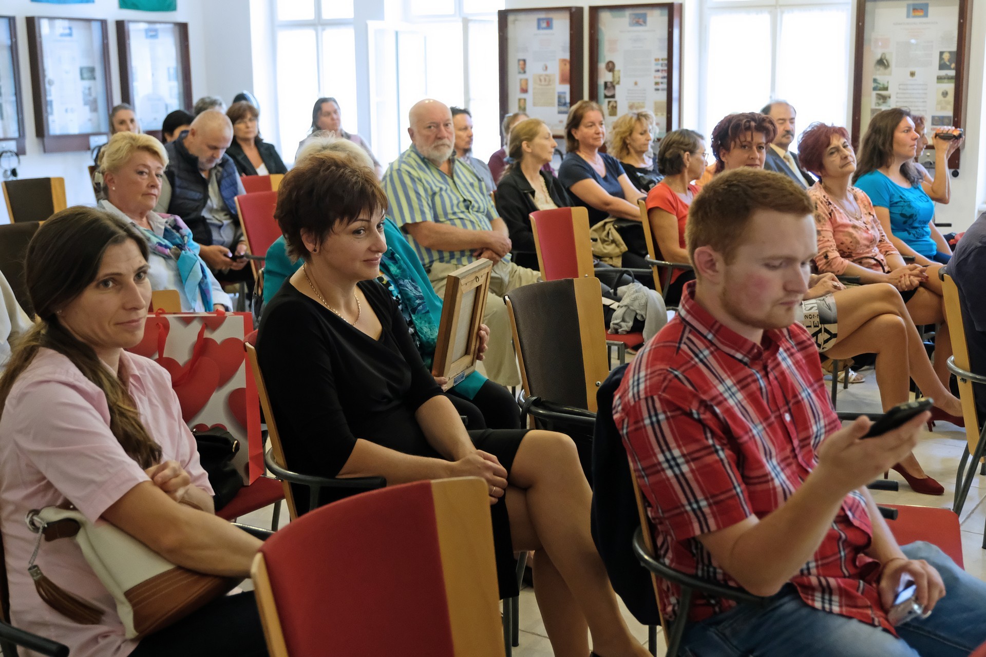 A tárlatnyitó után a szomszédos terem is megtelt: itt az évfordulóval összefüggésben kiírt rajzverseny eredményeit hirdették ki. Oroszné Árgyelán Ilona aláhúzta, nagyon sok gyermek küldte be munkáit felhívásukra, az ő igyekezetüket díjazták ezen a napon.