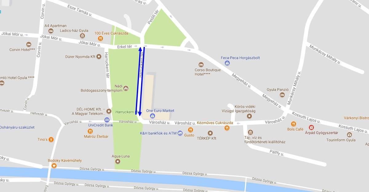 Az egyirányú szakaszra ettől kezdve mindkét irányból be lehet majd hajtani, így a Petőfi tér felől is megközelíthetővé válnak a Harruckern téri üzletek előtti parkolók, nem kell tehát kerülőként a Városház utcán keresztül haladni a gépjárművezetőknek – írták.