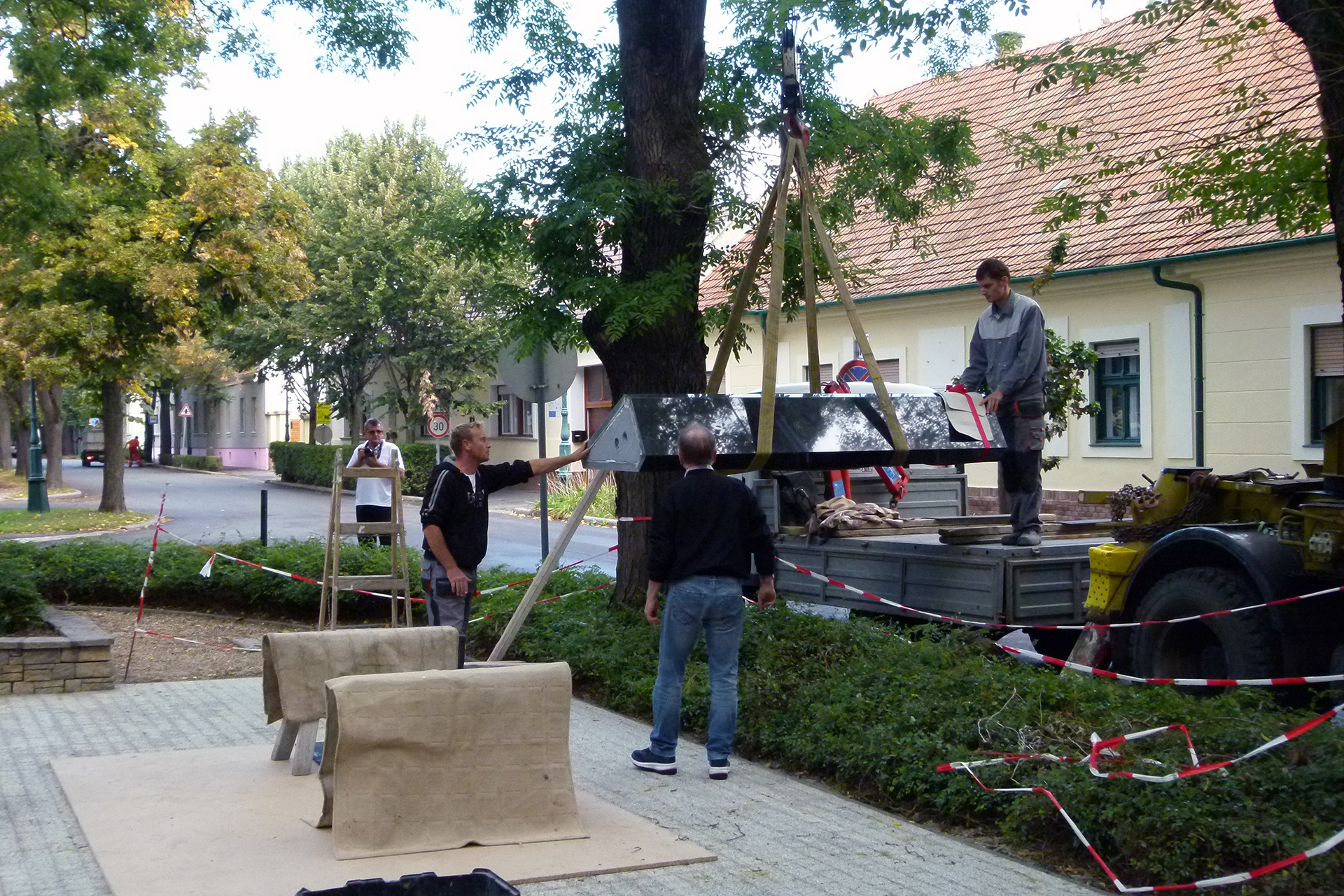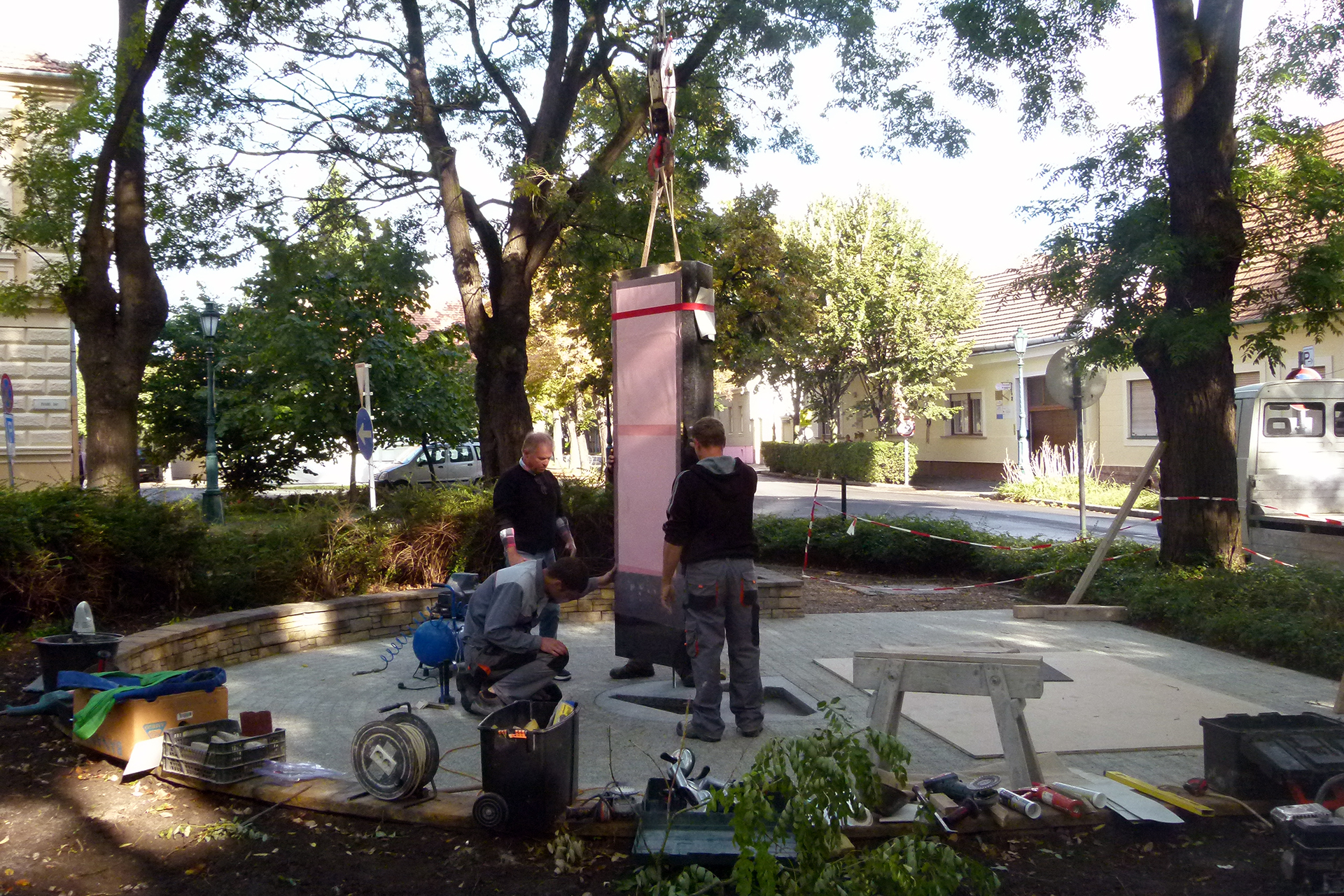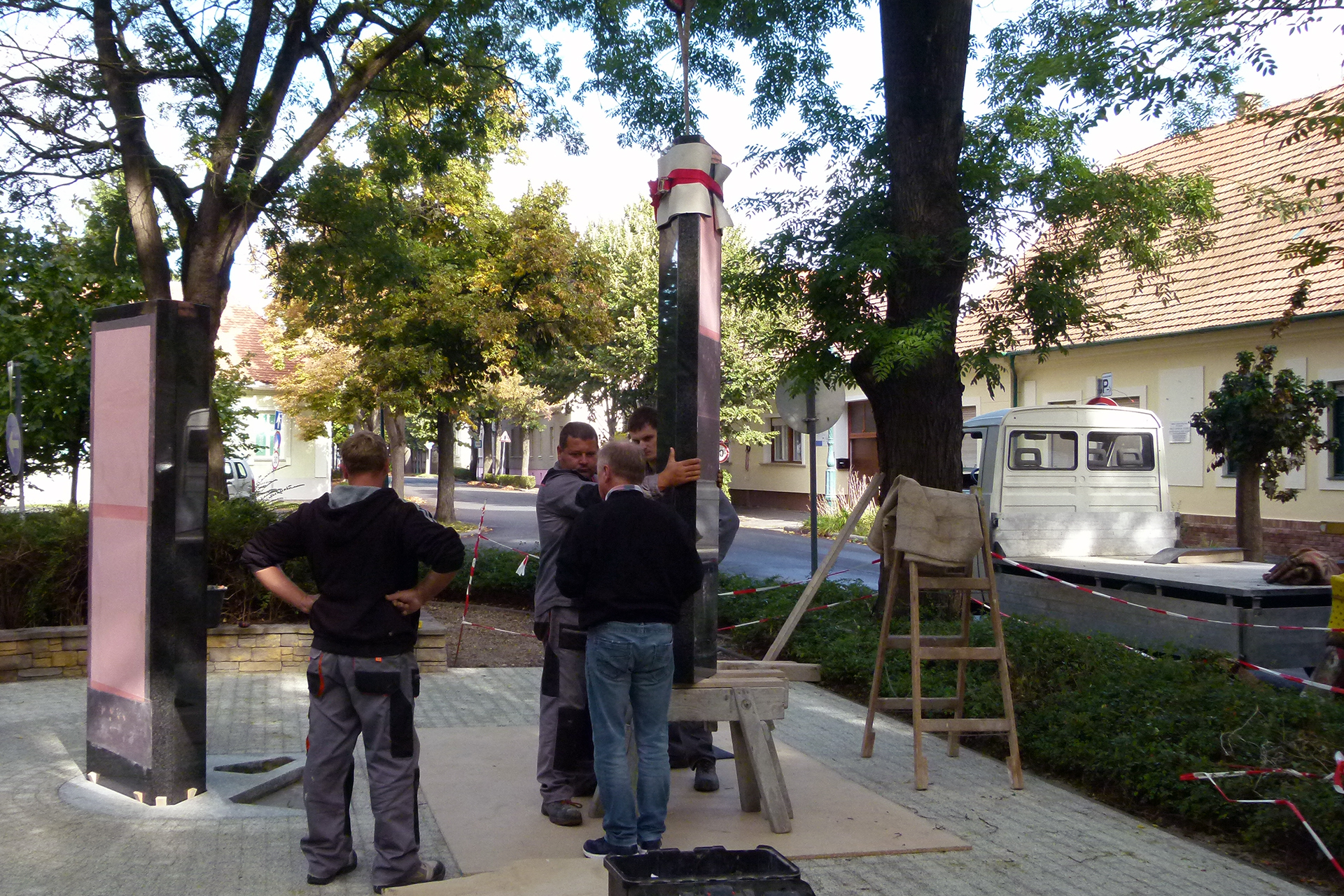 Mint azt Csőke Péter elmondta, az afrikai impala gránitból készült alkotás hasábjainak mindegyike hat részből állt össze. Az összerakás után Akepox német ragasztóanyaggal és csapokkal rögzítették a részeket, amelyek közé a beemeléshez szükséges lapos vasakat is beillesztettek.