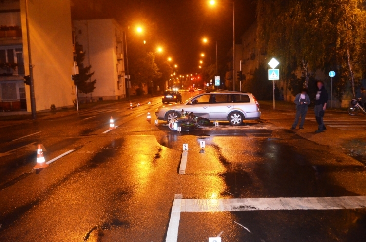 Békéscsabán, a Derkovits sor és a Bánszki utca kereszteződésében 19 órakor személygépkocsi motorkerékpárossal ütközött össze, a motor vezetője könnyű sérülést szenvedett.
