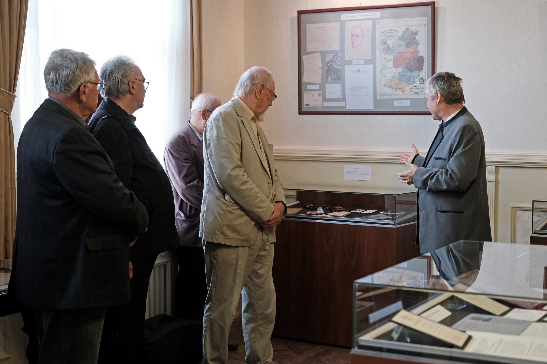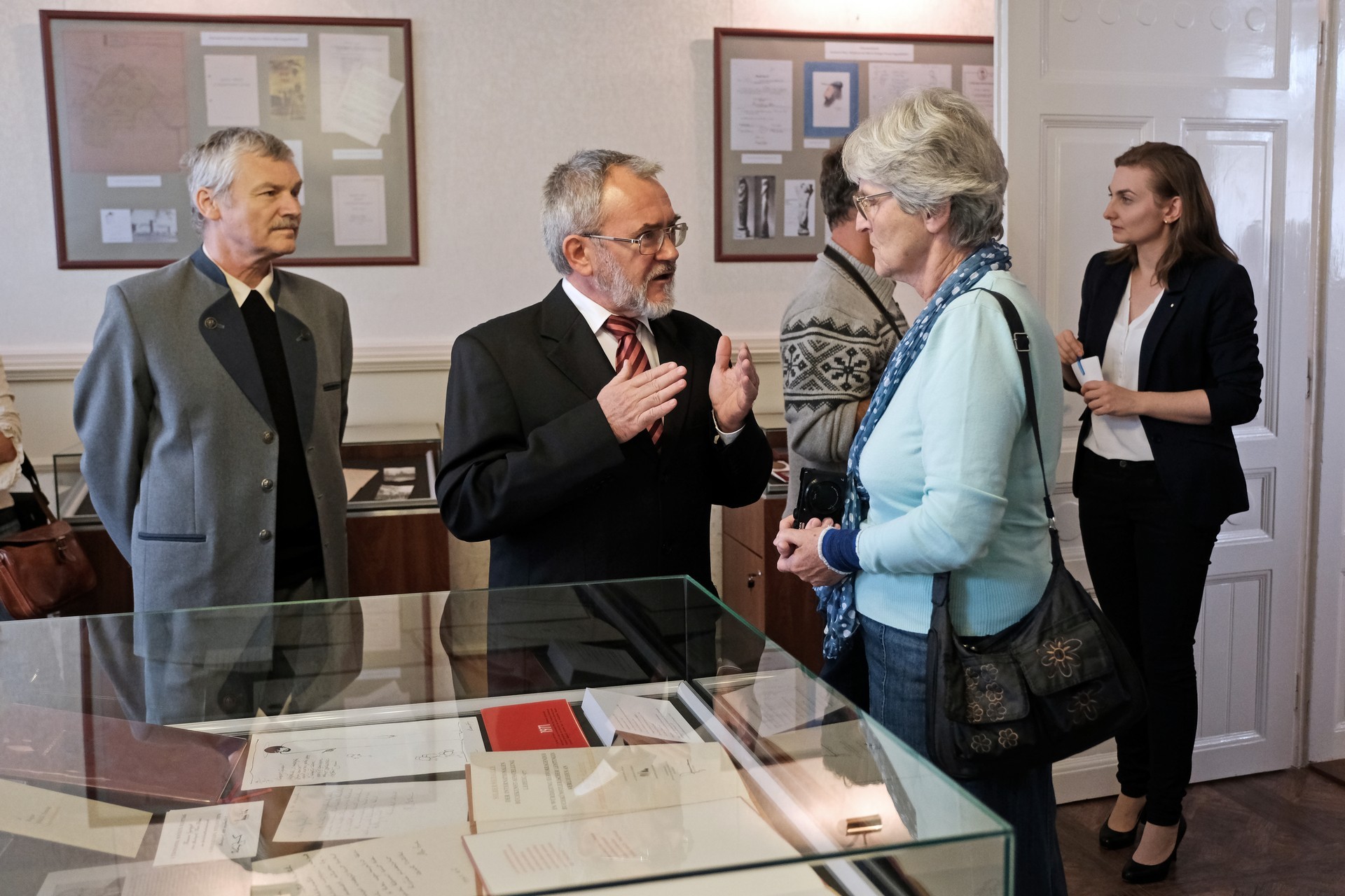 Tárlatvezetésén dr. Németh Csaba azokat az ajándékozókat is megszólította, akik eljöttek a megnyitóra. Aláhúzta, akkora iratmennyiségről van szó, hogy ha az összest kiállították volna, több sorban magasodnának a dobozok. Mint mondta, nem volt egyszerű válogatni. Úgy szelektált, hogy nem csupán a tudományos értékre figyelt, hanem arra is, hogy a kiállított régiségek szemre is vonzók legyenek. Így nem feltétlenül a legértékesebb tárgyak kerültek a tárlókba.