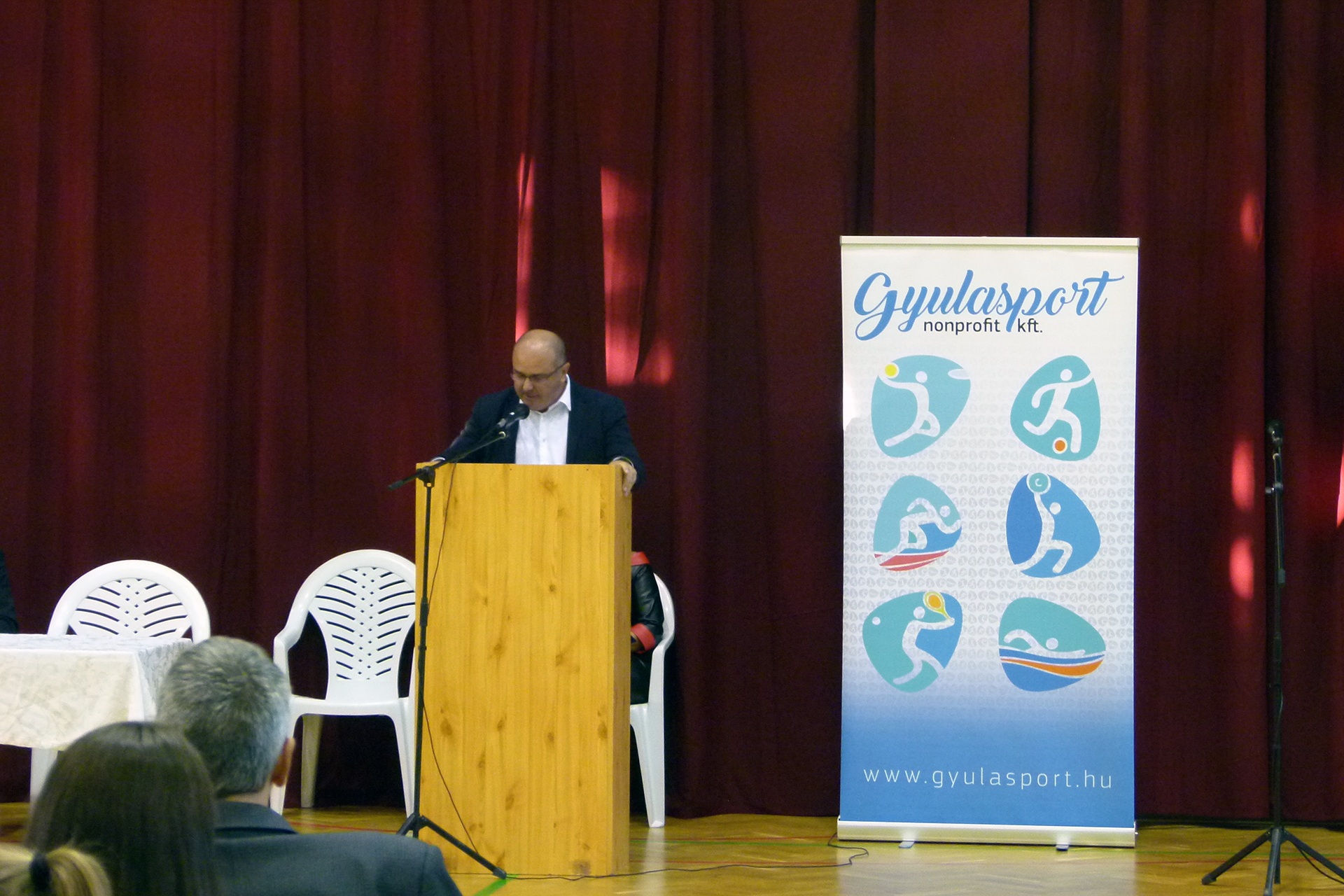 Kertes István nyitóbeszédében kifejtette, hogy egy sportiskola életében az évnyitó mindig az előző év sikereinek és eredményeinek számbavételével kezdődik. A Gyulasport NKft. sikerként könyvelheti el, hogy egyre több gyermek választja a Gyulasport NKft. szakosztályait, hiszen a három sportágban mintegy kétszáz gyermek végez sportmunkát kiváló edzők irányításával.