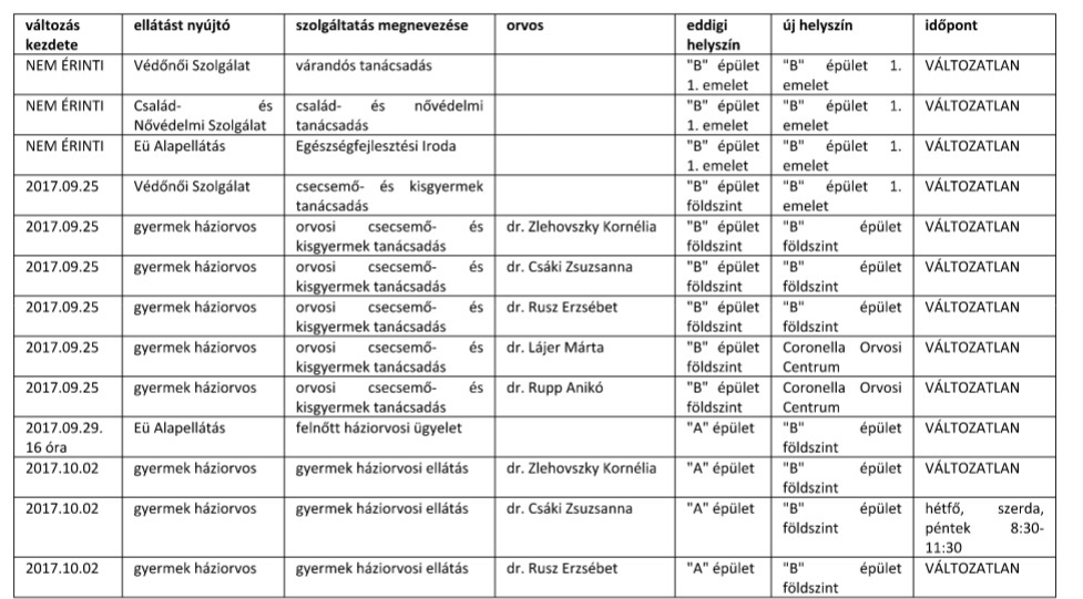 Alt Norbert kiemelte: a felújítás miatt az Egészségügyi Alapellátási Intézmény épületének Béke sugárúti épületrészét (az A épület) teljes egészében lezárják. Emiatt bizonyos szolgáltatások helyszíne és időpontja is módosul.
