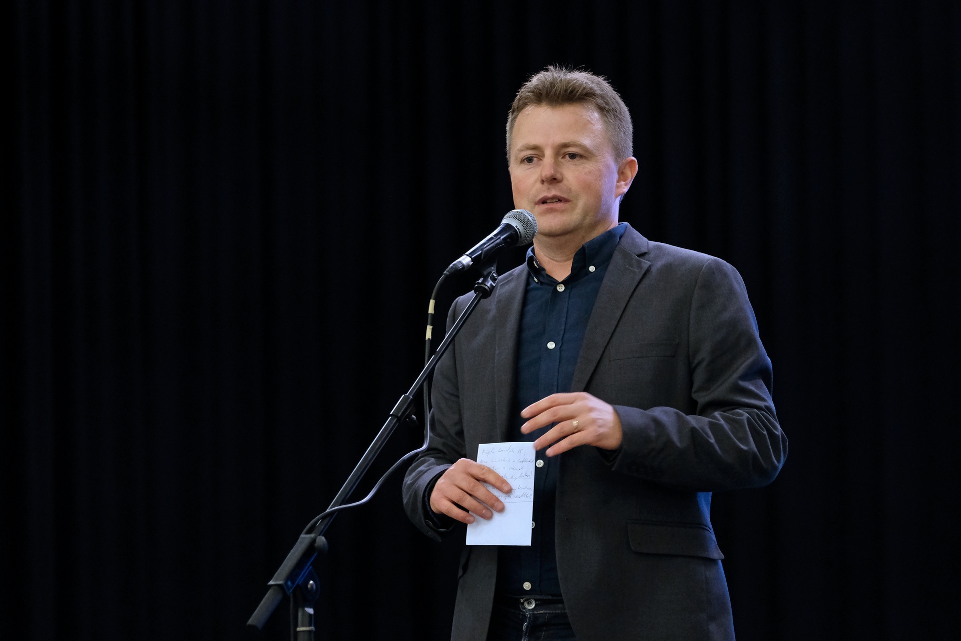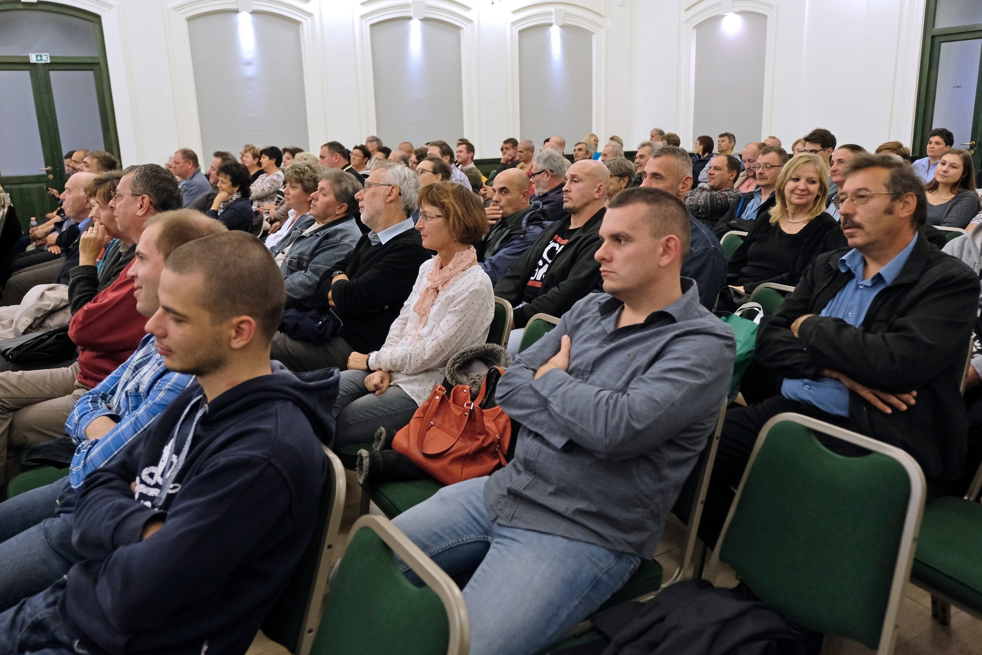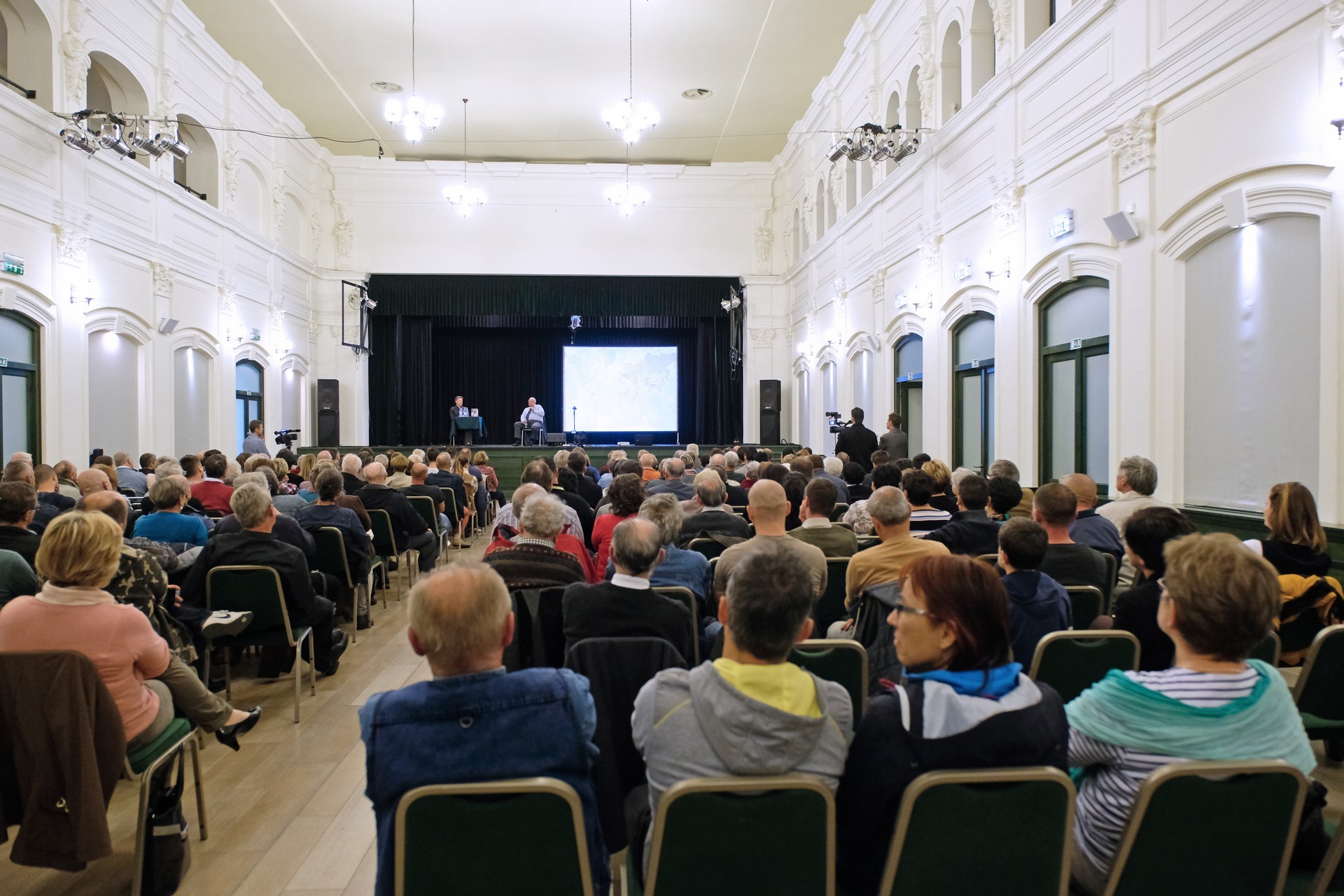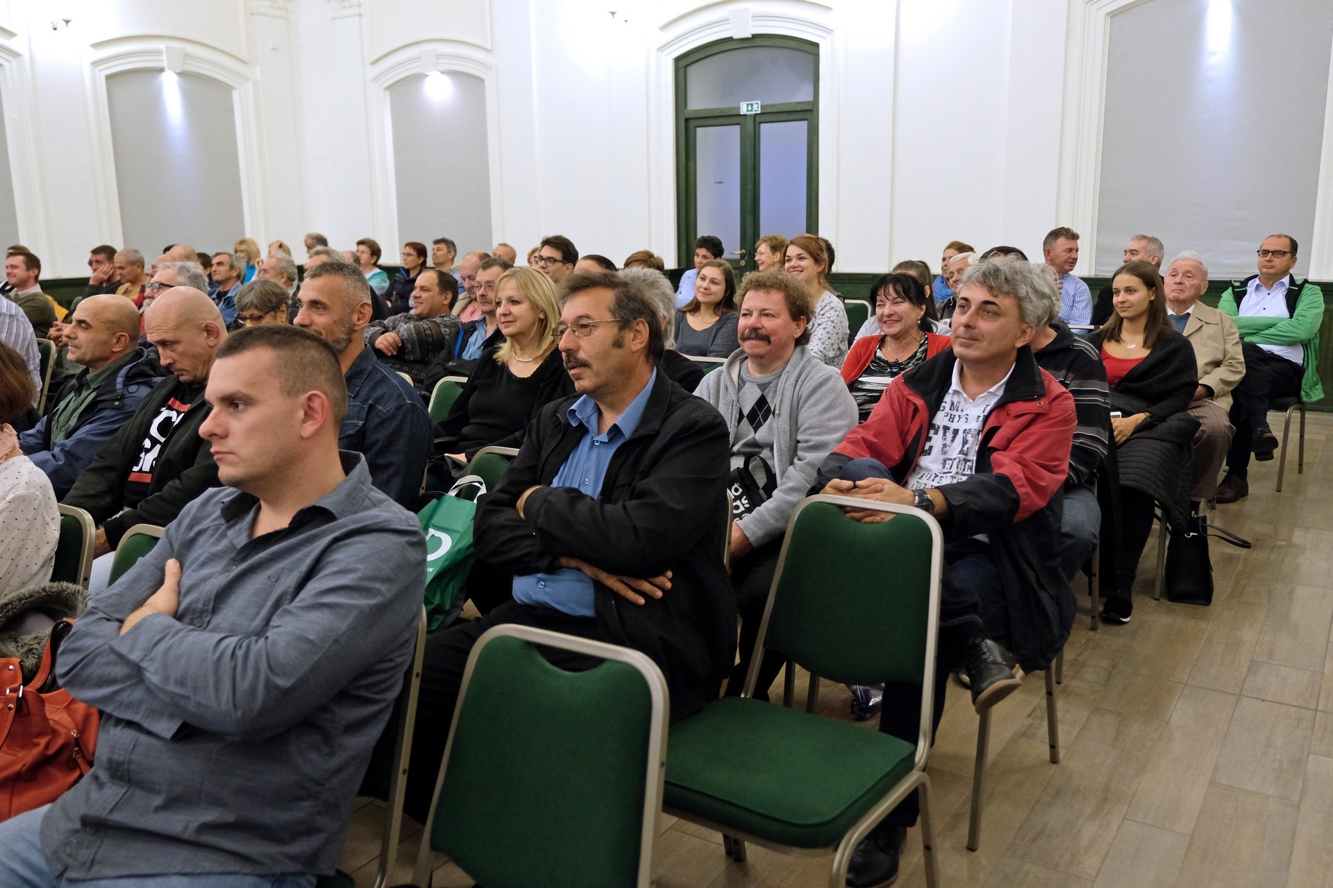 Nógrádi György előadás előtt Alt Norbert alpolgármester köszöntötte az érdeklődőket a gyulai Vigadóban.