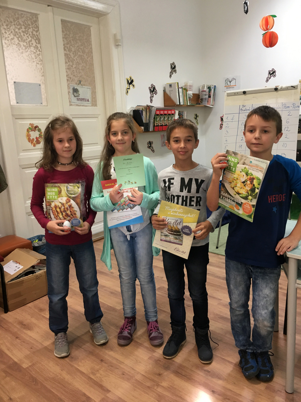 Változatos feladatokon keresztül hol játékos, hol igazi fejtörő formájában kellett számot adniuk a gyerekeknek a mesehősökről, ügyességről, logikus gondolkozásról, eddig szerzett tudásukról. Nagy segítséget jelent az iskolai könyvtárosnak, hogy Miklós Gáborné nyugdíjas kolléganőnk szívesen tér vissza közénk, s állít össze számunkra ilyen vidám programot.