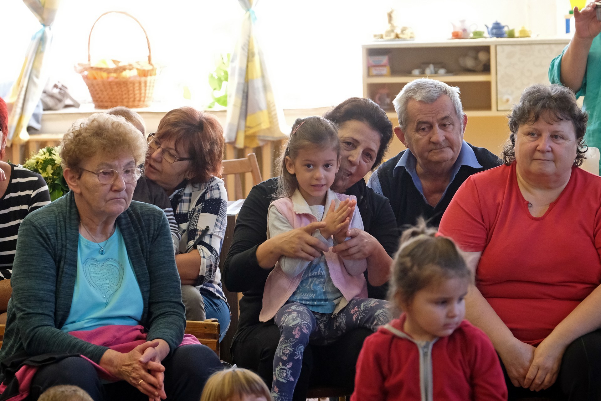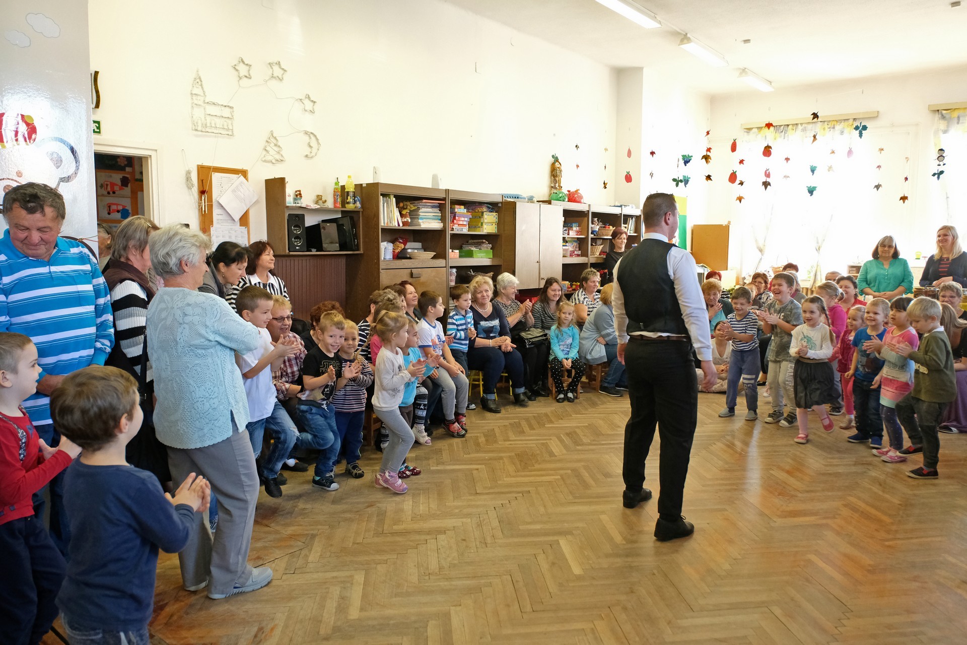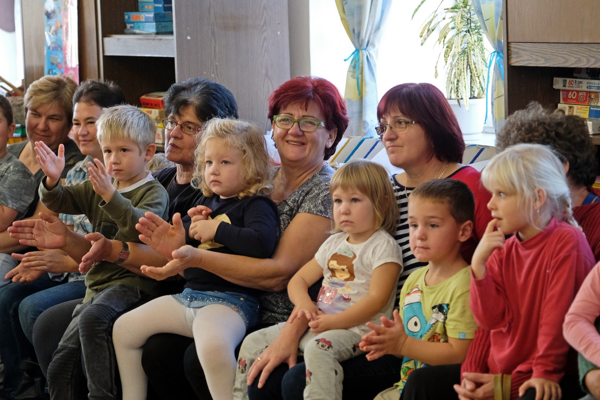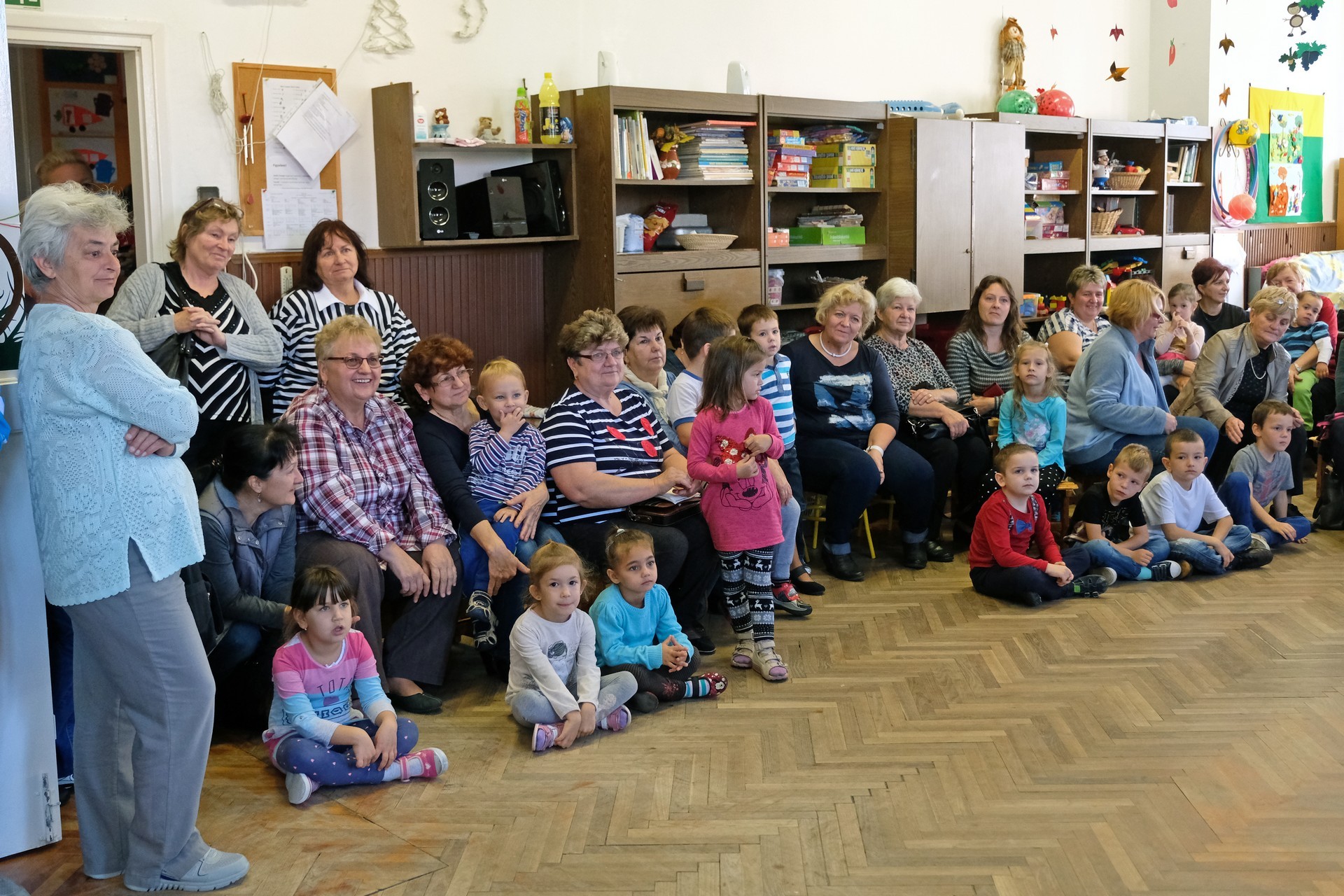 A megnyitó után a gyermekek verssel köszöntötték nagyszüleiket, majd egy rövid tánc után mindenki a csoportszobákba ment, és kezdetét vette a nagyszülőkkel eltöltött közös délelőtt.