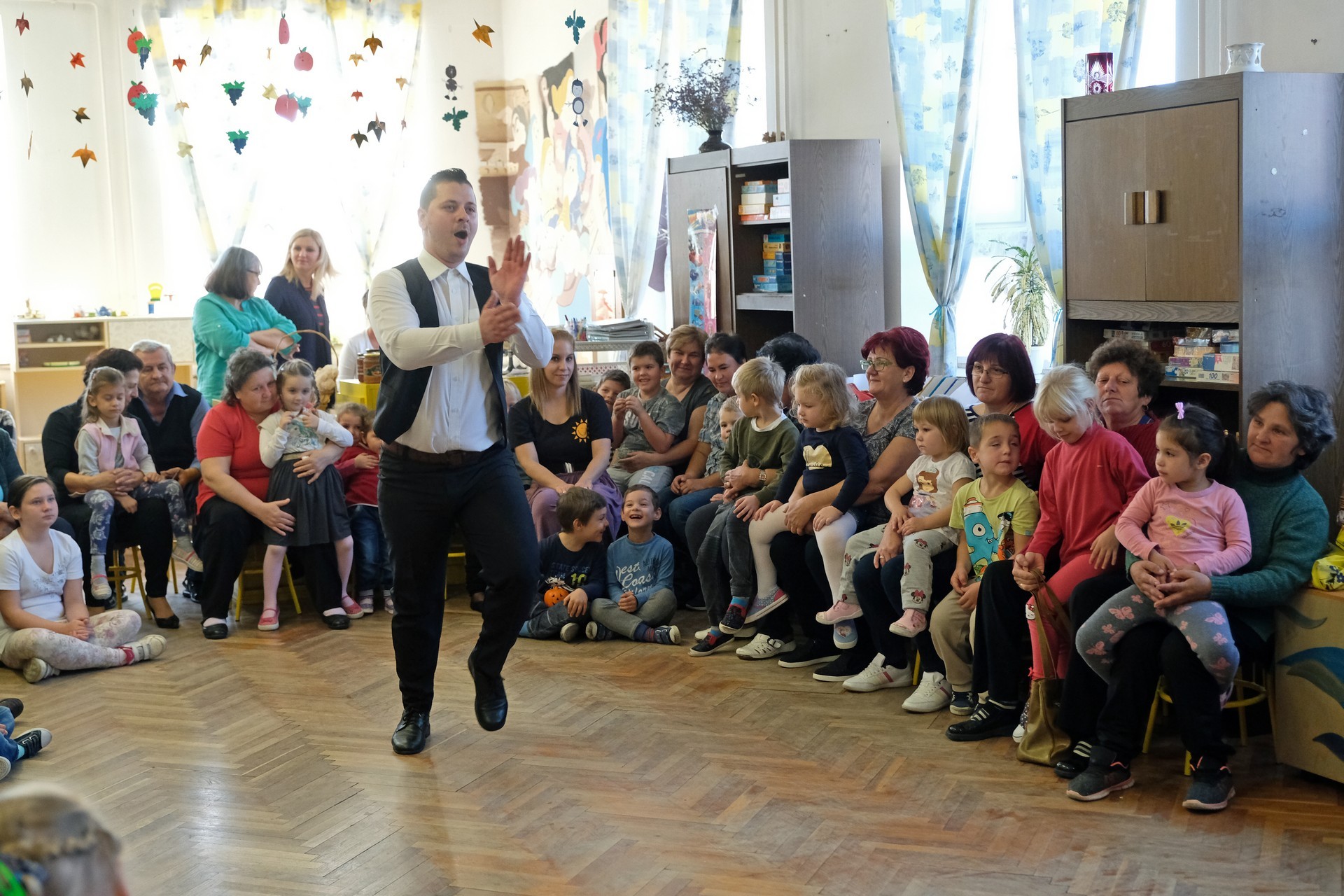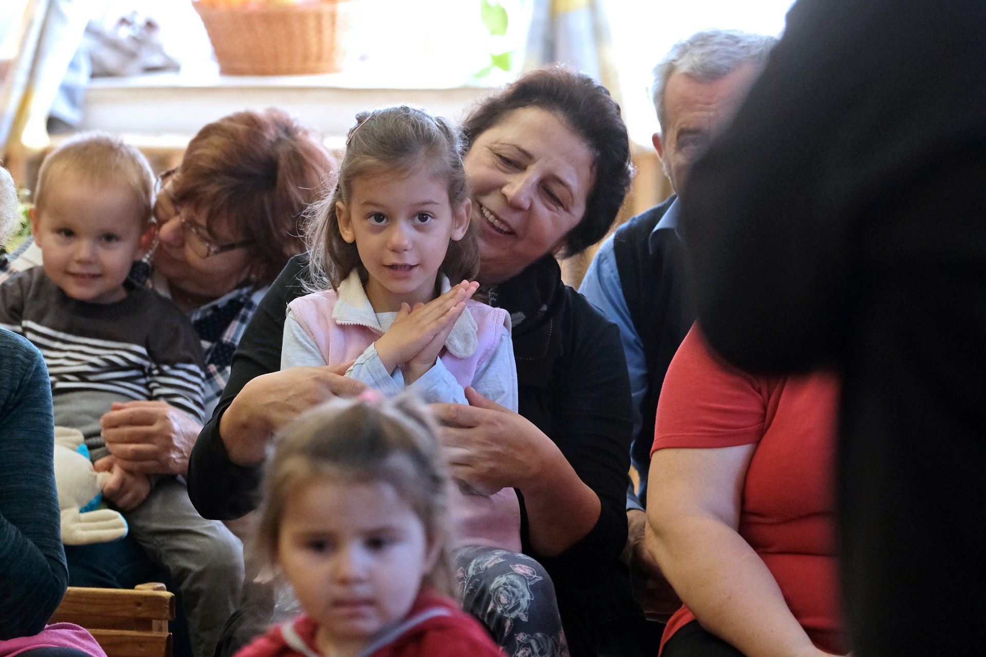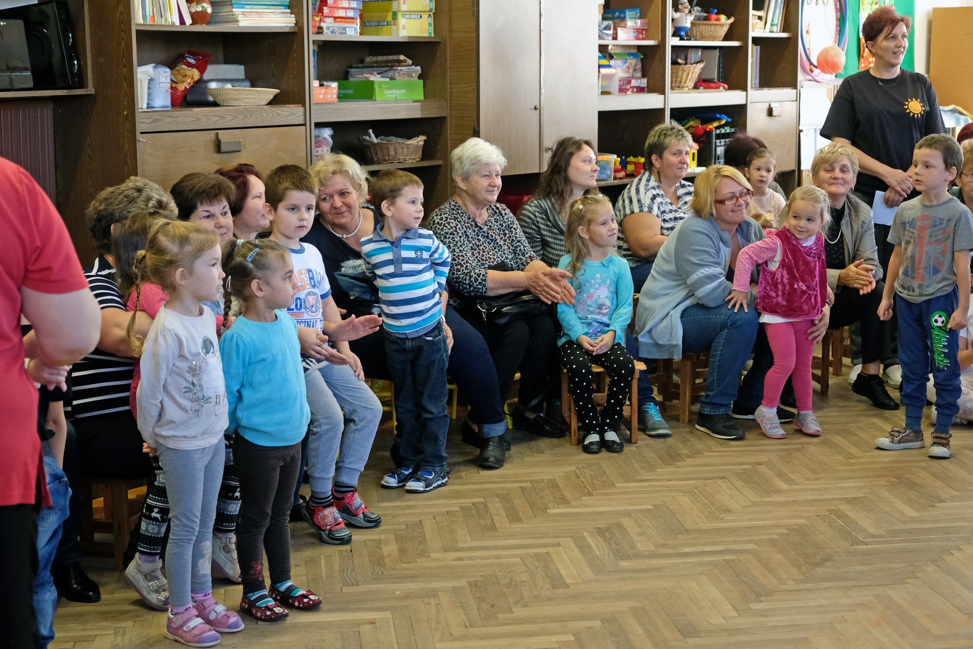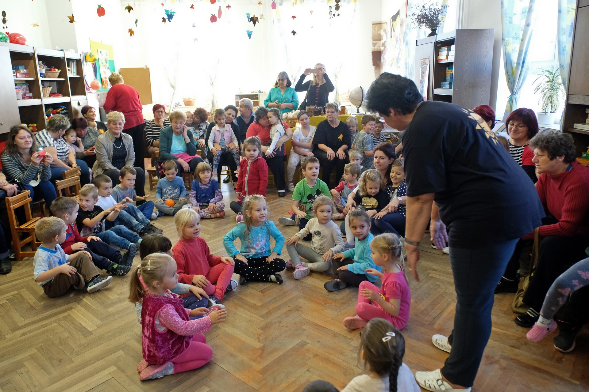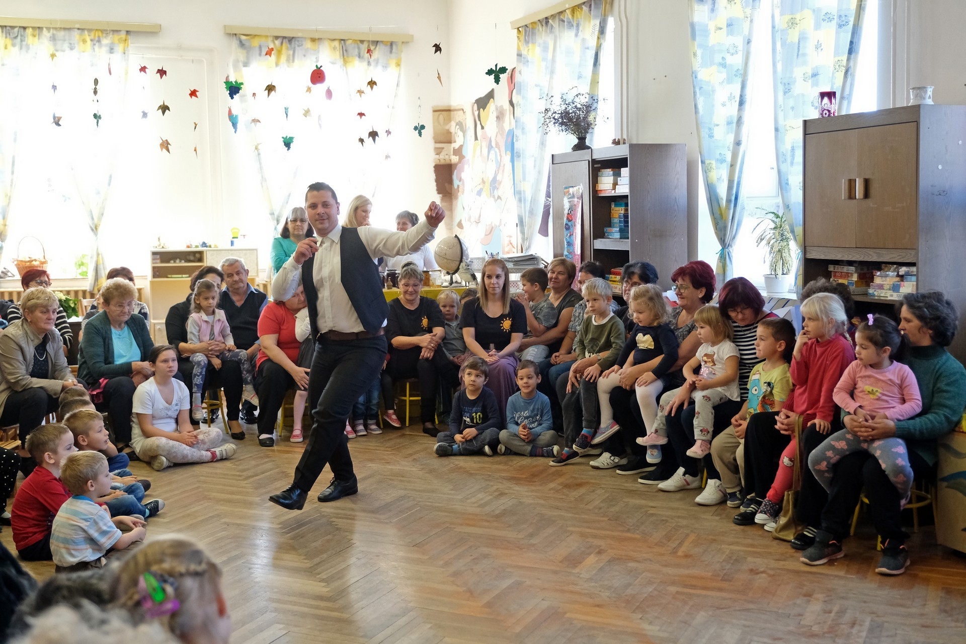 A megnyitó után a gyermekek verssel köszöntötték nagyszüleiket, majd egy rövid tánc után mindenki a csoportszobákba ment, és kezdetét vette a nagyszülőkkel eltöltött közös délelőtt.