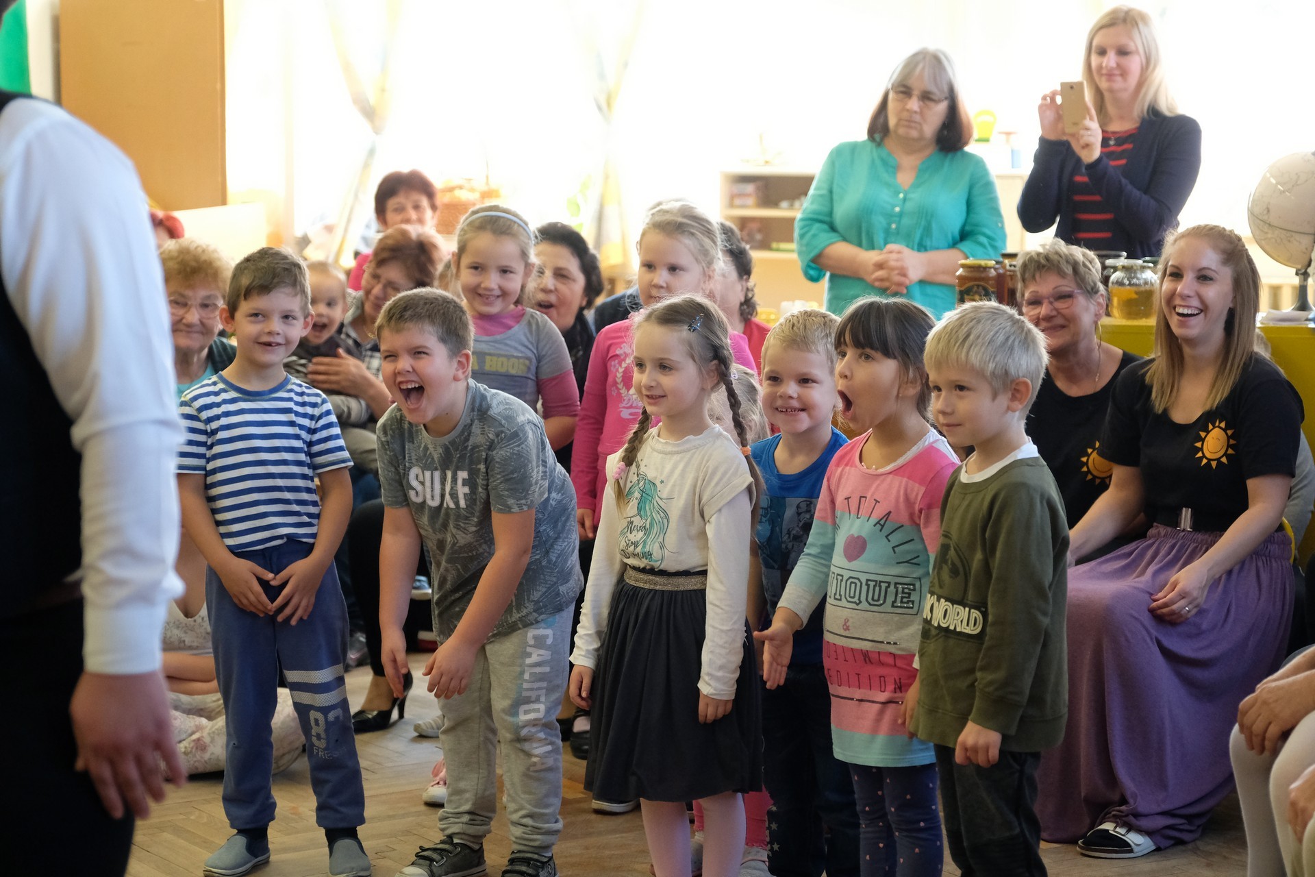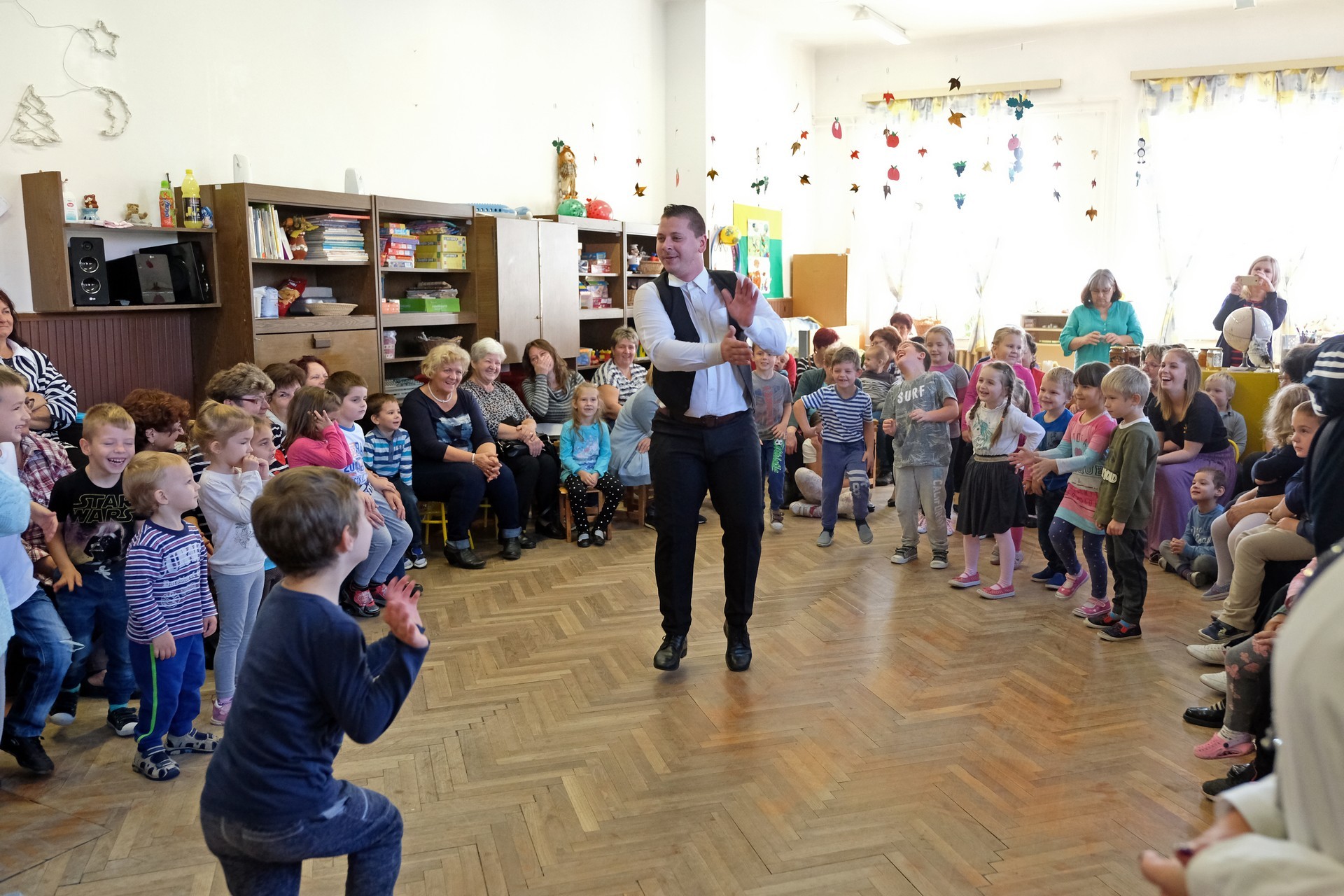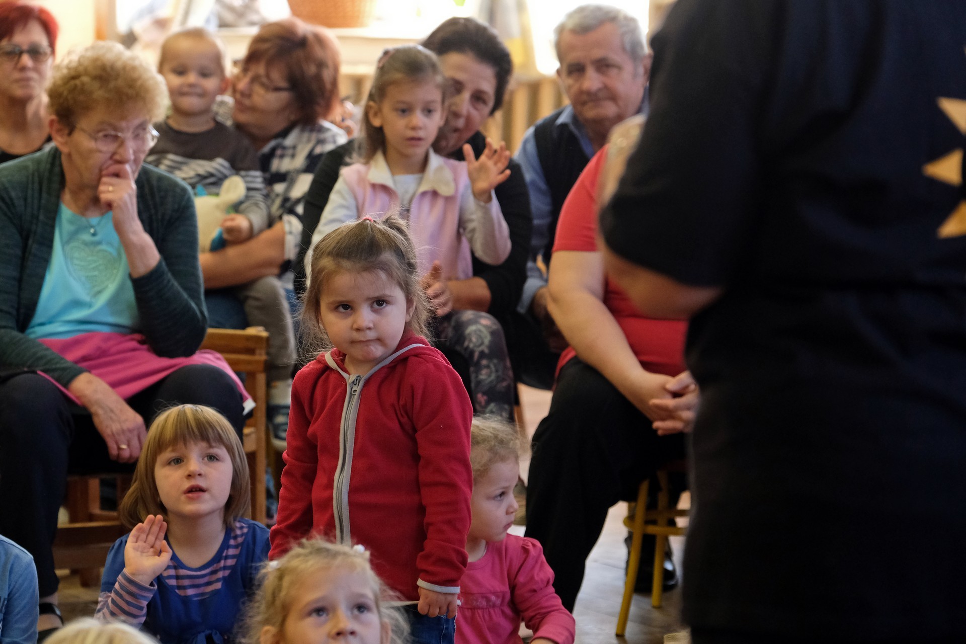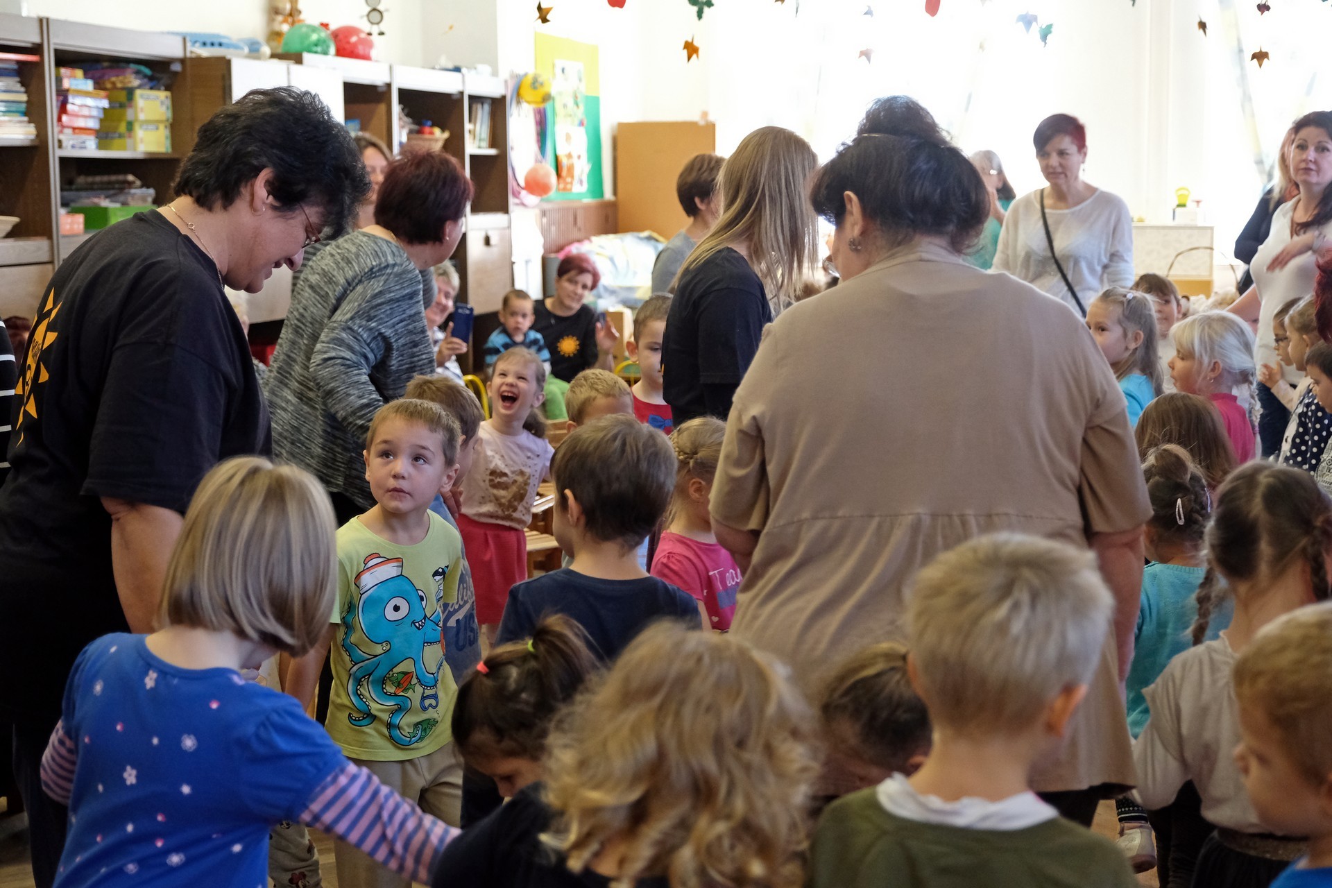 A megnyitó után a gyermekek verssel köszöntötték nagyszüleiket, majd egy rövid tánc után mindenki a csoportszobákba ment, és kezdetét vette a nagyszülőkkel eltöltött közös délelőtt.