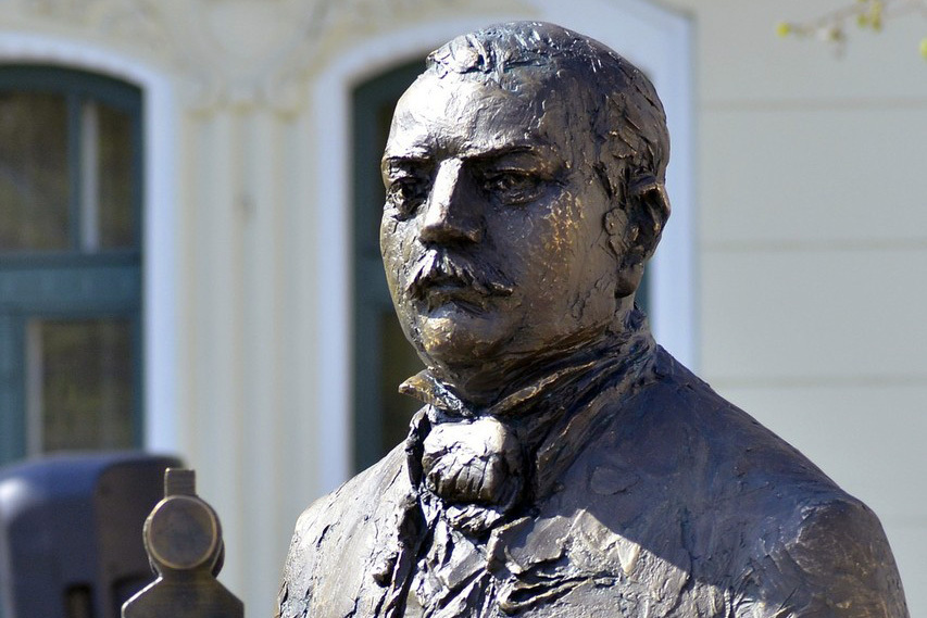Bodoki Károly szobra a vízügyi igazgatóság épülete előtt