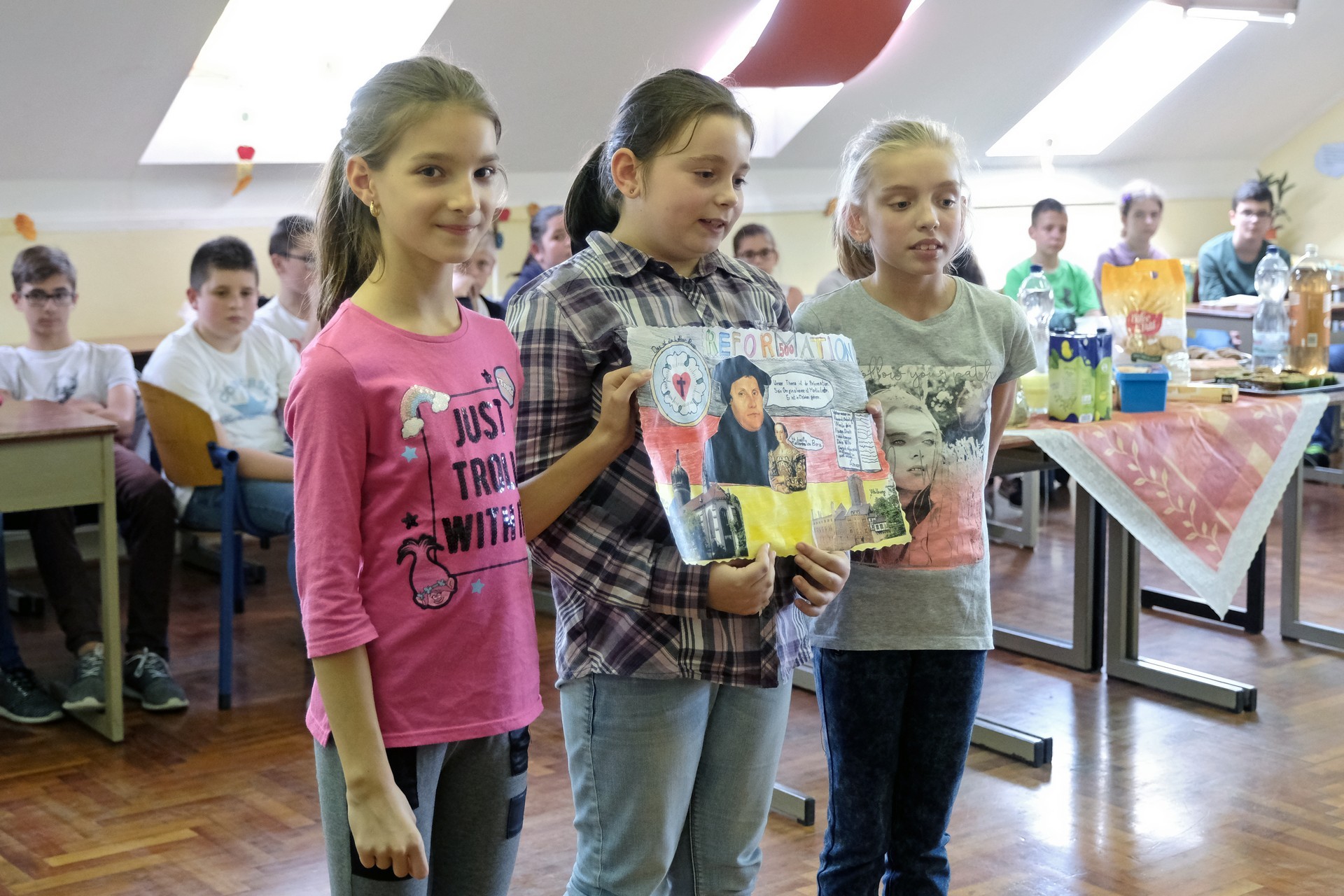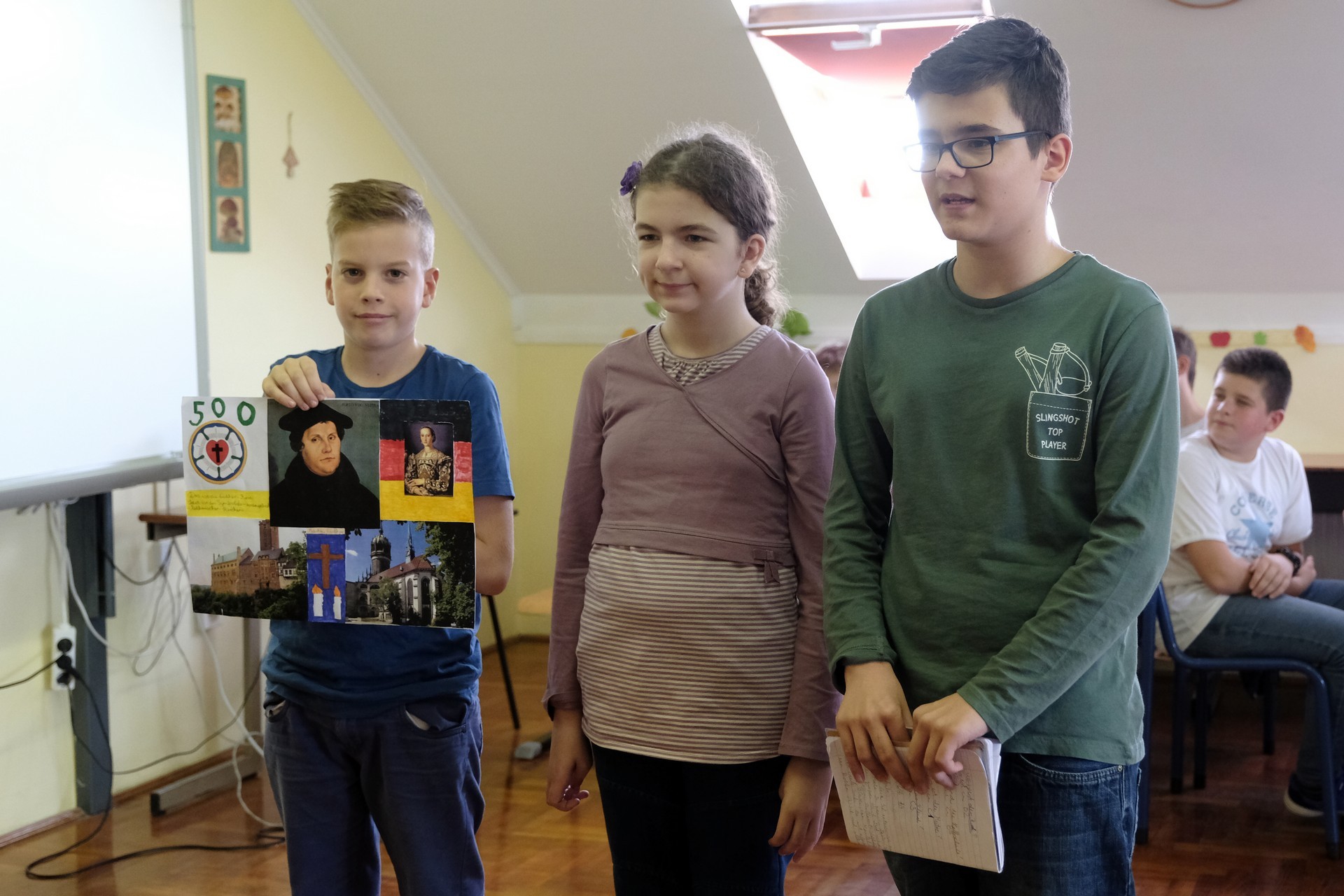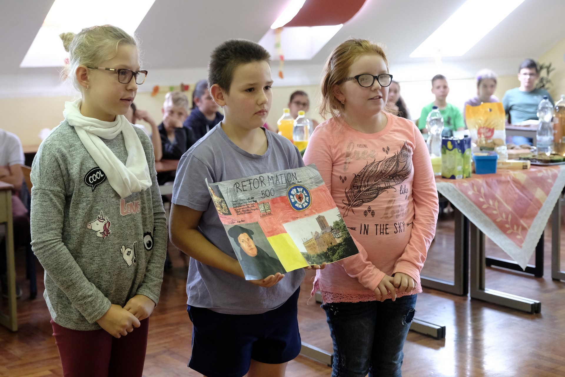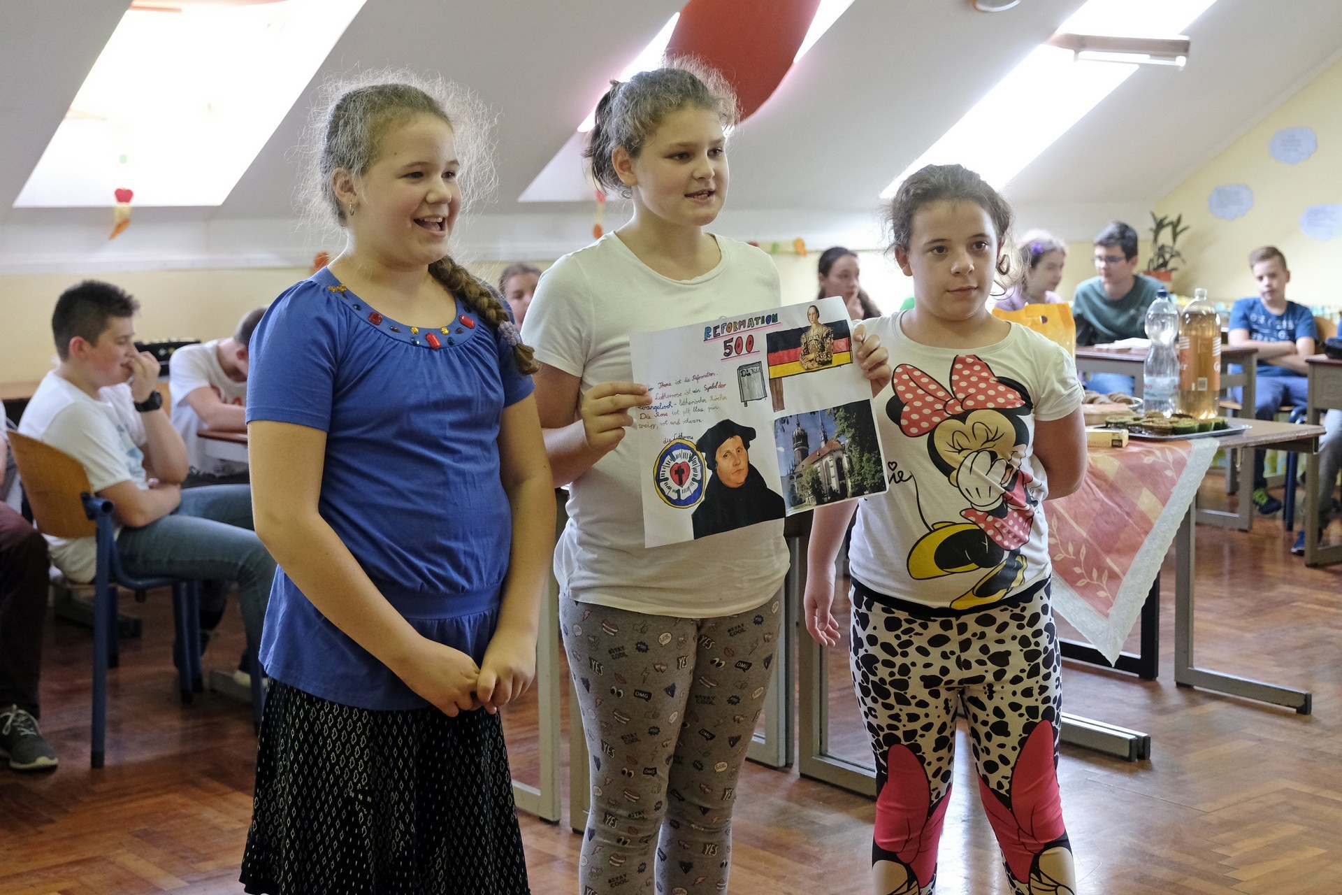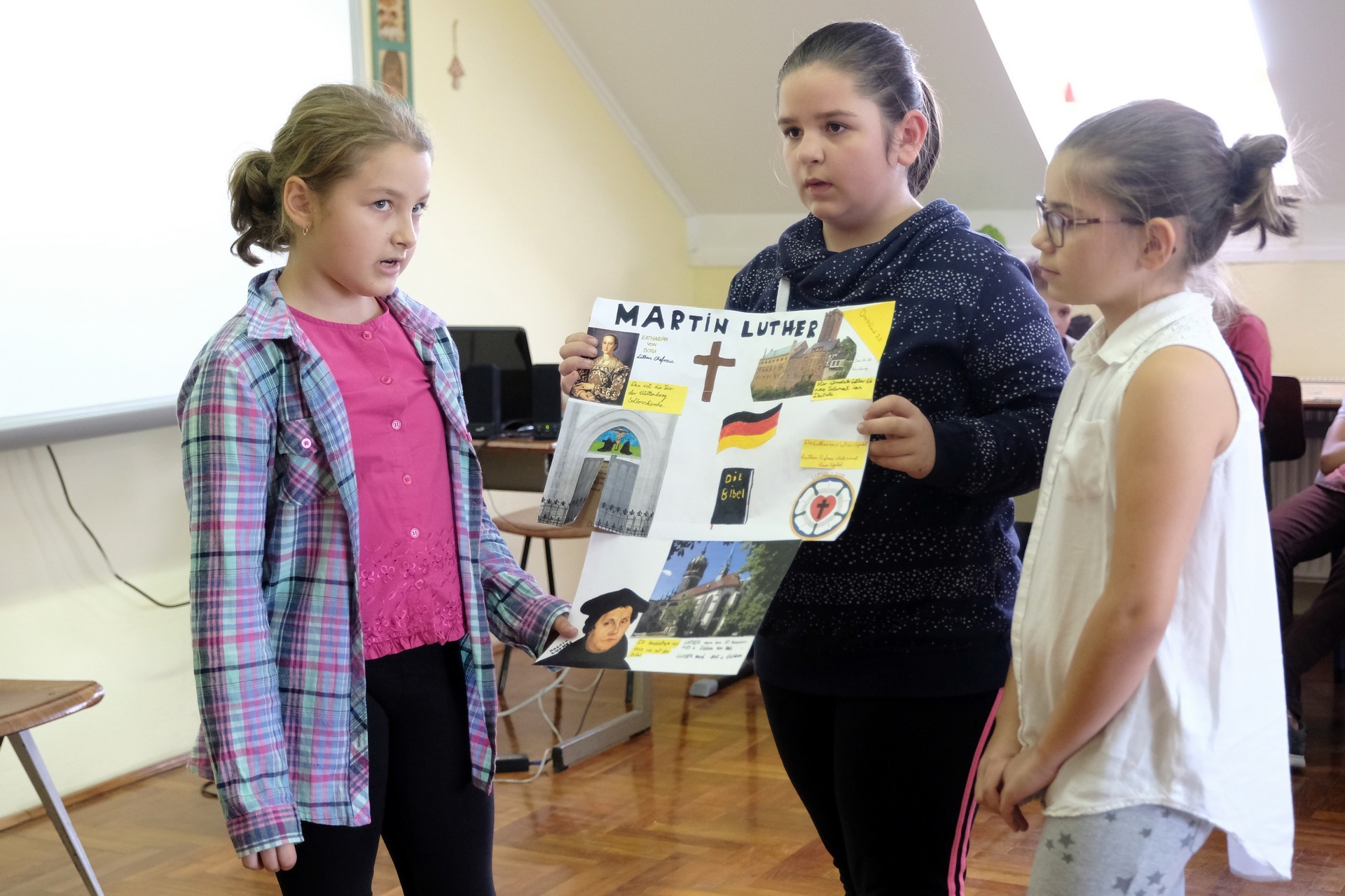 A részt vevő gyerekek süteménnyel és üdítővel vendégelték meg egymást, plakátokat készítettek Lutherről, valamint dalok és versek is elhangzottak a délután folyamán.