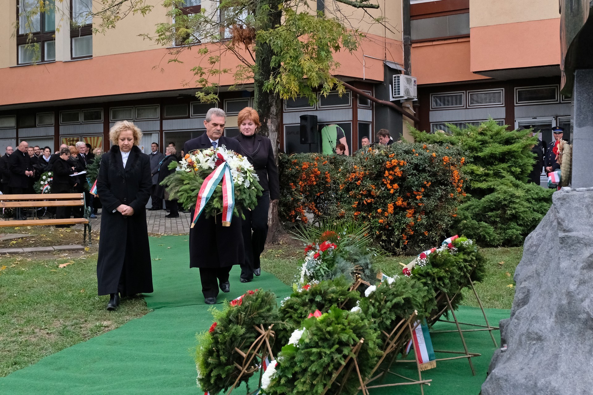 '56-ban is voltak olyanok, akik nem hittek a szabadságban, és nem tettek semmit azért, hogy jobb legyen a közös sorsunk, sőt voltak olyanok is, akik aprópénzre váltották azt, amit anyagi értékekben nem lehet kifejezni. Ezek az emberek nem hittek abban, hogy a magyar nemzet képes talpra állni, és szabad és független európai országként létezni, hanem honfitársaikat náci csőcseléknek titulálva mindent megtettek azért, hogy a forradalmat és mindazokat, akik részt vettek benne, könyörtelenül eltapossák, és még az emléküket is kitöröljék mindenhonnan. Ezek az emberek eladták hazájukat, kiadták szomszédjukat a visszaszivárgó ÁVH-s verőembereknek, bitófára juttattak fiatal életeket, gúnyos mosollyal az arcukon mondogatták, hogy na látjátok, felesleges volt minden. Vérbírók, hóhérok, ÁVH-s gyilkosok és besúgóik ásták meg egy ország sírját, amelybe hosszú időre belelöktek egy egész nemzetet, bízva abban, hogy a rádobott véres föld elfedi mindazokat a bűnöket és mindazt a sok gonoszságot, amelyet ezzel a néppel elkövettek. Látszólag '56-ban ők győzedelmeskedtek, azonban a nemzet végleges megtörését, a kollektív népemlékezet kitörlését, bűnös nyomaik elfedését mégsem tudták elérni. Hiszen ma mind itt vagyunk, és együtt emlékezünk azokkal a közöttünk élő '56-osokkal, akik egykor városunk életének meghatározó alakítói voltak. Ezen a napon őket ünnepeljük, akik vállalták sorsukat, akik vállalták a nehézségeket, nem törődtek a következményekkel és a megpróbáltatásokkal. Nekik tartozunk ma hálával és köszönettel.