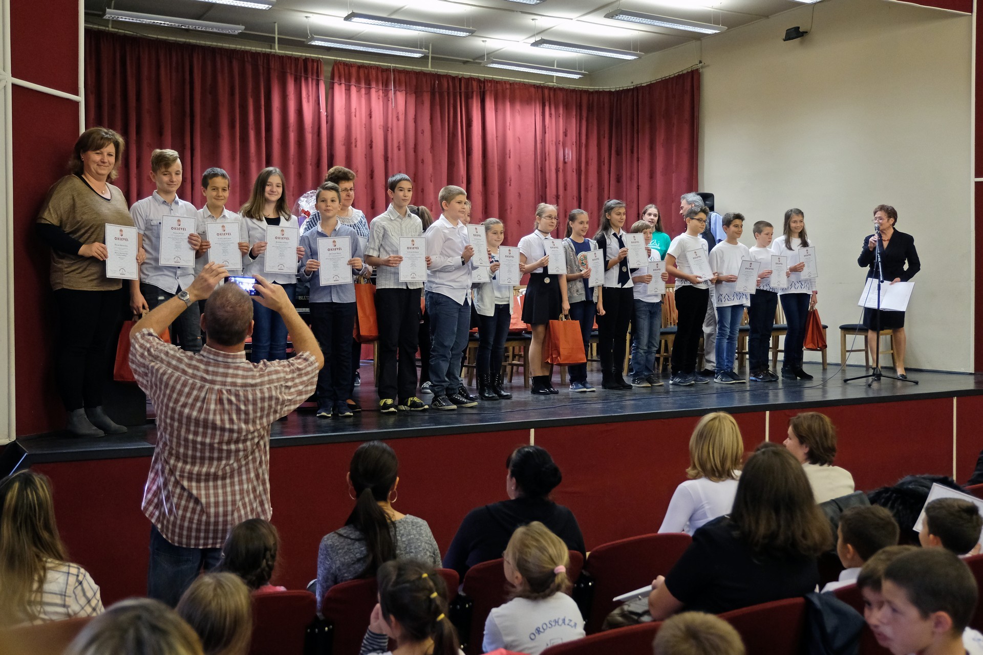 Az ünnepségen a 3–8. évfolyamon az első hat helyen végzett csapatok és felkészítőik vehettek át elismerést.
