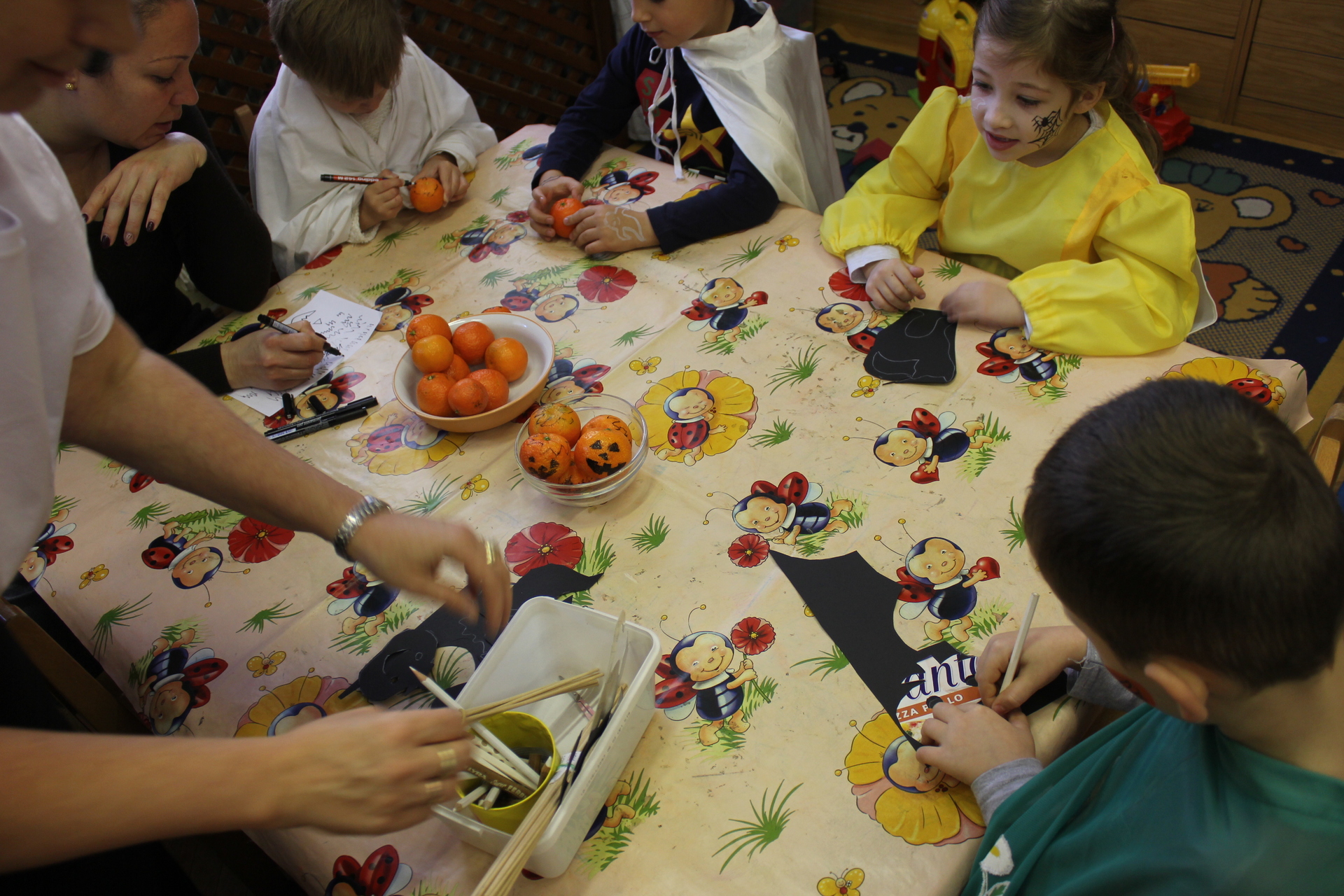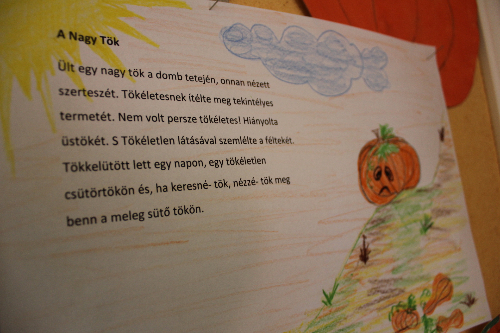 – Mindig projektekben dolgozunk, ennek az időszaknak a tematikája a tök. A múlt héten mindennap a tökkel foglalkoztunk, ami azt jelenti, hogy ahhoz kapcsolódó verseket, meséket, dalokat hallgattunk, és rengeteg kreatív játékunk is volt. A tematikához kapcsolódóan apró tárgyakat is készítünk, most éppen mandarinból barkácsolnak tökfejeket a gyerekek az egyik csoportszobában – tette hozzá az óvónő.