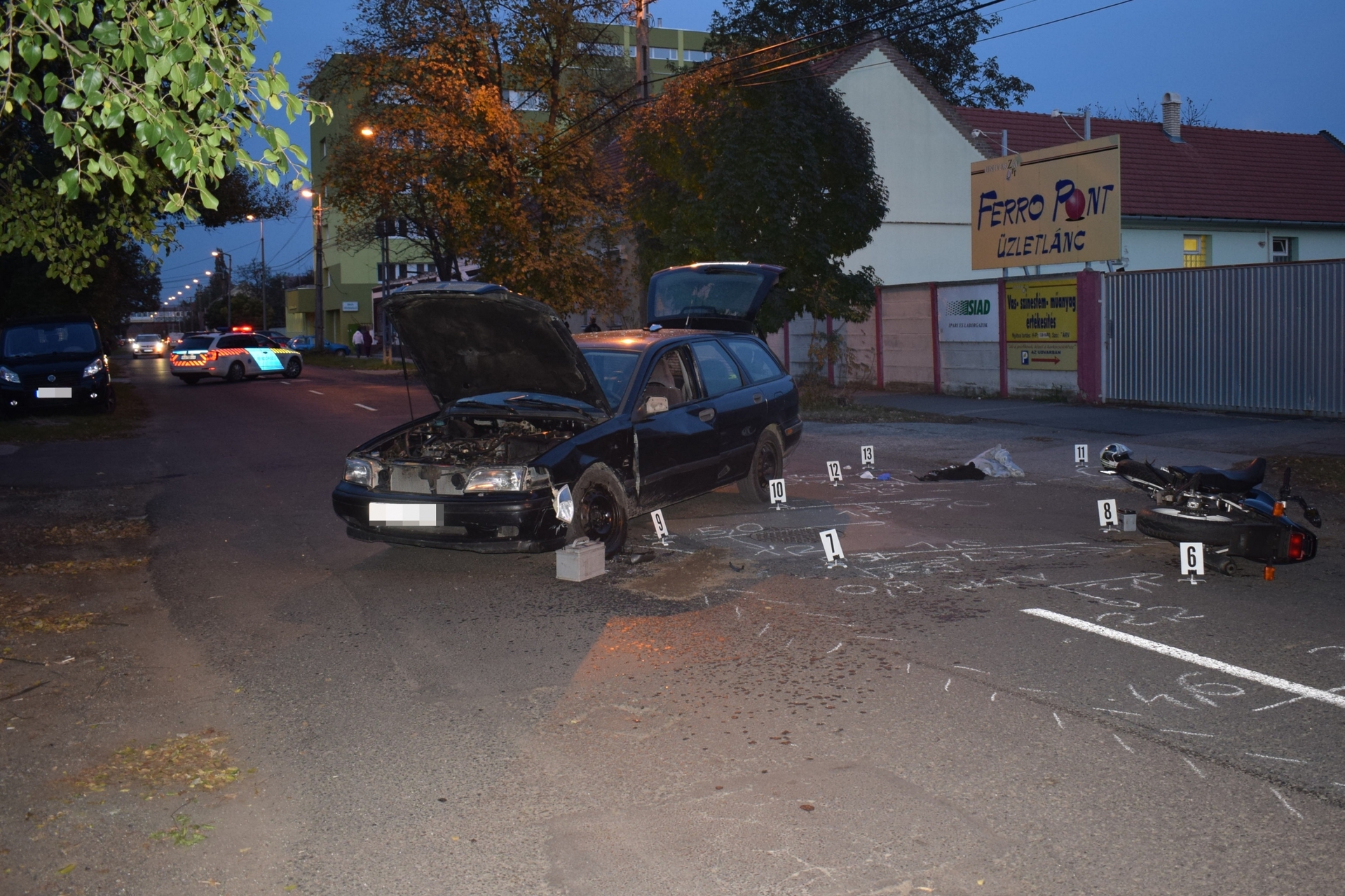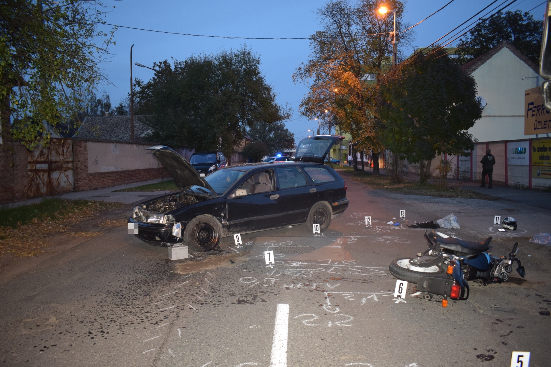 A mentők az autó vezetőjét könnyű, a motor vezetőjét pedig súlyos sérüléssel vitték kórházba.