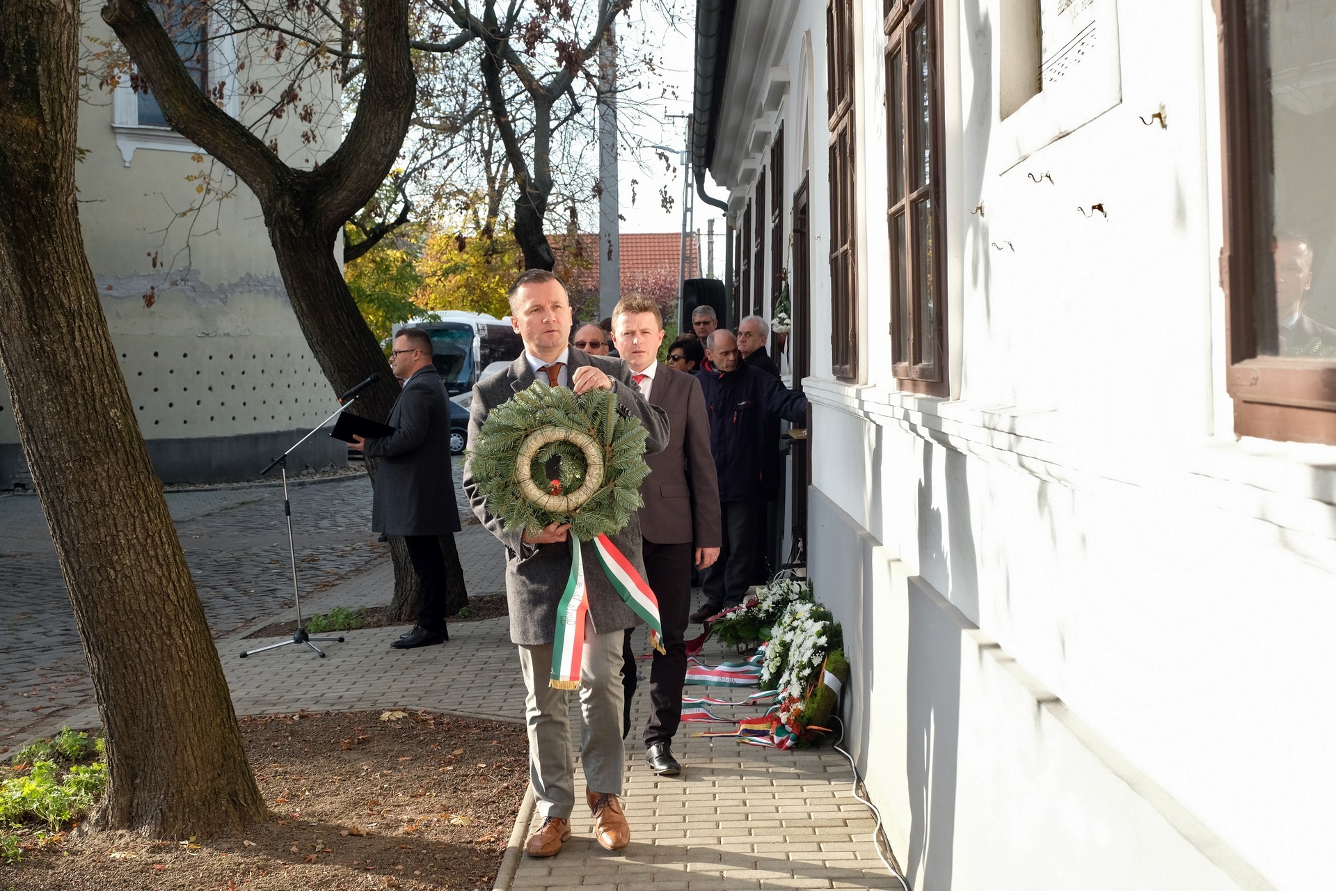 A koszorúzás tiszteletteljesen és barátságos hangulatban zajlott. Gyula város önkormányzata nevében Görgényi Ernő polgármester és Alt Norbert alpolgármester koszorúzott, Arad nevében Bognár Levente alpolgármester. Ezt követően tiszteletét fejezte ki az Erkel Társaság, az aradi Kölcsey Egyesület, az Erkel Ferenc Nonprofit Kft., az Erkel Ferenc Alapfokú Művészeti Iskola, az Erkel Ferenc gimnázium, a Mogyoróssy János Városi Könyvtár és a Harruckern János Közoktatási Intézmény.