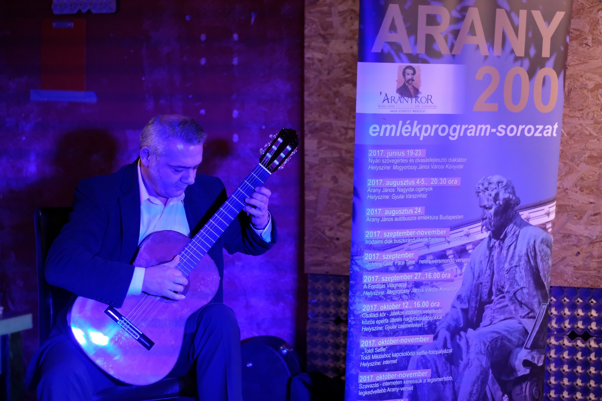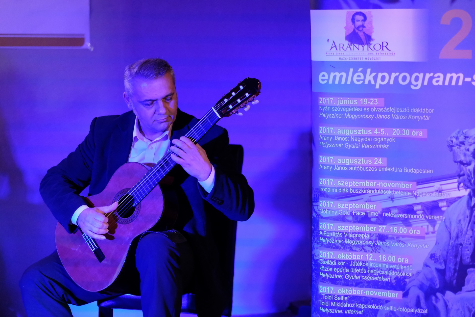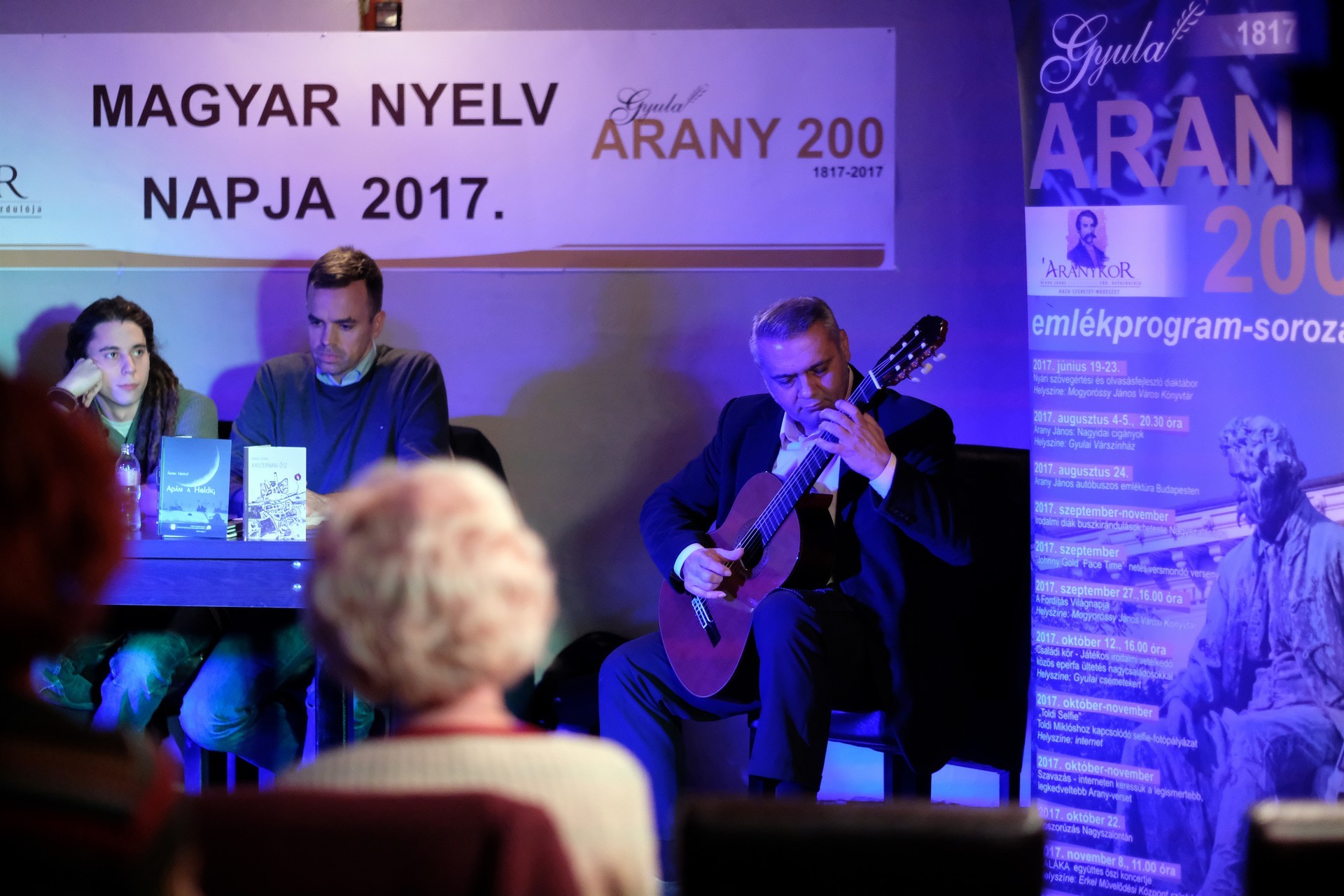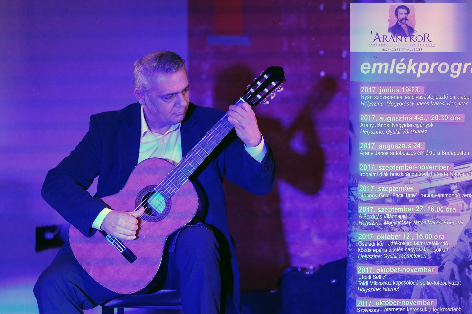 A poétika gyönyörét Varga Zsolt gitárművész stílusosan összeválogatott zenei bejátszásai fokozták.