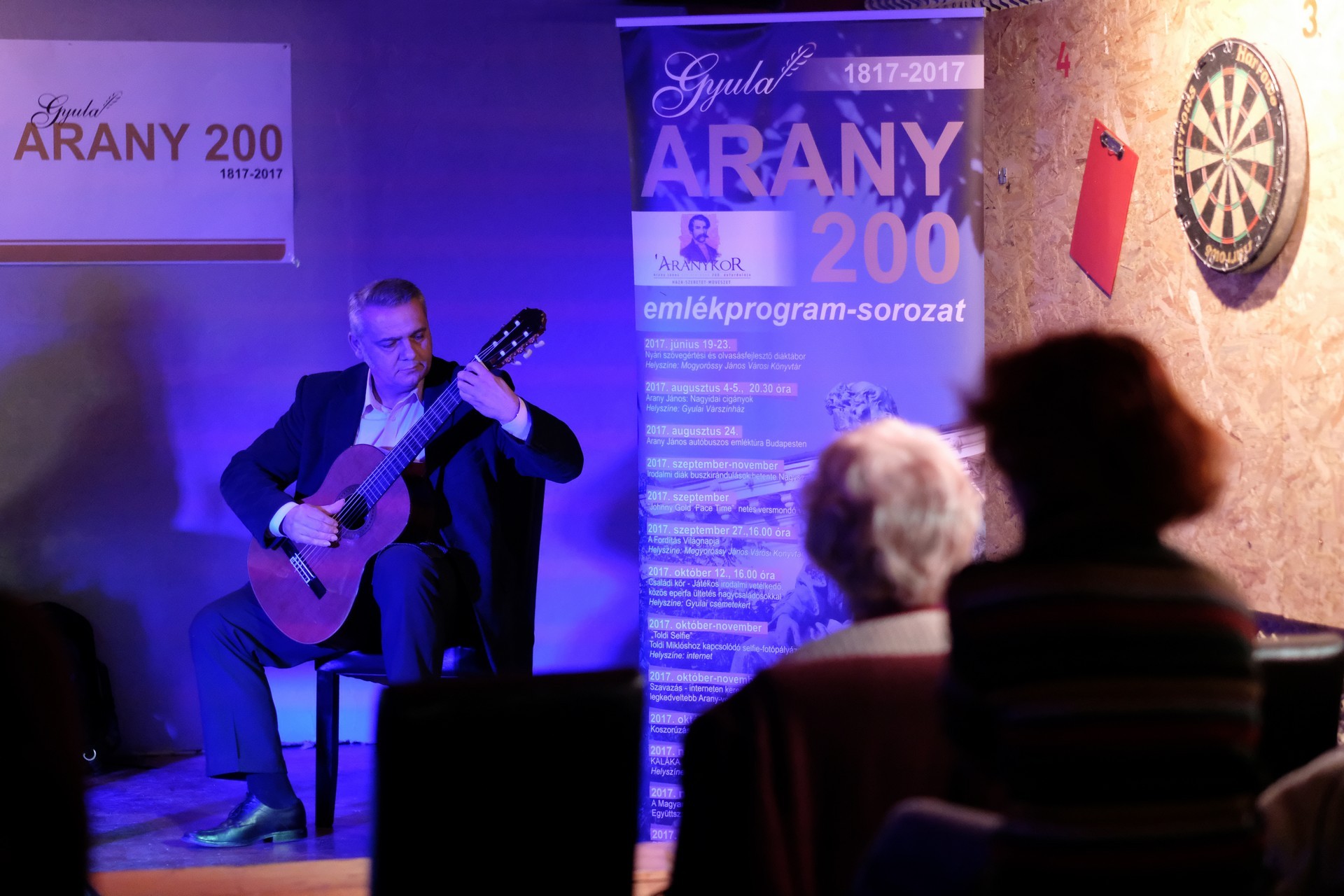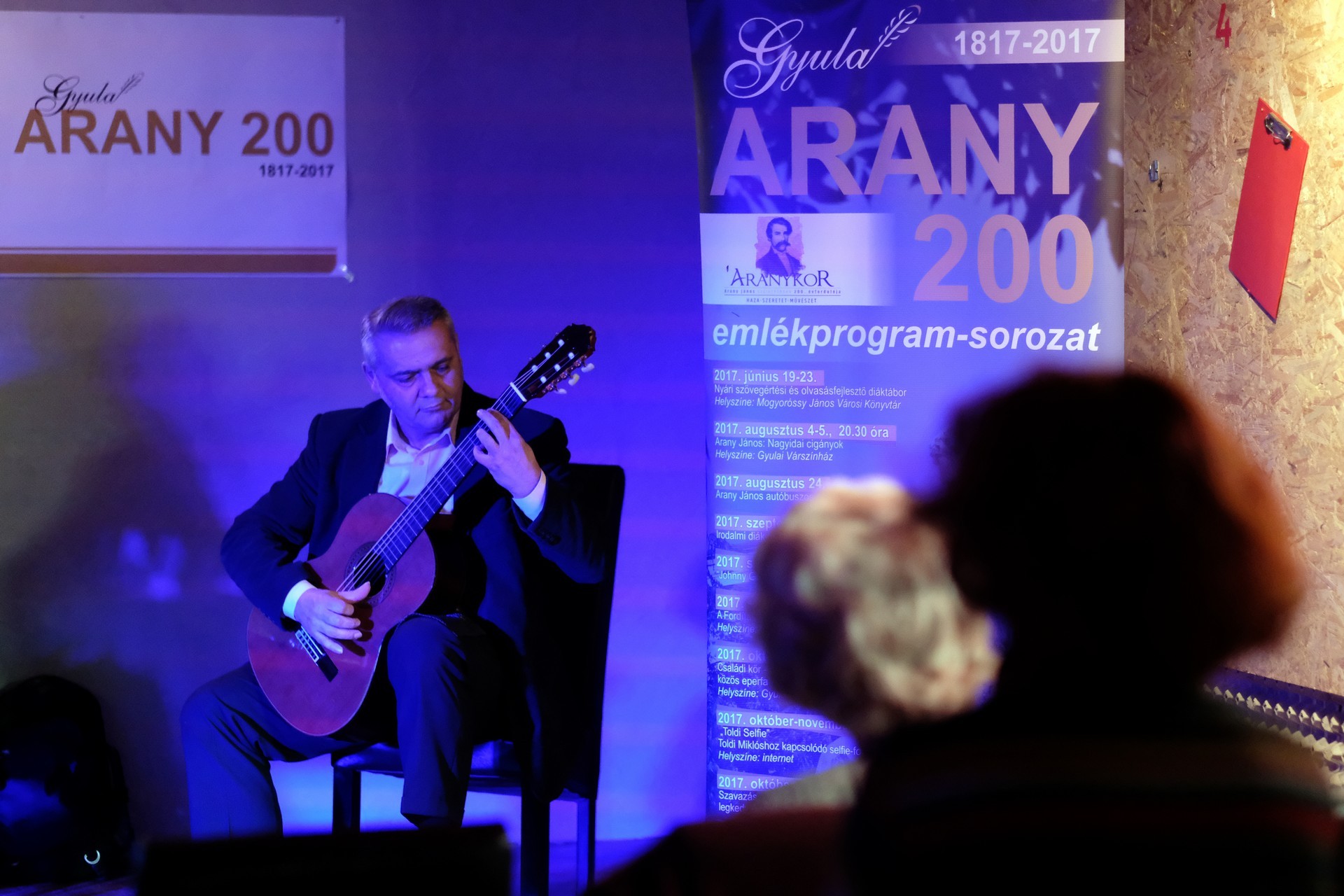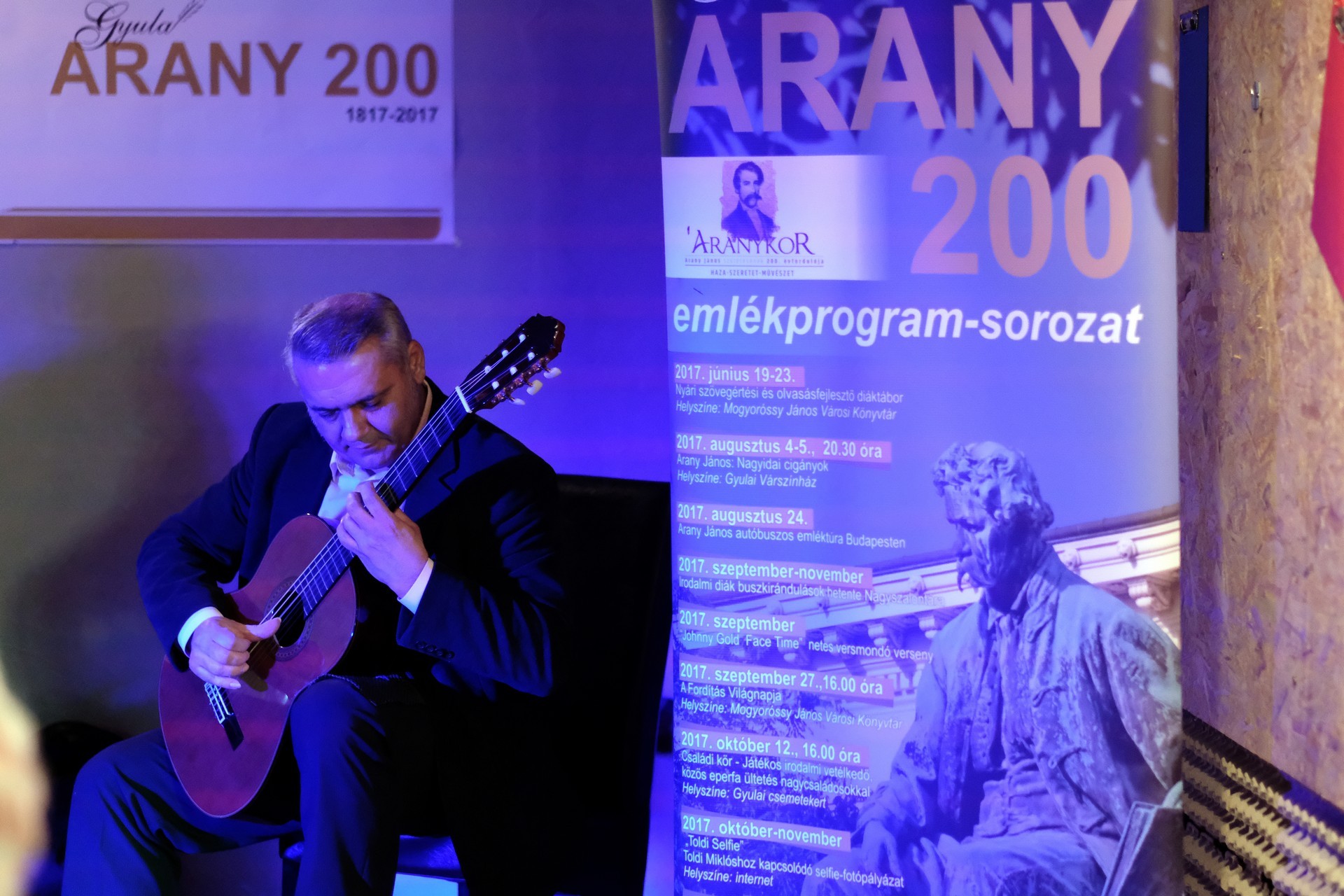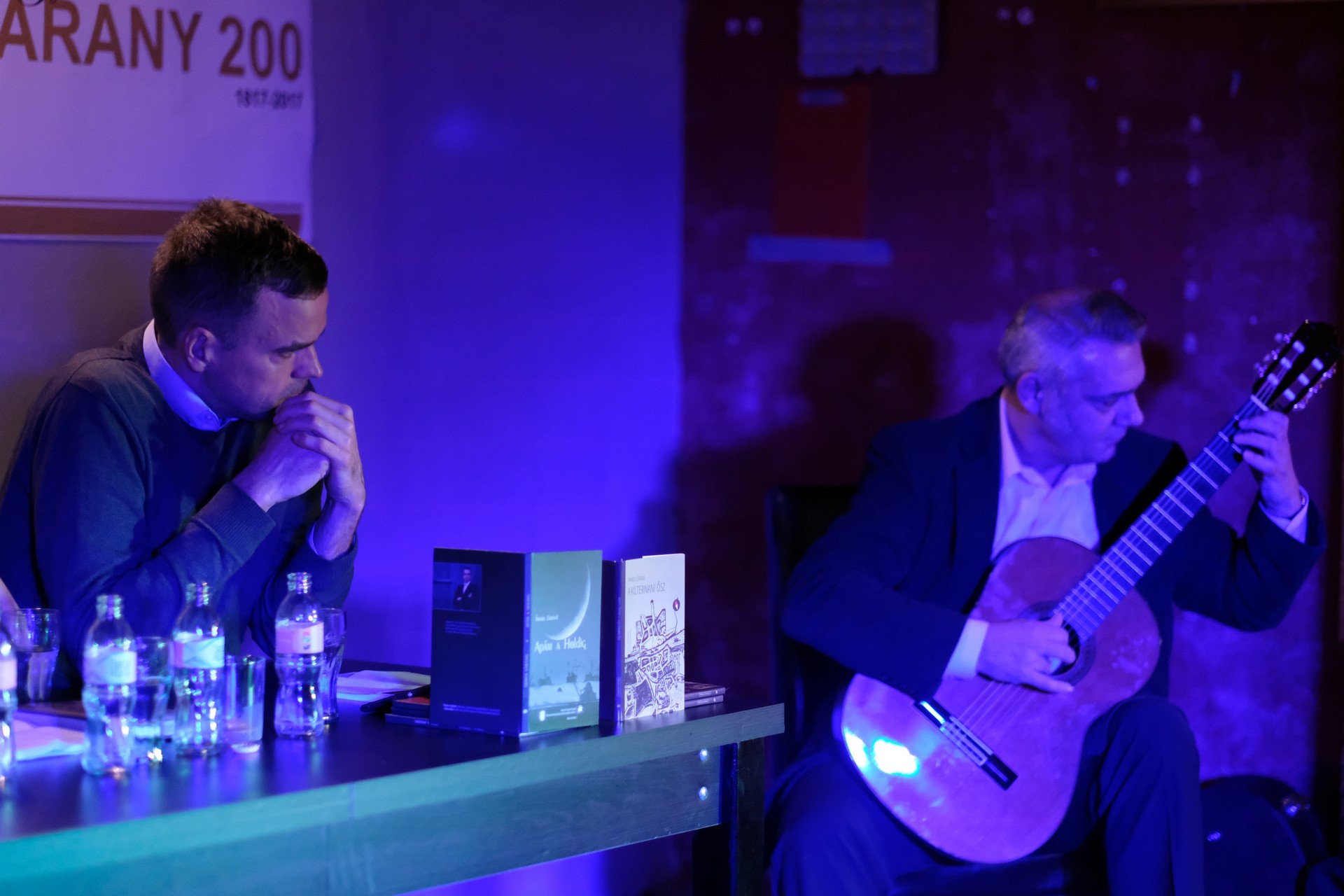 A poétika gyönyörét Varga Zsolt gitárművész stílusosan összeválogatott zenei bejátszásai fokozták.