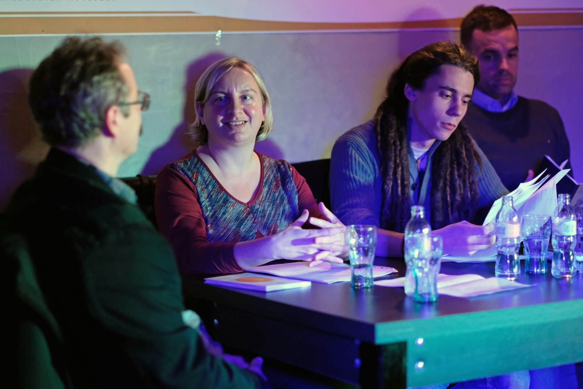 Az est költői arról is beszámoltak, mire készülnek, miféle szakmai bravúrra. Farkas Wellmann Éva például újabb sikerre, hisz nemsokára fog megjelenni a harmadik kötete, a Parancsolatok. Bék Timur főként az időről és a kozmikus fogalmakról ír, szonett-koszorúkon és versvégeken dolgozik, finalizál és készülődik a tavaszi bemutatóra. Ármos Lóránd pedig végre tudja, mi lesz az egyelőre még csak épülő kötete témaköre (meglehetősen sötét, ha azt nézzük, hogy ezek egyike ezzel indul: milyen kölyköket nevelsz magadban?, majd valaki felvágja az ereit), ehhez gyűjt anyagot. Mindezidáig fordítva csinálta: előbb megvoltak a versek, utána lett a kötet.