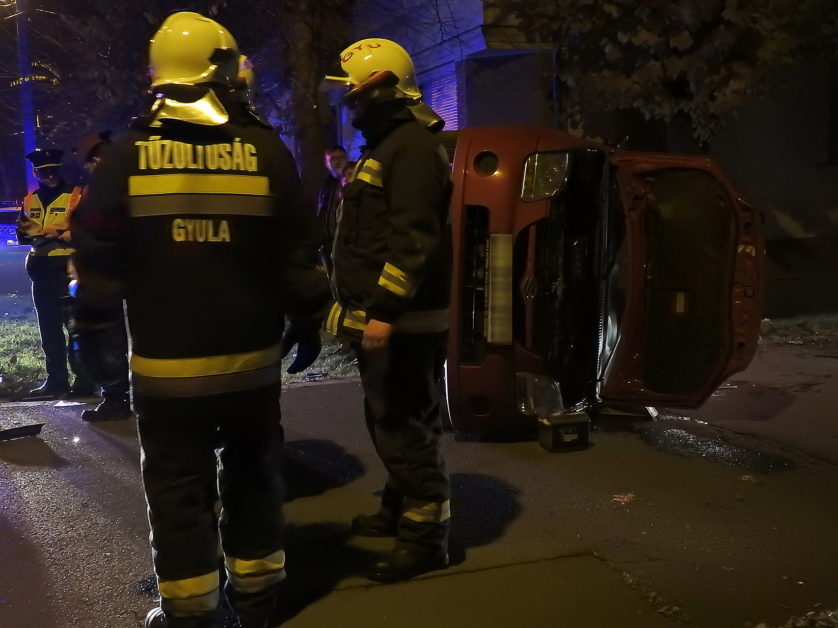 A Békés Megyei Rendőr-főkapitányság sajtóügyeletese lapunknak elmondta: a balesetben az egyik autó felborult. Az ütközésben két ember sérült meg könnyebben.