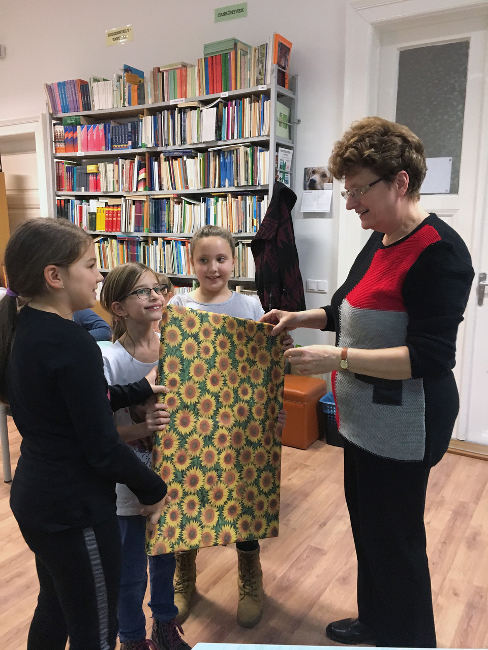 A feladatokat ismét Miklós Gáborné nyugdíjas kolléganőnk állította össze, a tőle megszokott nagy-nagy szeretettel és gondoskodással. Egy számára különösen kedves alkotással mondtak neki köszönetet a gyerekek a másfél éve tartó programsorozatért. Mártika volt kolléganőnk, Keresztesi Franciska festményét kapta meglepetésként. Köszönet érte az alkotónak!