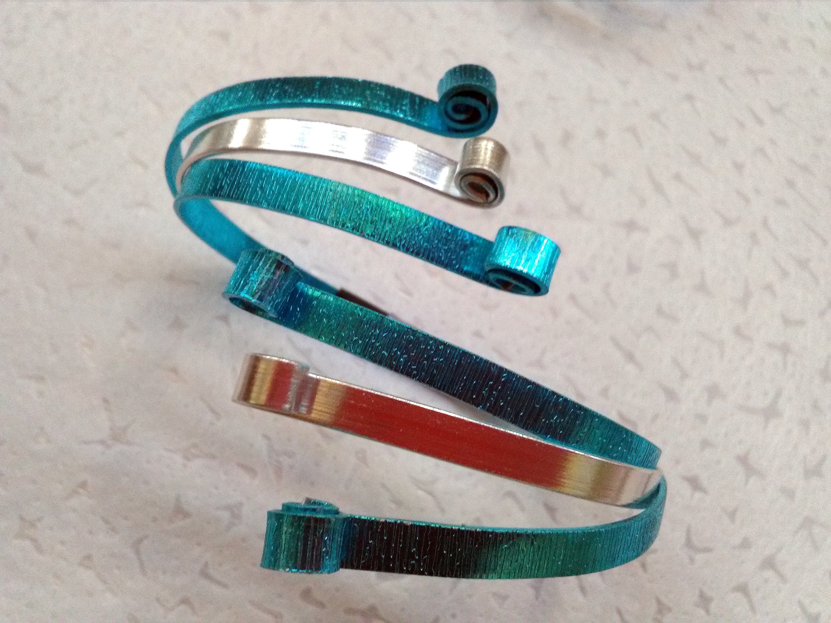 A kellemes pillanatokról ezúttal Szabó Emese gondoskodik, aki már évek óta csavarja, fonja, formálja, örvözi drótjait. Sokan ismerik Gyulán, és a Postagalériában is bemutatkozott már, ám ha tehetik, szánjanak rá egy kis időt, vessenek egy-két közeli pillantást válogatott munkáira. Az alkotás előzményeiről és a művészről a helyszínen kifüggesztett felvezető, bemutatkozó szövegből tudhatnak meg többet.