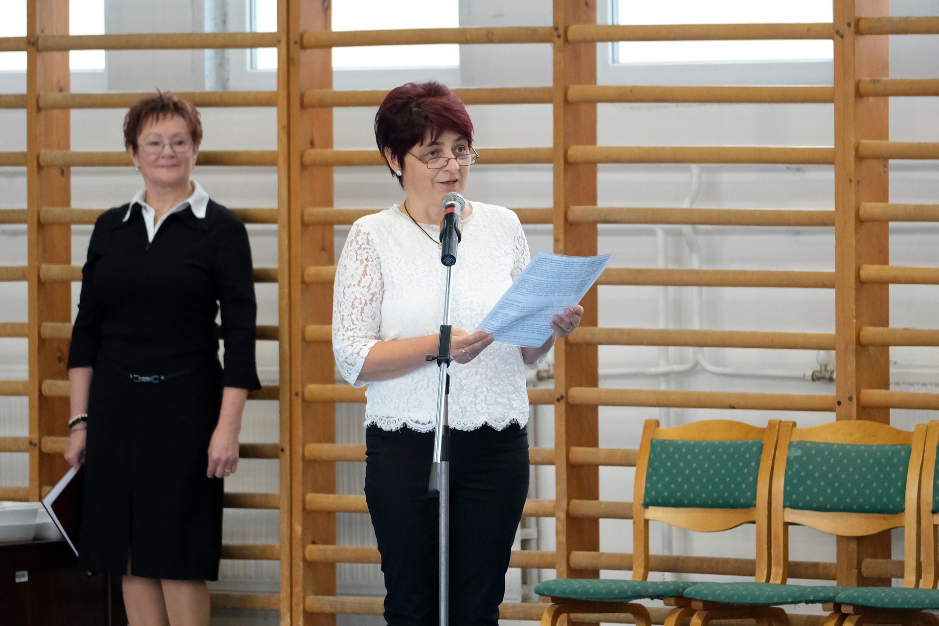 A közel negyven éves paneliskola összes porcikája felújításra szorult, a tantestület pedig köszöni, hogy erre vannak törekvések, jelezte Szabadosné Bécsi Katalin. Mint mondta, egy sportiskola számára külön öröm, hogy a felújítás a tornateremben kezdődött. Szentgyörgyi Albert ma is aktuális mondatait kölcsönvéve rávilágított, a sportcsapat a társadalom kicsinyített képe, a mérkőzés az életért folytatott küzdelem nemes szimbóluma. De nem csak ennyi, mert a sport a lélek legerőteljesebb nevelő eszköze is, amely a test útján nyitja meg a lelket.