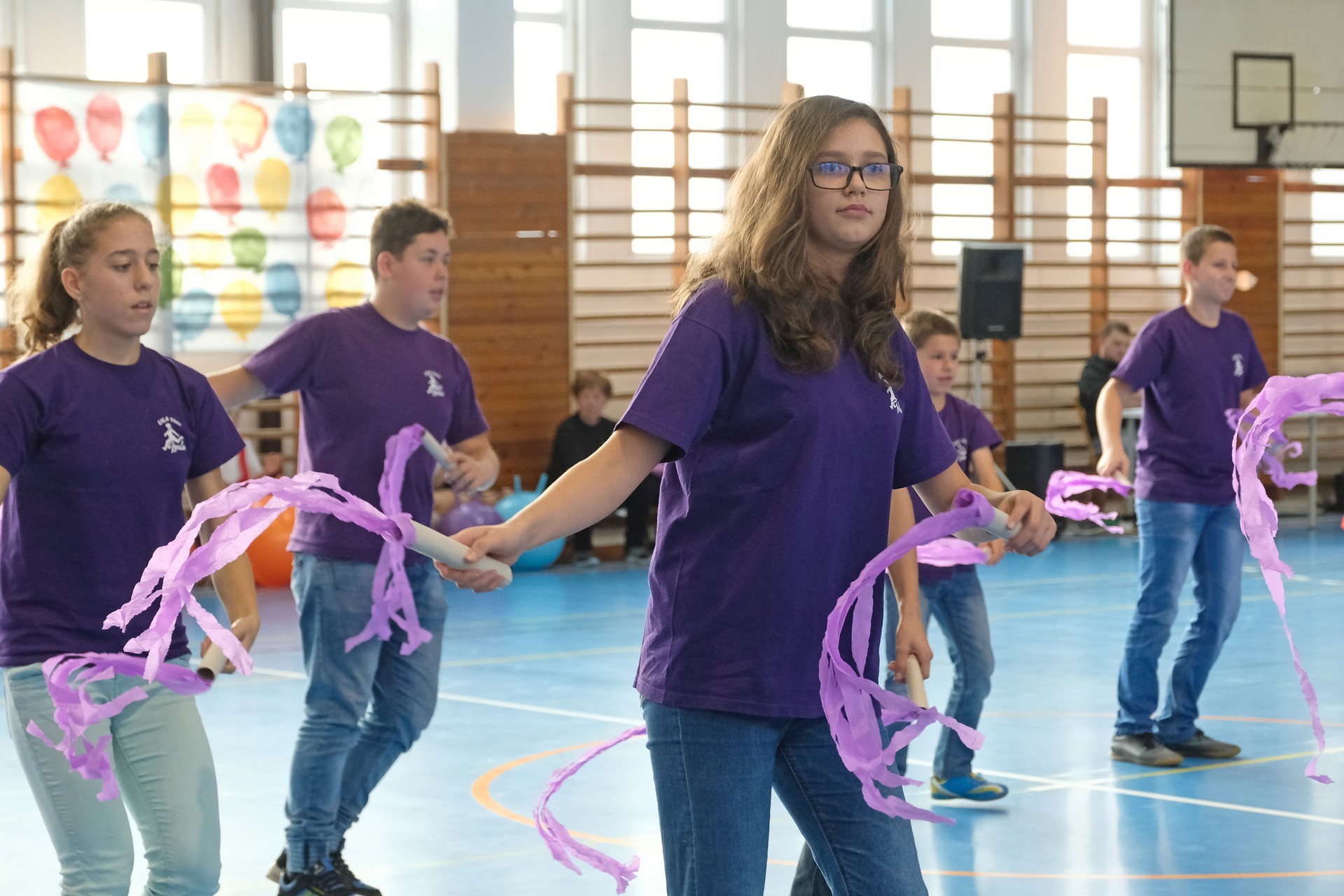 Az Implom József iskola 5. számú tagintézményének vezetője, Szabadosné Bécsi Katalin üdvözletét azzal indította, hogy az új nyílászárók, a homlokzati hőszigetelés, a kiszolgáló helységek burkolatának modernizálása, a radiátorok szelepcseréje, a fal- és pályafestés, valamint a névadó lila szín alkalmazása mindnyájunk öröme, de legfőképpen a tanulókat szolgálja.