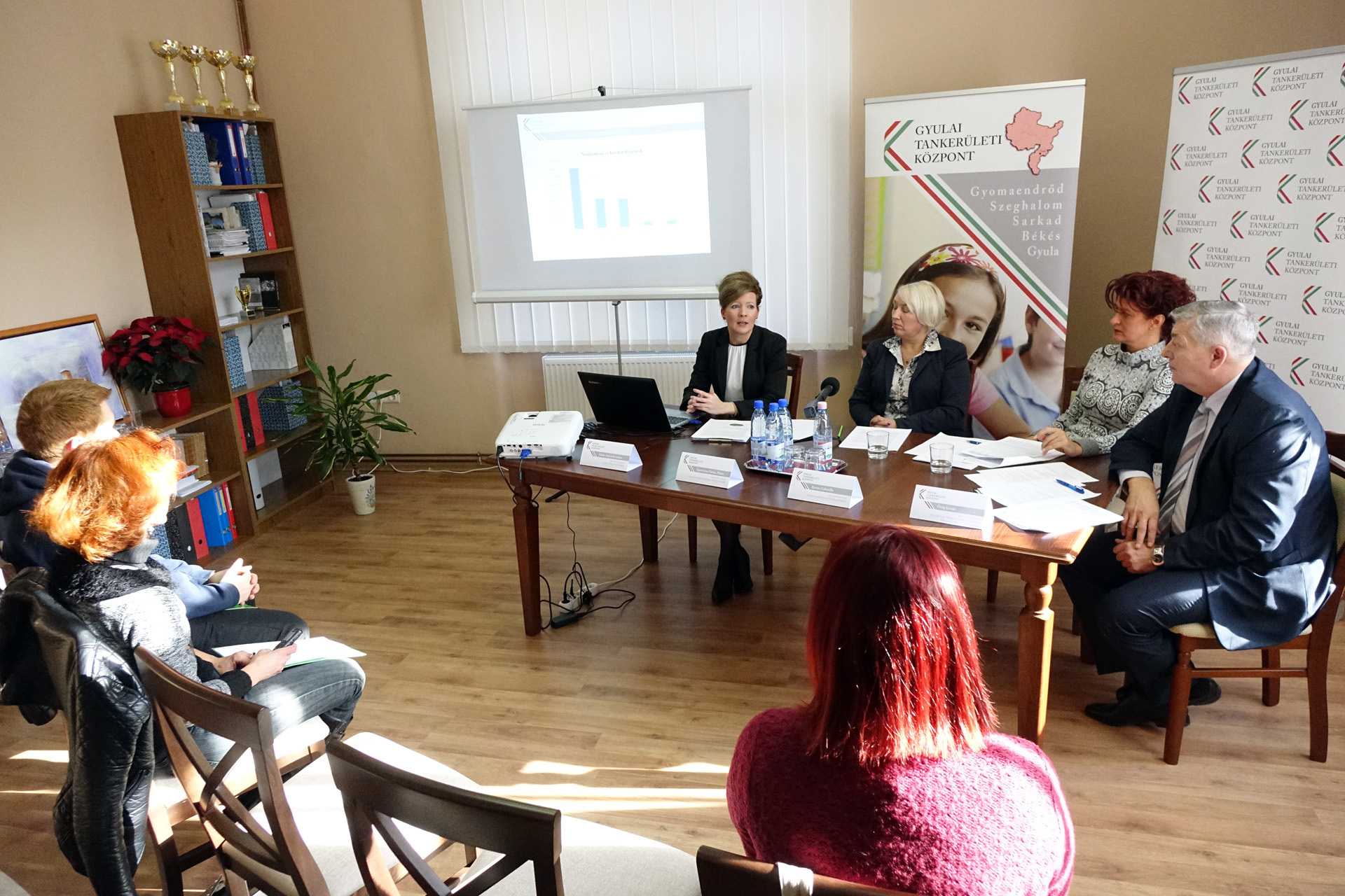 Elsőként Teleki-Szávai Krisztina igazgató mutatta be a Klebersberg Intézményfenntartó Központot 2017. január 1-től felváltó tankerületi központ elmúlt időszakban elért eredményeit. Elmondta, illetékességük Békés megye öt járására terjed ki, a békésire, a gyomaendrődire, a gyulaira, a sarkadira és a szeghalmira, ami 34 települést, 27 köznevelési intézményt és 86 feladat-ellátási helyet jelent. Ezeken fenntartói és működtetői feladatokat végeznek. Munkájukat lényegesen megkönnyíti, hogy Gyomaendrődön egy kihelyezett területi irodájuk is működik.