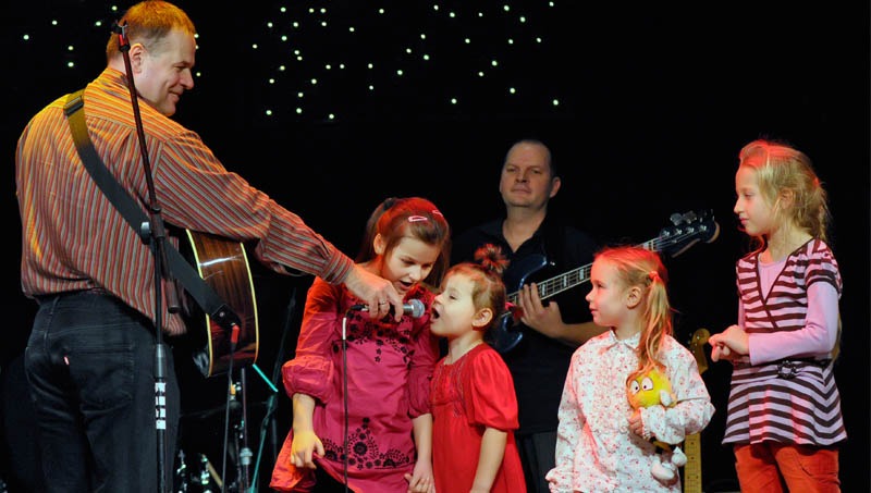 Gyermekbarát időpontban kezdte zenés műsorát Hevesi Imi bácsi, hogy néhány szellemes sztori kíséretében énekeljen, gitározzon, harmonikázzon a lelkes gyerekcsapatnak. Tímár Tomi bácsi (dob), Skorka Zoli bácsi (basszusgitár) és a csengőkön és más ritmushangszereken muzsikáló pöttöm „szárnysegédek” segítségével elhangzottak az „ősrégi” ismert gyermekdalokon kívül csemegék is, mint például a blues-Micimackó, vagy a „rokis” Vegyetek nekem egy korcsolyát. Hevesi Imre, a pedagógusból avanzsált zenész-előadó továbbra is szem előtt tartja a gyerkőcök szórakozásán kívül zenei és irodalmi nevelésüket, amit többek között egy megható Babits-refrénű, bájos Micimackó-sztorira épülő reggae-vel be is bizonyított.