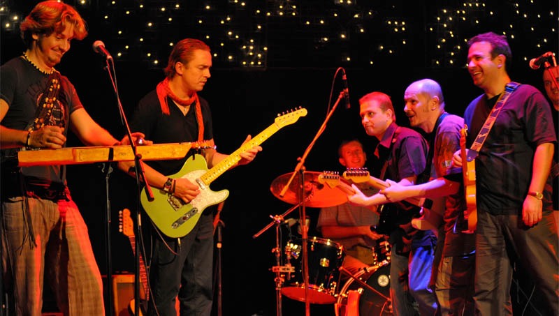 A jótékonysági célú est kezdeményezői, a Route 44 következett, akik azonnal rádörrentettek a Tornado boogie-ra. Saját szerzeményeik között még több örökérvényű blues nótát is felismerhettünk, például a néhai ugyancsak békéscsabai Blues Fools számait és a tavaly fiatalon elhunyt rendkívüli gitáros, Jeff Healey-nek is emléket állítottak. A zenekar tagjai (Kovács Tamás – gitár/ének, Dubravcsik Balázs – gitár, Gyebrovszki András – basszusgitár és Köles Márk – dobok) ugyan még csak két éve játszanak együtt, de színpadi tapasztaltságuk és zenei műveltségük régi szakmai utat sejtet. A Route 44 első vendége, a színpadra visszatérő Kontor Tamás volt, aki egyik új dala után az igen nehéz slidegitár technikát mutatta be mesterien. Utána hazánk egyik legtehetségesebb gitárosa, Borsodi László, illetve Horváth „Jack” László, a hazai blues élet egyik legendája lépett a közönség elé. A vendégszereplők szép fokozatosan érkeztek a deszkákra, hangszereikkel egyre csak telítve a hangzatokat. A sok gitáros saját stílusát előadva, hol mint sereg rakoncátlan gyerek vitatkozott egymással, máskor kifinomult gitárpárbaj alakult ki közöttük. Az est végére a dobok és a hat Fender gitár hangjai egyetlen tömör és átütő tömbbé formálódott, amelyet a közönség nem illendőségből kívánt viszonthallani.