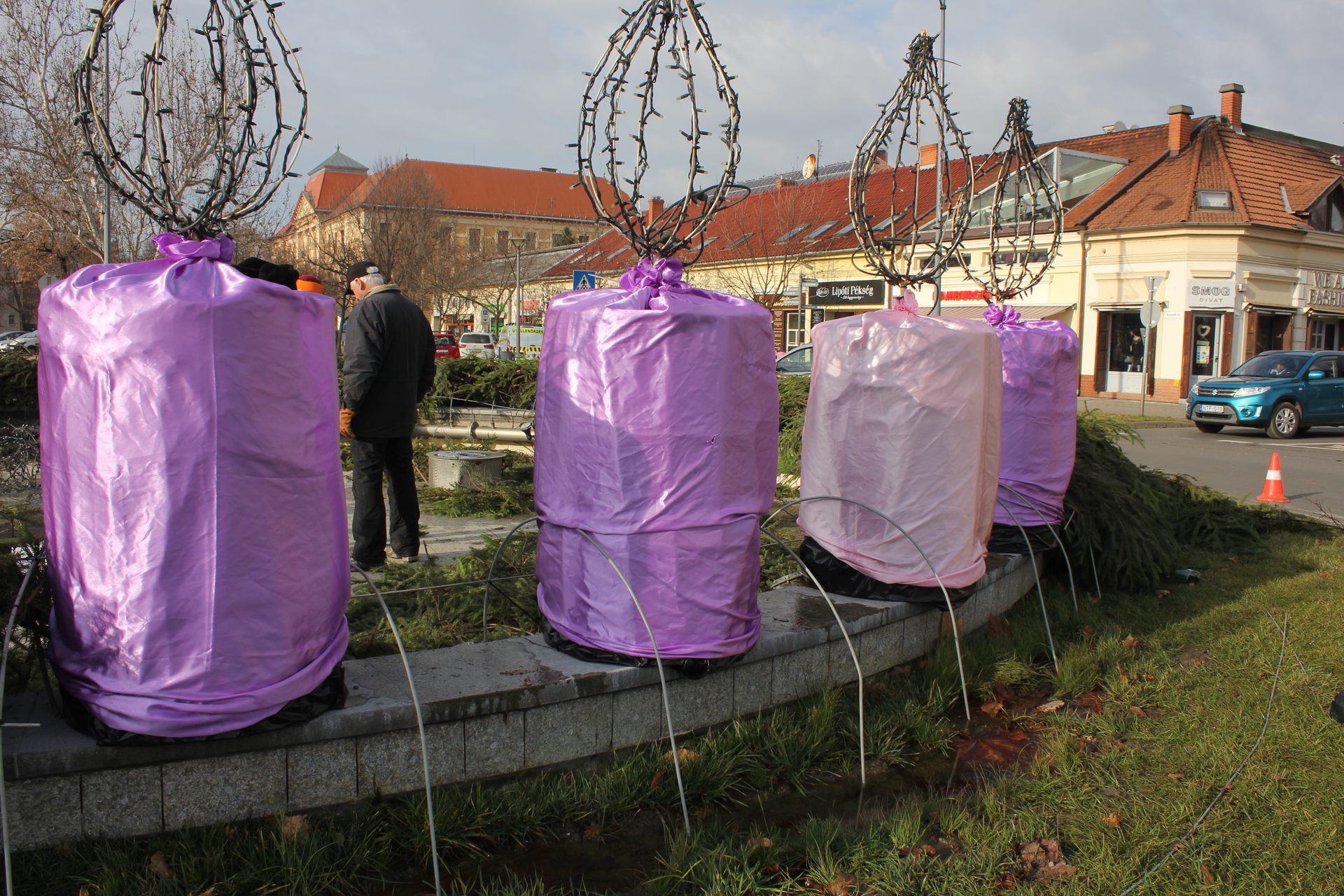 – A szökőkút télen kihasználatlan, így adja magát, hogy feldíszítsük az ünnepekre. Megcsináltuk a vasszerkezetet hozzá, amit minden évben felhasználunk. Az egyik tagunknak, Varga Ferencnek van egy fenyőerdője, ahonnan minden évben gyönyörű ágakat tudunk hozni – emelte ki.