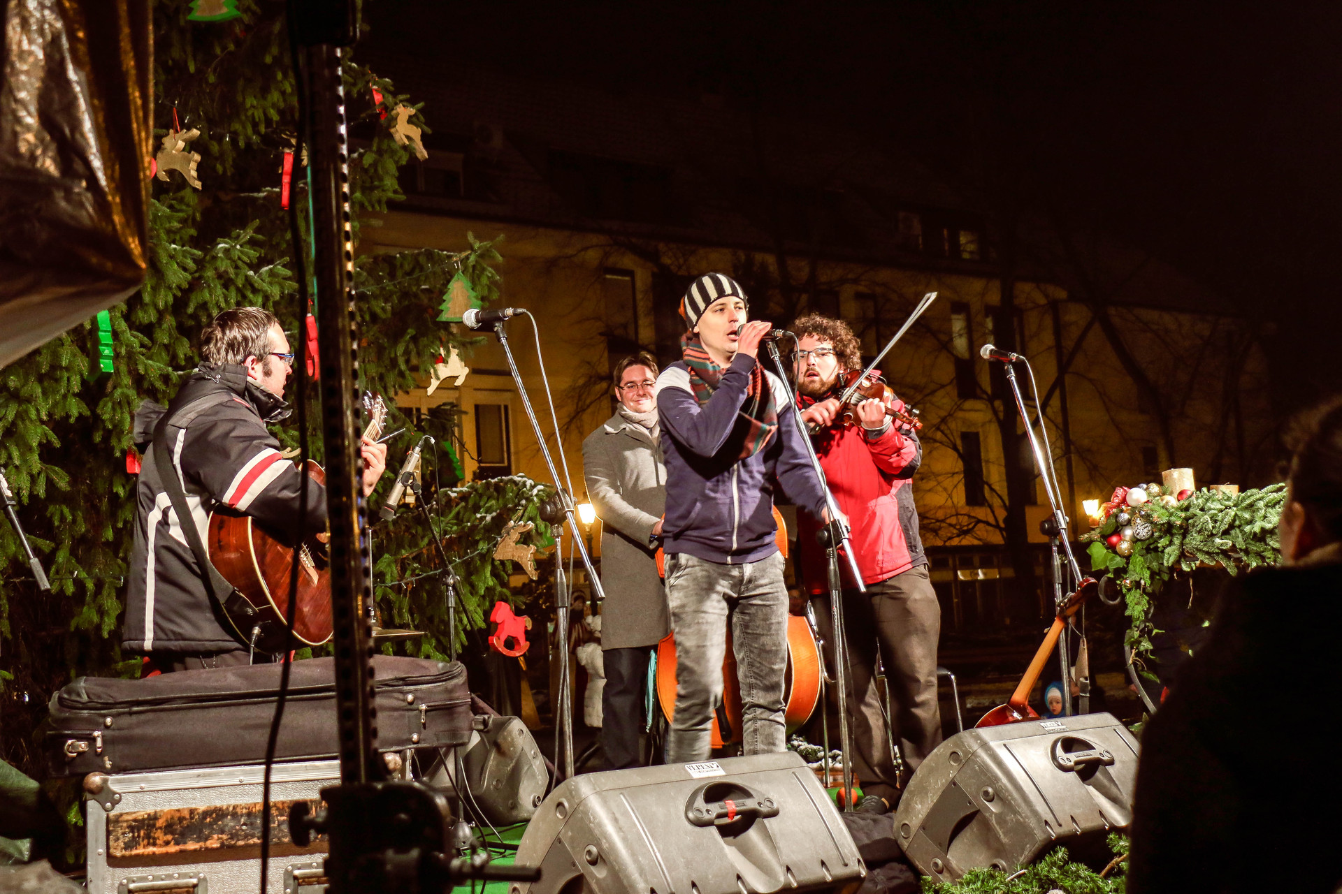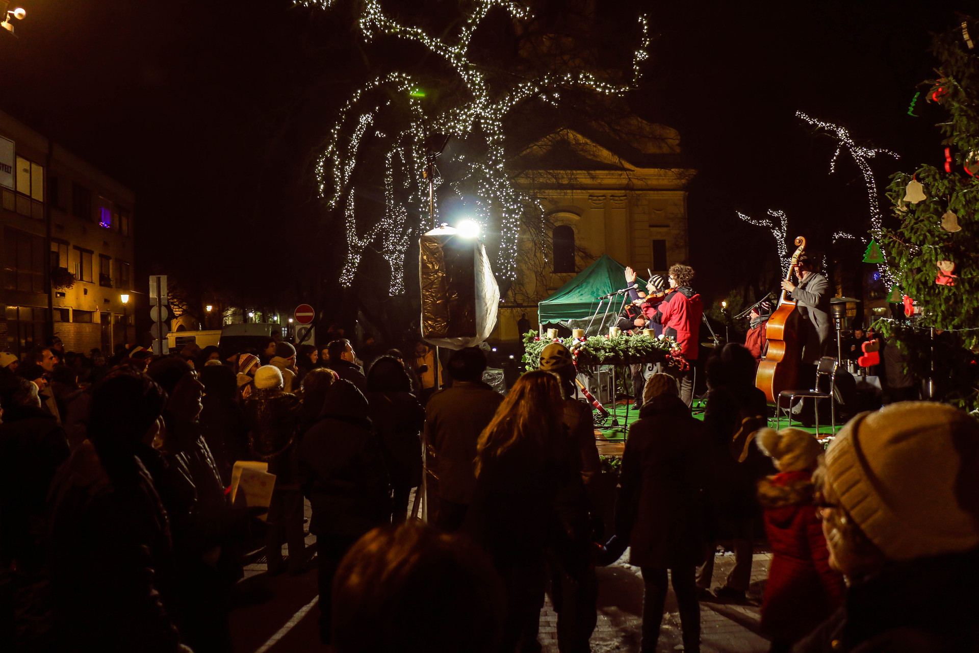 A Kossuth téri körforgalomnál a Karácsonyi János katolikus iskola gyermekkórusa örvendeztette meg a hallgatóságot ünnepi műsorral. Ezt követően itt is kivilágították a Japánkert Barátok Köre Egyesület által elhelyezett adventi koszorút.