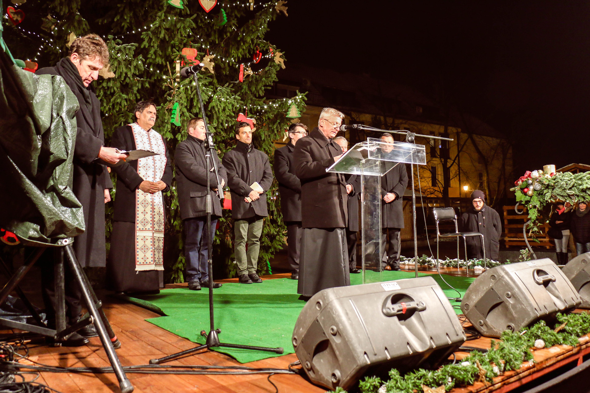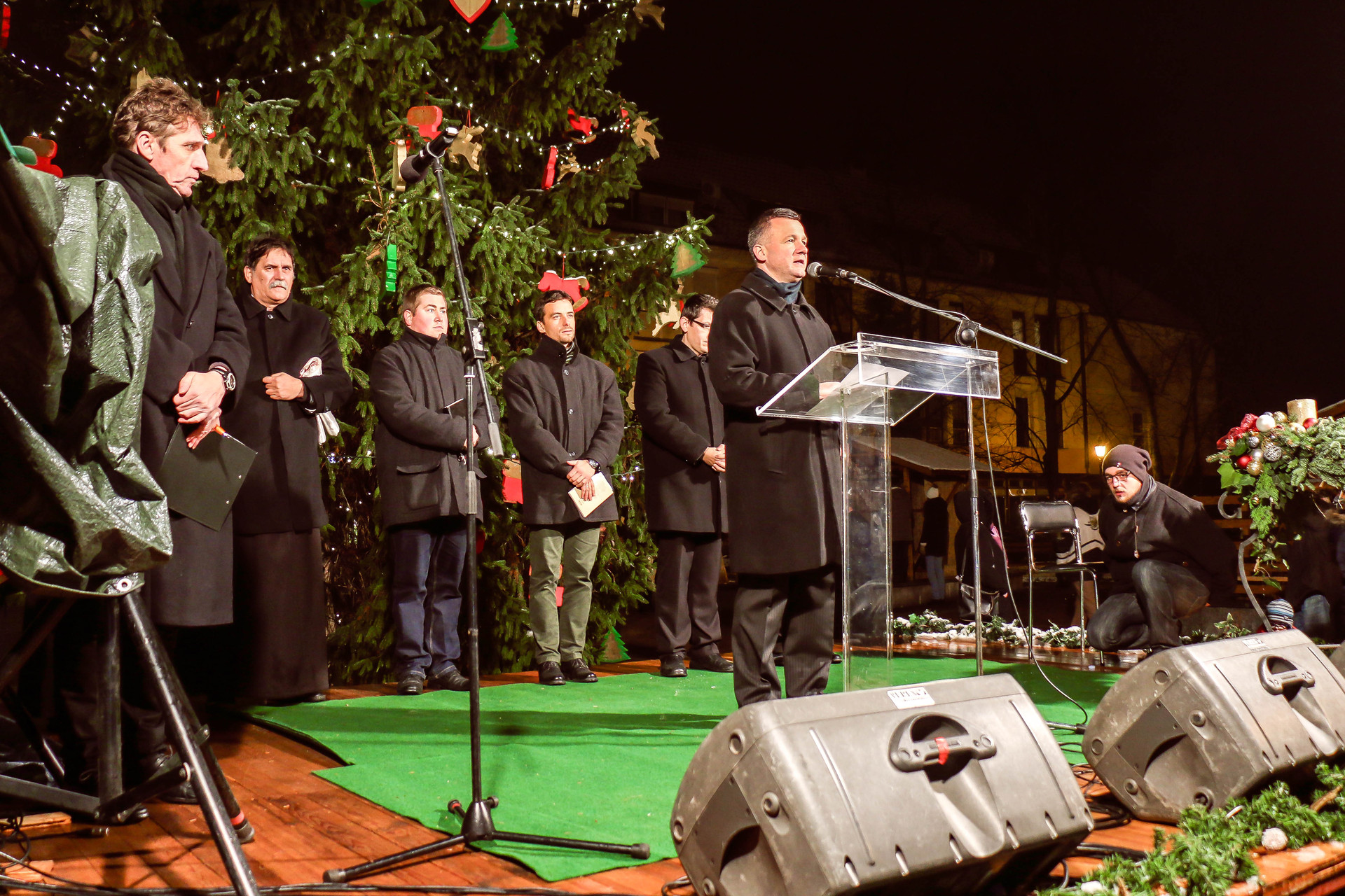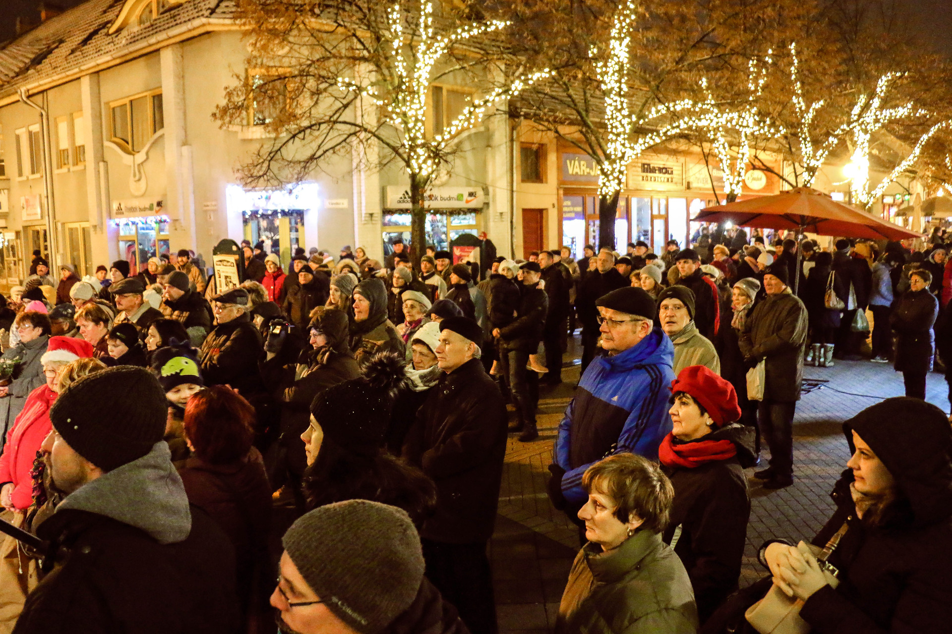 A Harruckern téren Görgényi Ernő polgármester Gyula város önkormányzatának nevében Pilinszky János, a lélek egyik legnagyobb lírikusának gondolataival köszöntötte az egybegyűlteket advent első vasárnapján. Így fogalmazott: életünk nem csak cselekedetek, de talán még inkább a várakozás iskolája.