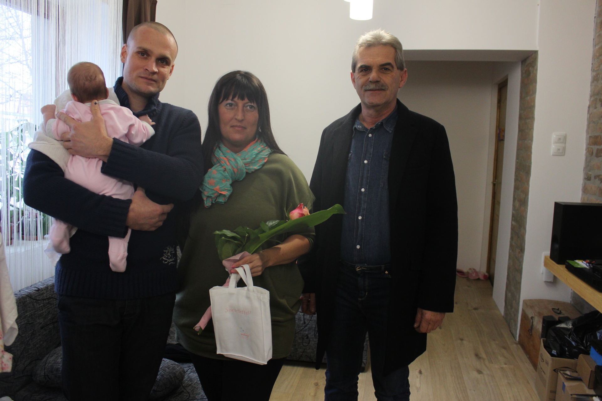 Baji Biankát és családját köszöntötte Gyula Város Önkormányzata nevében Szabó Károly december 4-én a városi Babaruha program keretében.