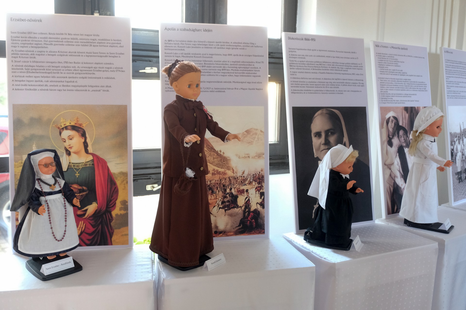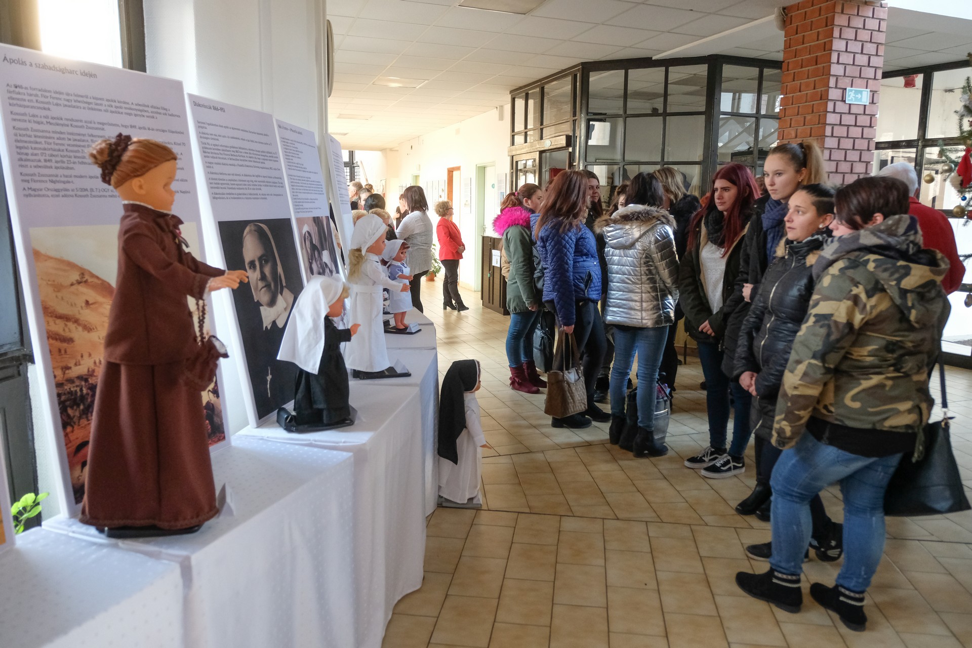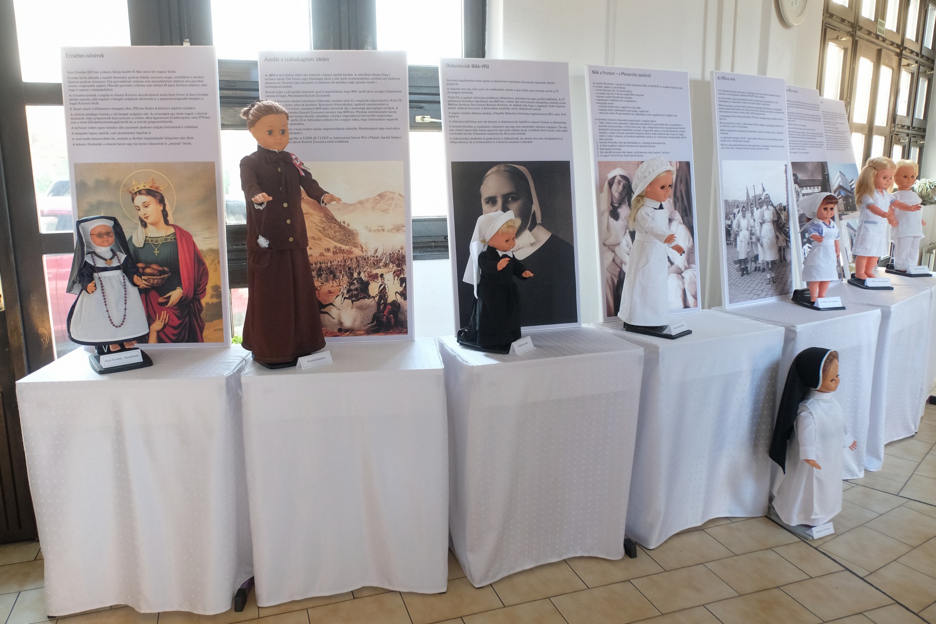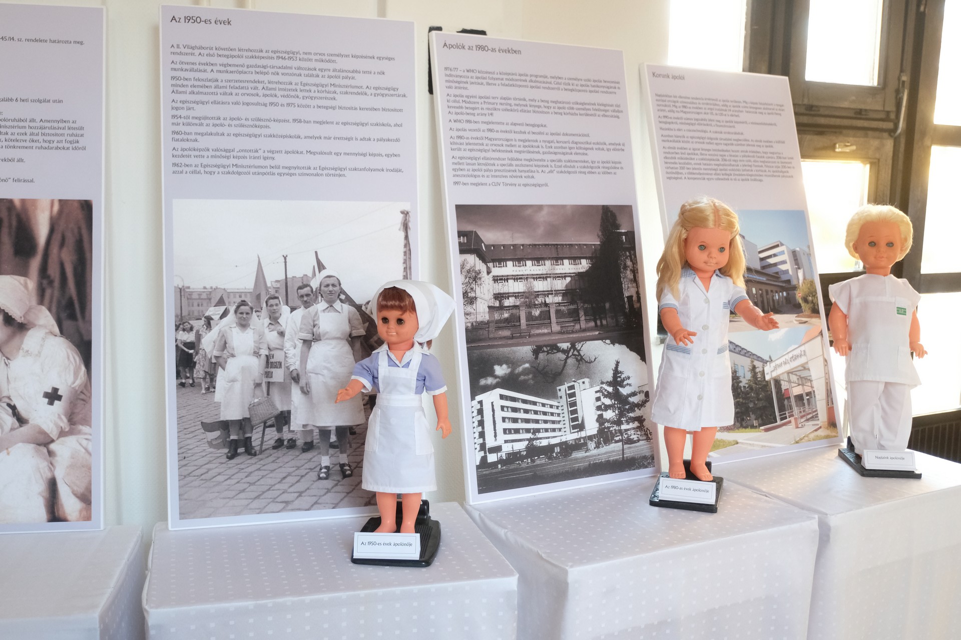 A márciusban nyílt kiállítás a Békés Megyei Központi Kórház valamennyi dolgozóját megmozgatta, hisz mindenki igyekezett valamit hozzáadni, valamivel kiegészíteni. Az egyes korszakok ápolónőit megformáló babákat például az alkalmazottaktól kapták, ruháikat a kórház varrónői kivitelezték. Elhangzott, a Békéscsabán kiállított anyagnak technikai okok miatt csak az egyik része került Gyulára, az ide el nem hozott könyveket, ápolási eszközöket a főiskola saját anyagával pótolta, gazdagította.