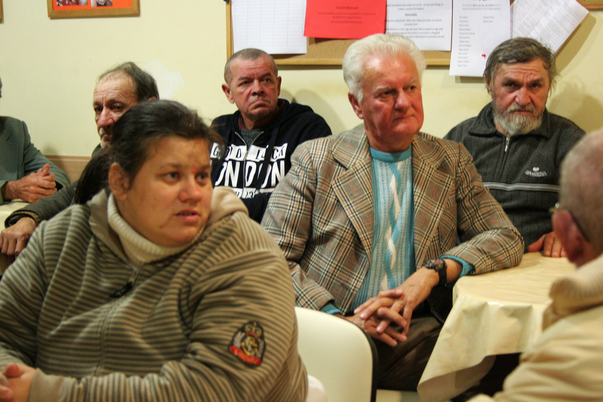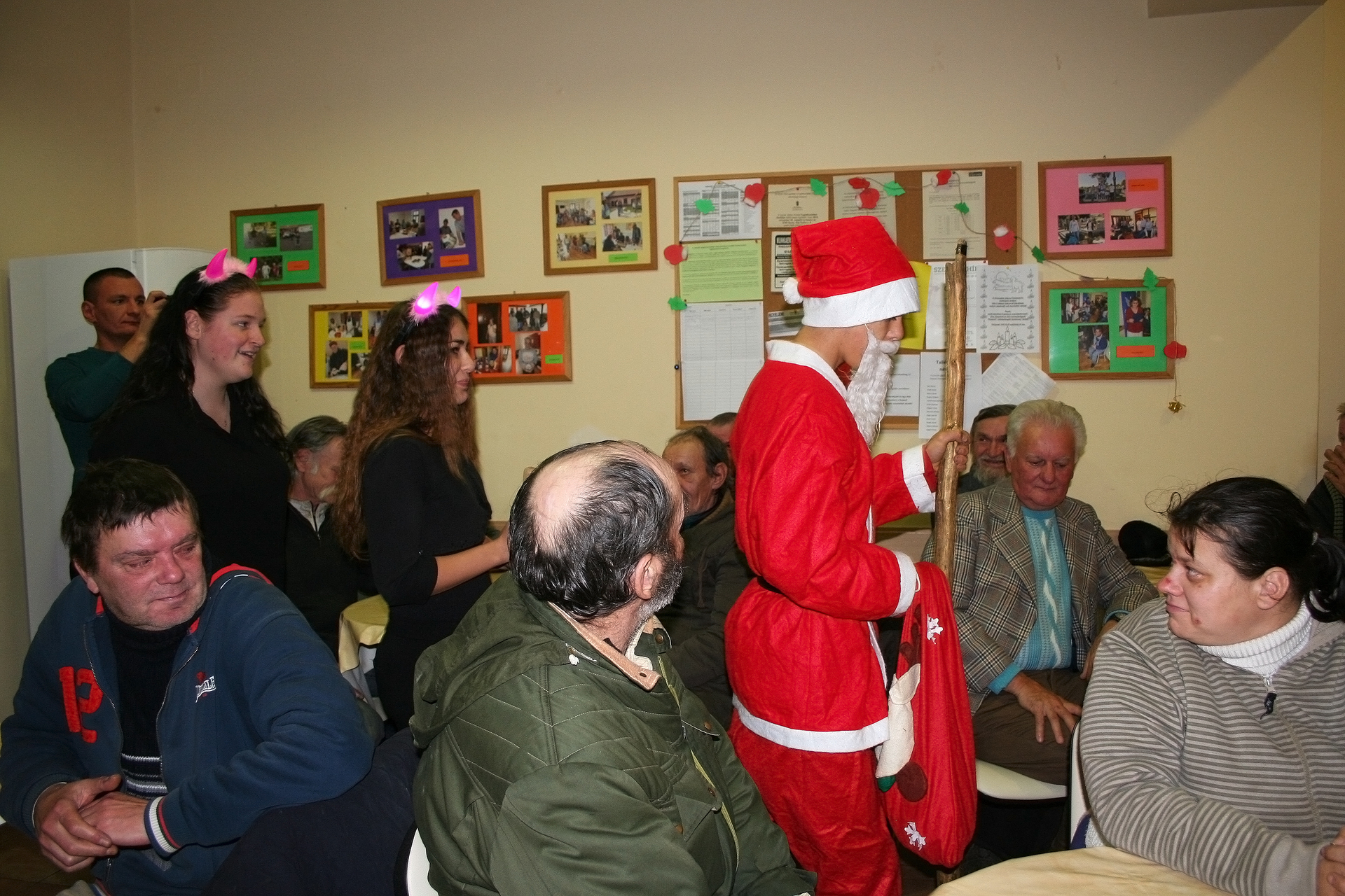 Két krampuszlány is segítette idén a hajléktalanszállót felkereső Mikulást, aki szaloncukor-osztással finomította a kollégisták ünnepi összeállítását a Magyar Ökumenikus Segélyszervezet által működtetett nappali melegedőben. Érkezésüket nagyon sokat és nagyon nagy szeretettel várták.
