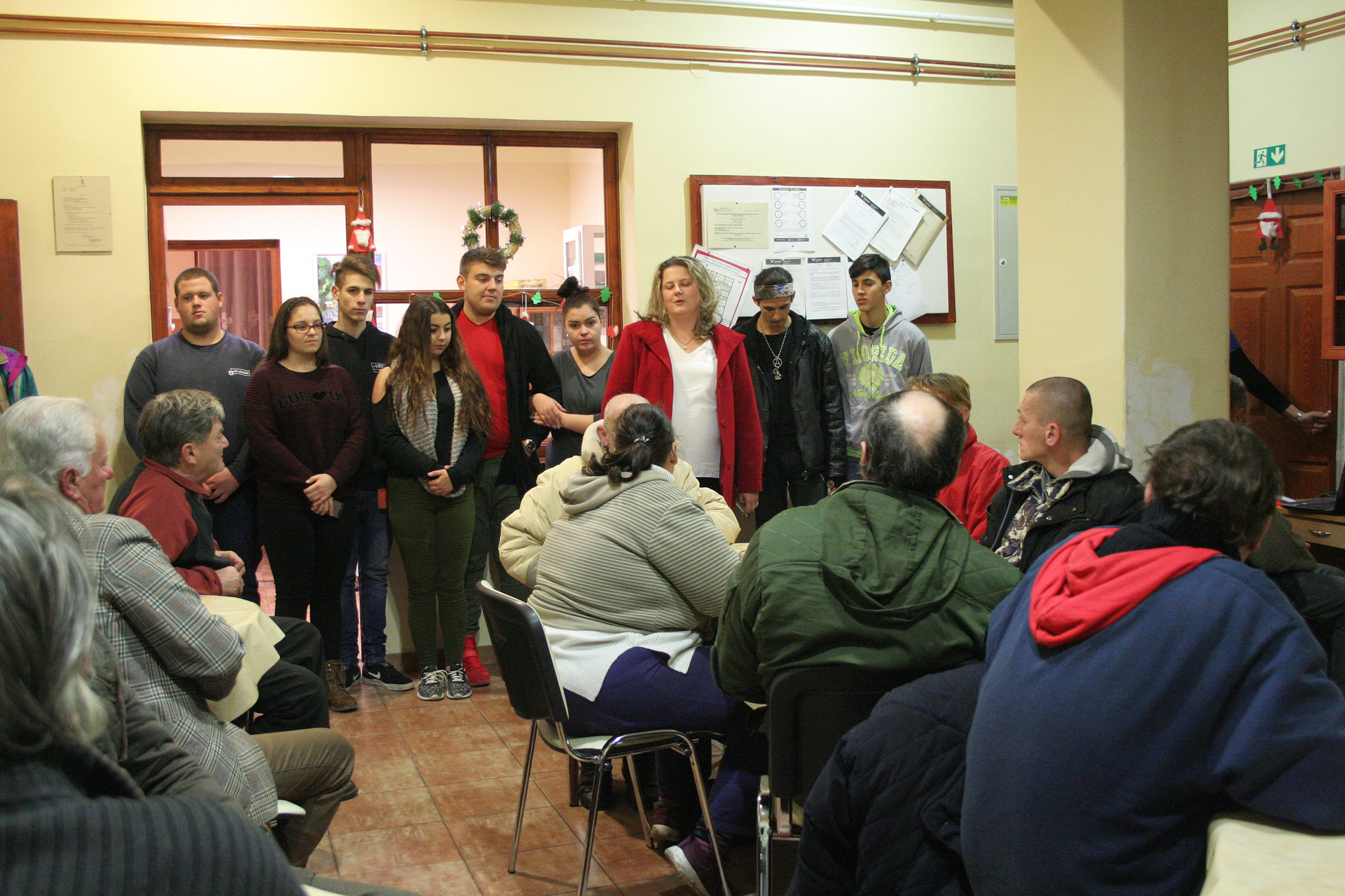 A tizedikes Haraszti Noémi és kolléganője, Jambricska Szilvia karácsonyi dalokkal, Sproch Richárd pedig saját versével kívánt boldog ünnepeket az egybegyűlteknek, akiket a velük érkező Schupkégel Edit üdvözölt. A pedagógus azt mondta, mindnyájan ugyanannak a Napnak a sugarai vagyunk, nincsenek köztünk különbségek. A diákok azért látogattak el a befogadó helyre, hogy szeretetet közvetítsenek azok felé is, akiket nem vesz körül gondoskodó család.