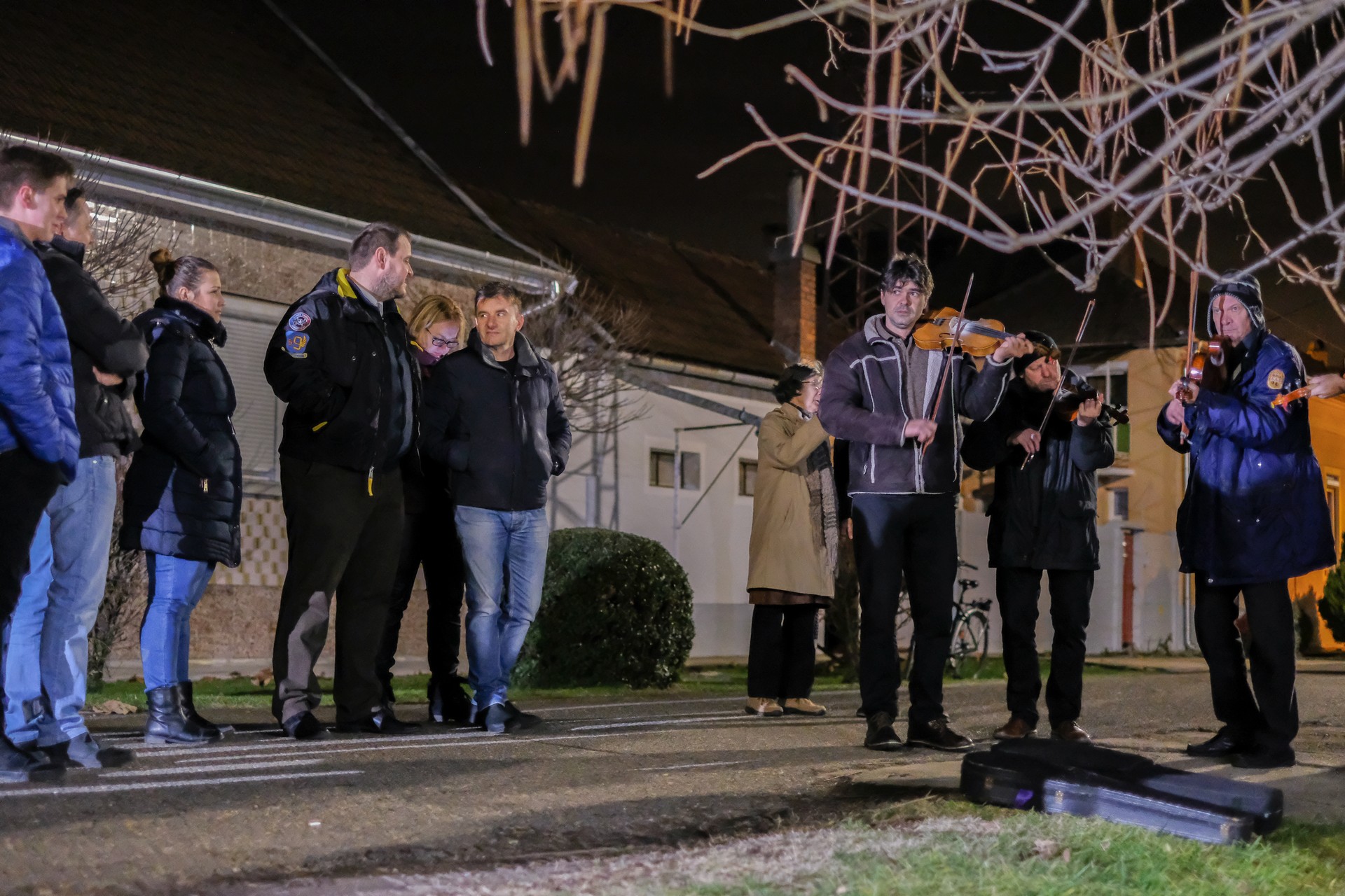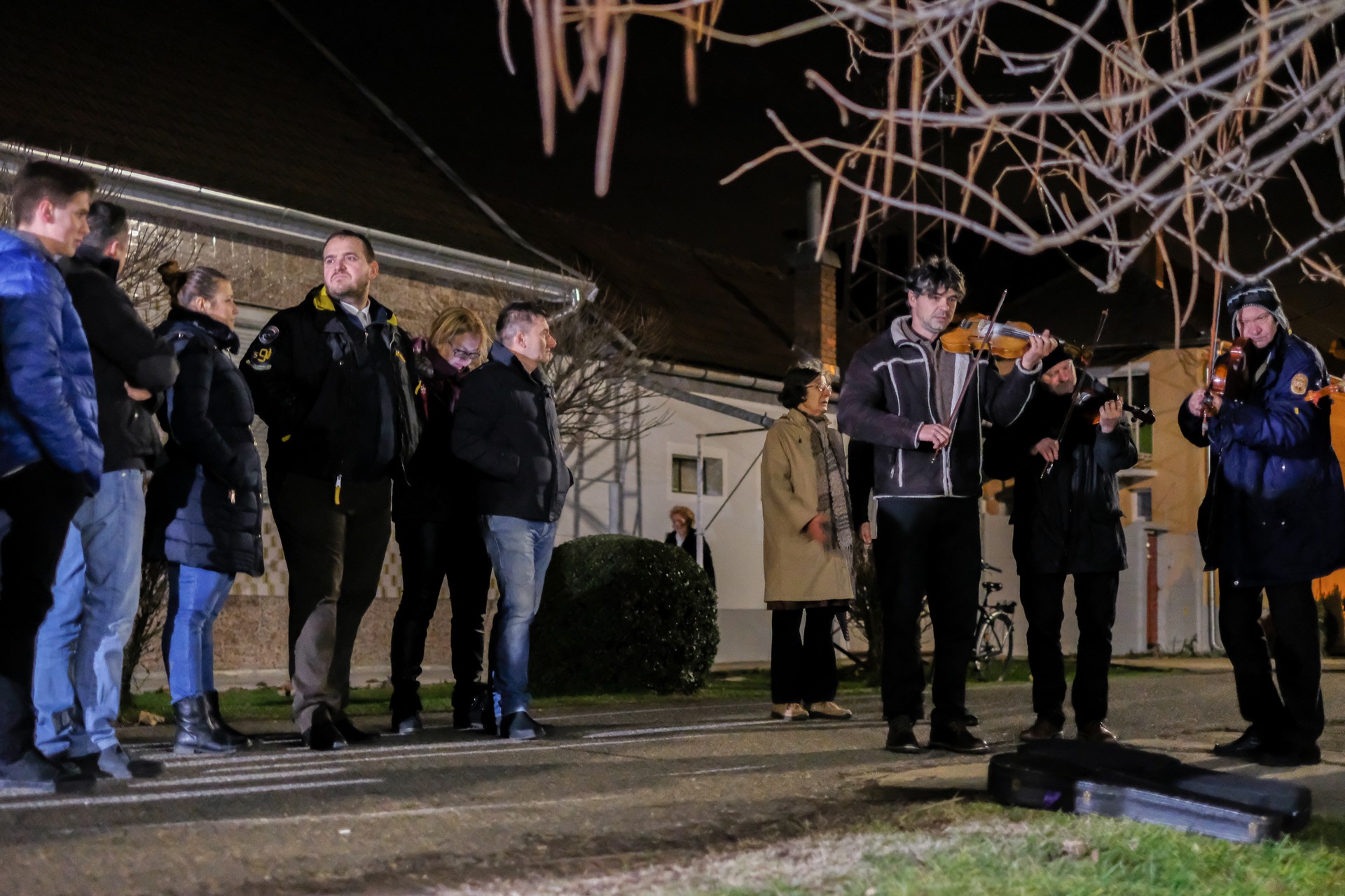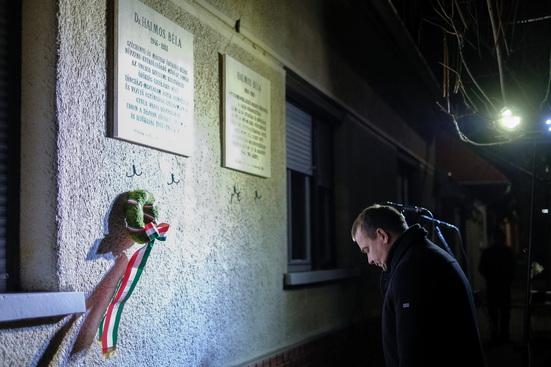 Koszorúzással kezdődött a kétnapos Halmos Béla Fesztivál december 8-án Gyulán, a Széchenyi-díjas népzenész, népzenekutató Ecsedi utcai szülőházánál.